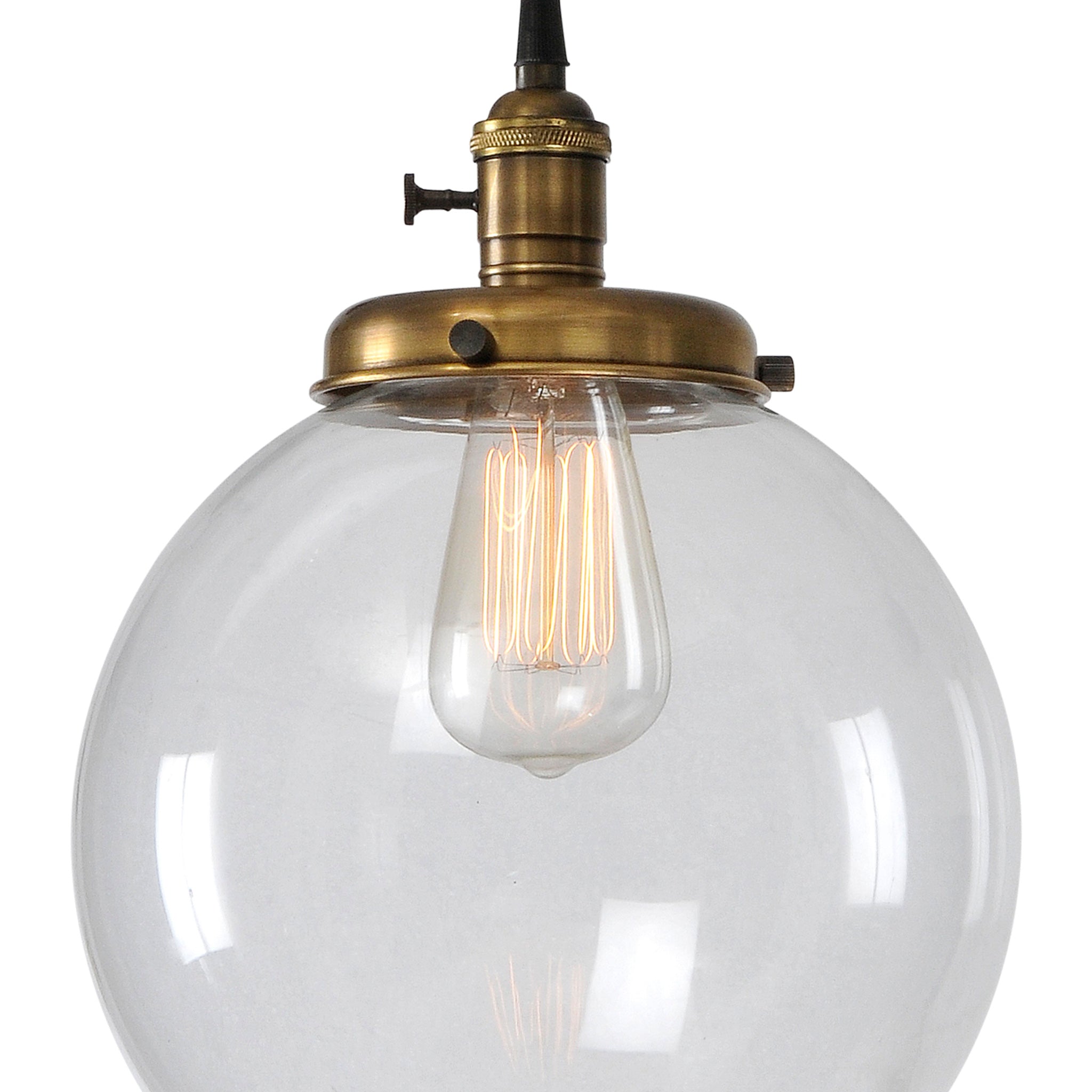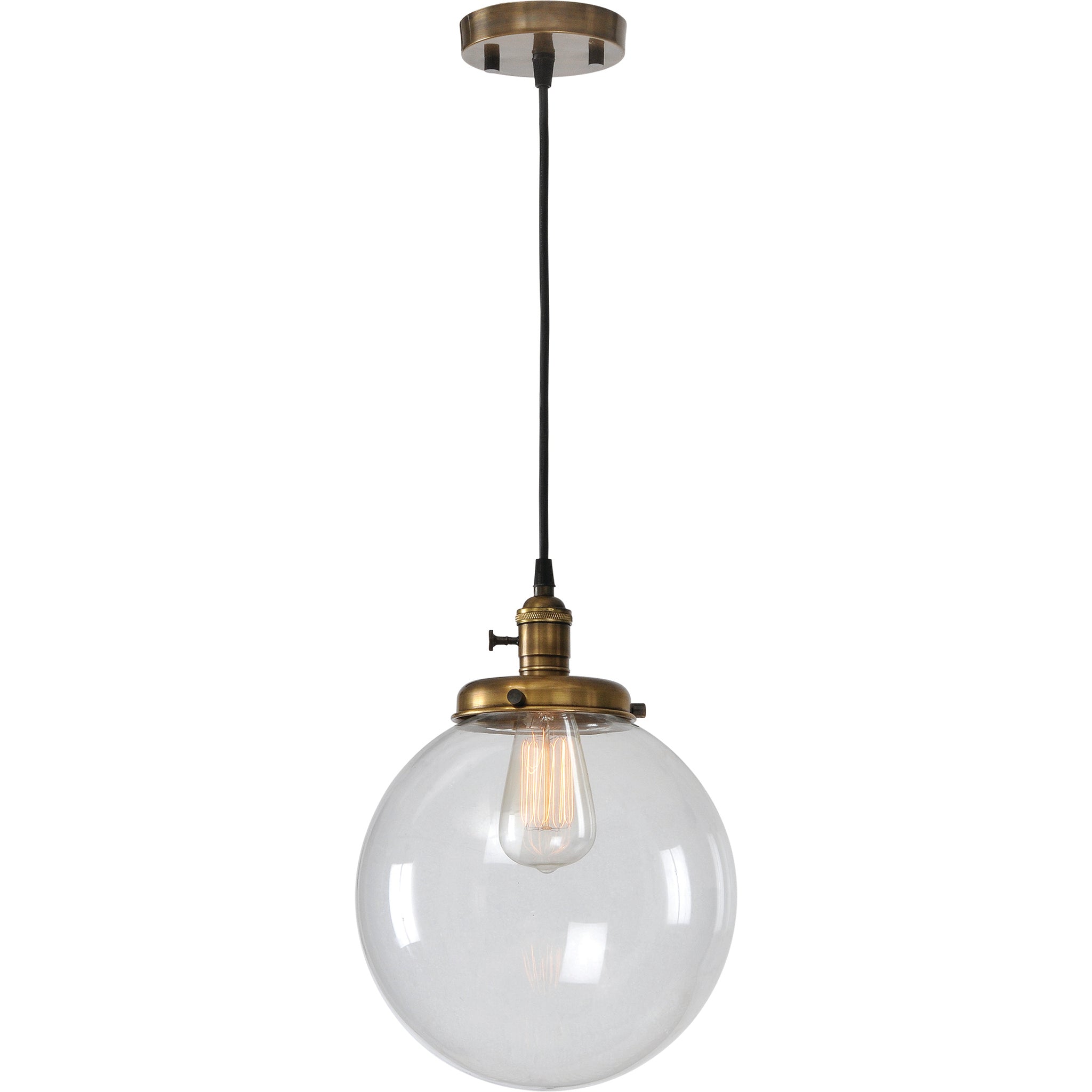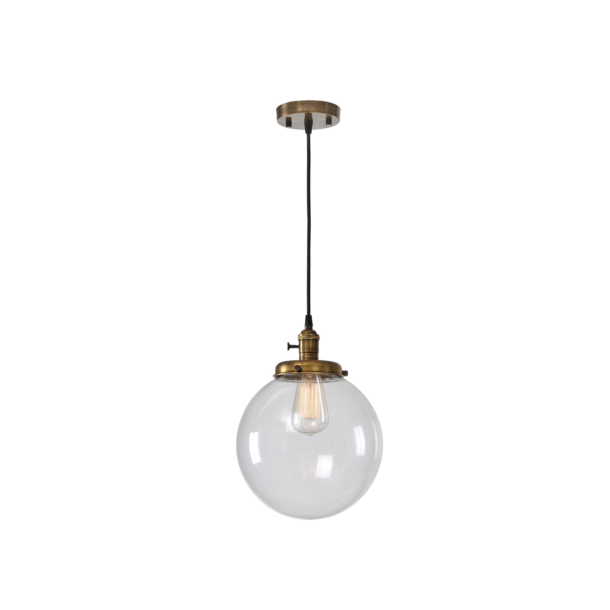 L'allure classique et contemporaine de cette suspension est indémodable. Sa quincaillerie métallique d'inspiration vintage et sa finition laiton antique évoquent un luminaire récupéré. L'abat-jour en verre transparent et l'ampoule intégrée créent un globe lumineux suspendu au plafond. Ampoule incluse.