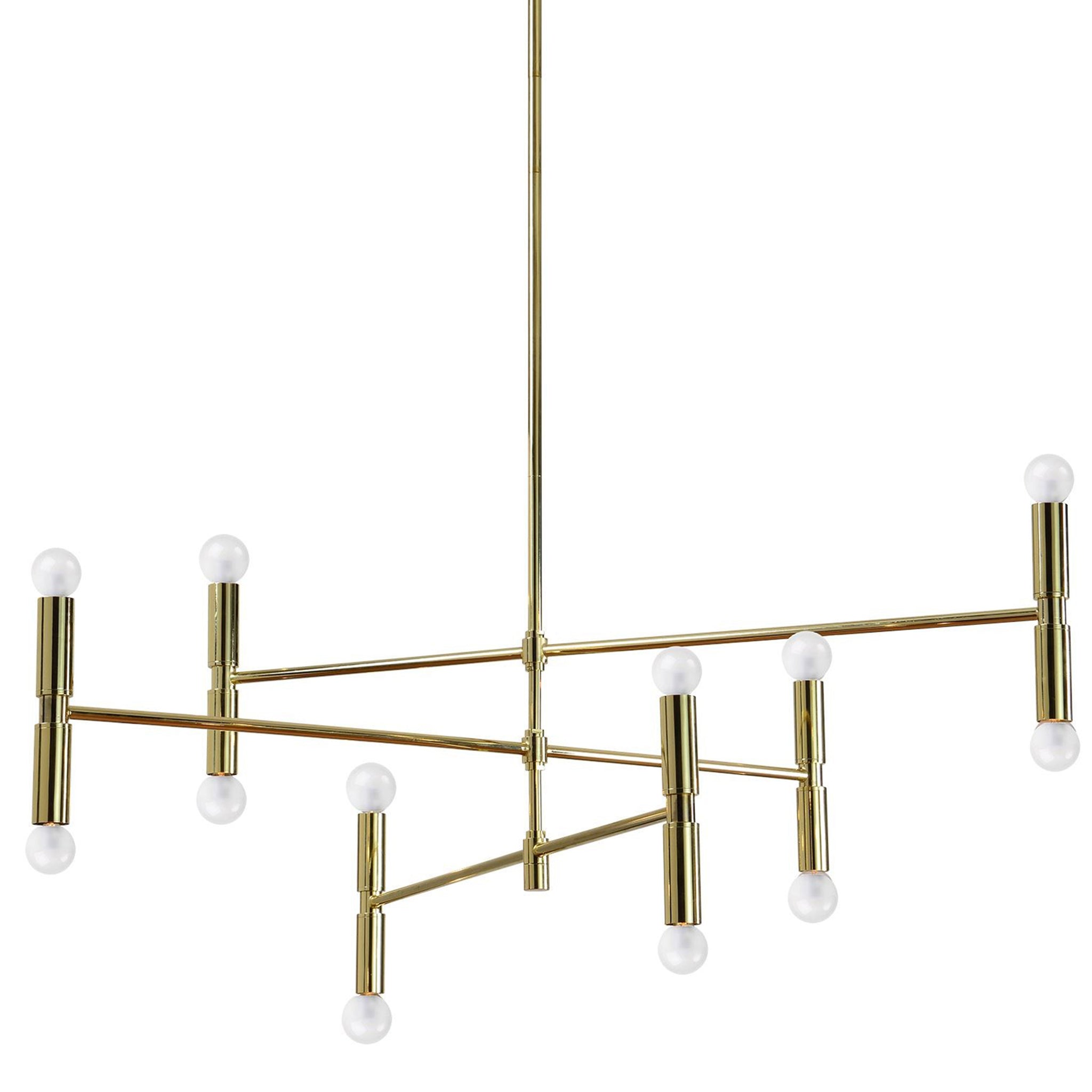 Des barres d'acier plaquées or rayonnant à partir d'un poteau central constituent la beauté simple du plafonnier Axis.