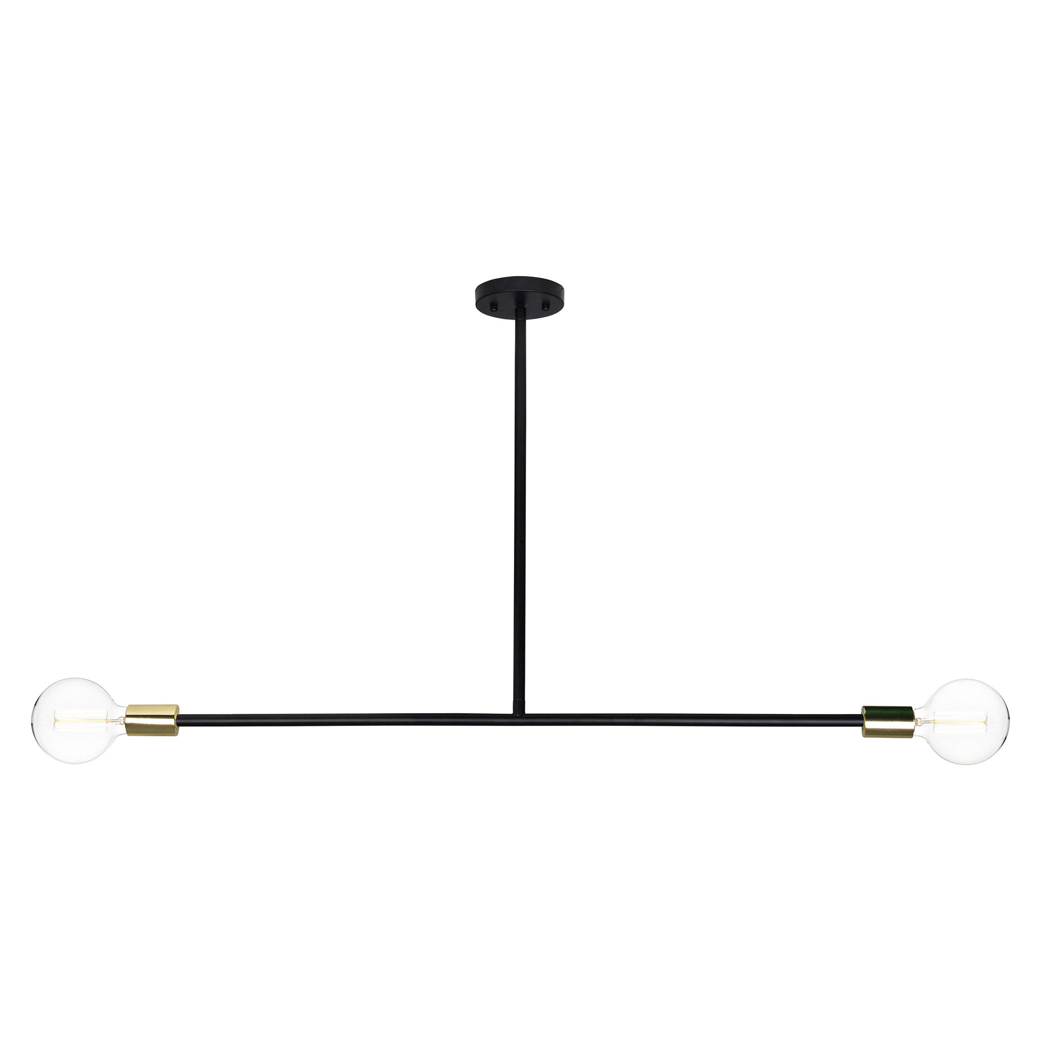 Les formes d'inspiration scandinave de cette suspension décontractée illuminent les pièces avec une touche de simplicité. Les cache-ampoules plaqués or ajoutent une touche glamour à la finition noir mat de la tige et de la base en métal. Le format horizontal de ce luminaire décoratif met en valeur les meubles rectangulaires et les illumine.
