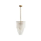 Cinq niveaux de plaques de verre transparent effet granuleux s'assemblent pour former le saisissant lustre Larie à trois lumières. La finition laiton antique de la structure en acier lui confère une allure élégante et gracieuse, tandis que les plaques de verre uniques ajoutent une touche de curiosité, avec des finitions variées et jamais identiques.