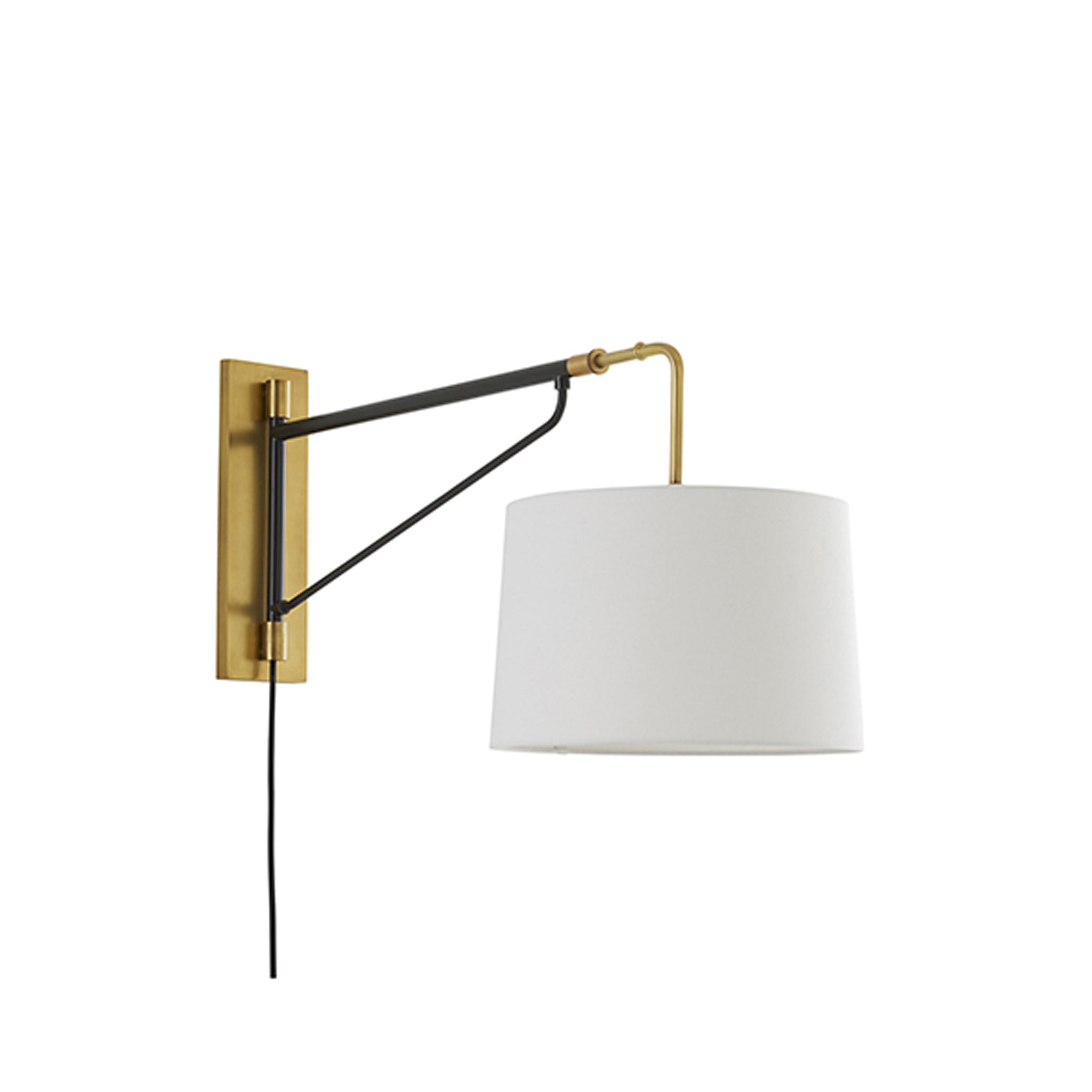 Illuminez votre table de chevet pour vous plonger dans la lecture de vos livres préférés, mais avec style. Le design traditionnel de cette applique est doté d'un bras en acier réglable qui vous permet de l'orienter dans l'orientation souhaitée. Un petit abat-jour en lin blanc contraste joliment avec les teintes bicolores des finitions bronze et laiton antique. Elle est dotée d'un cordon en tissu noir apparent avec interrupteur.