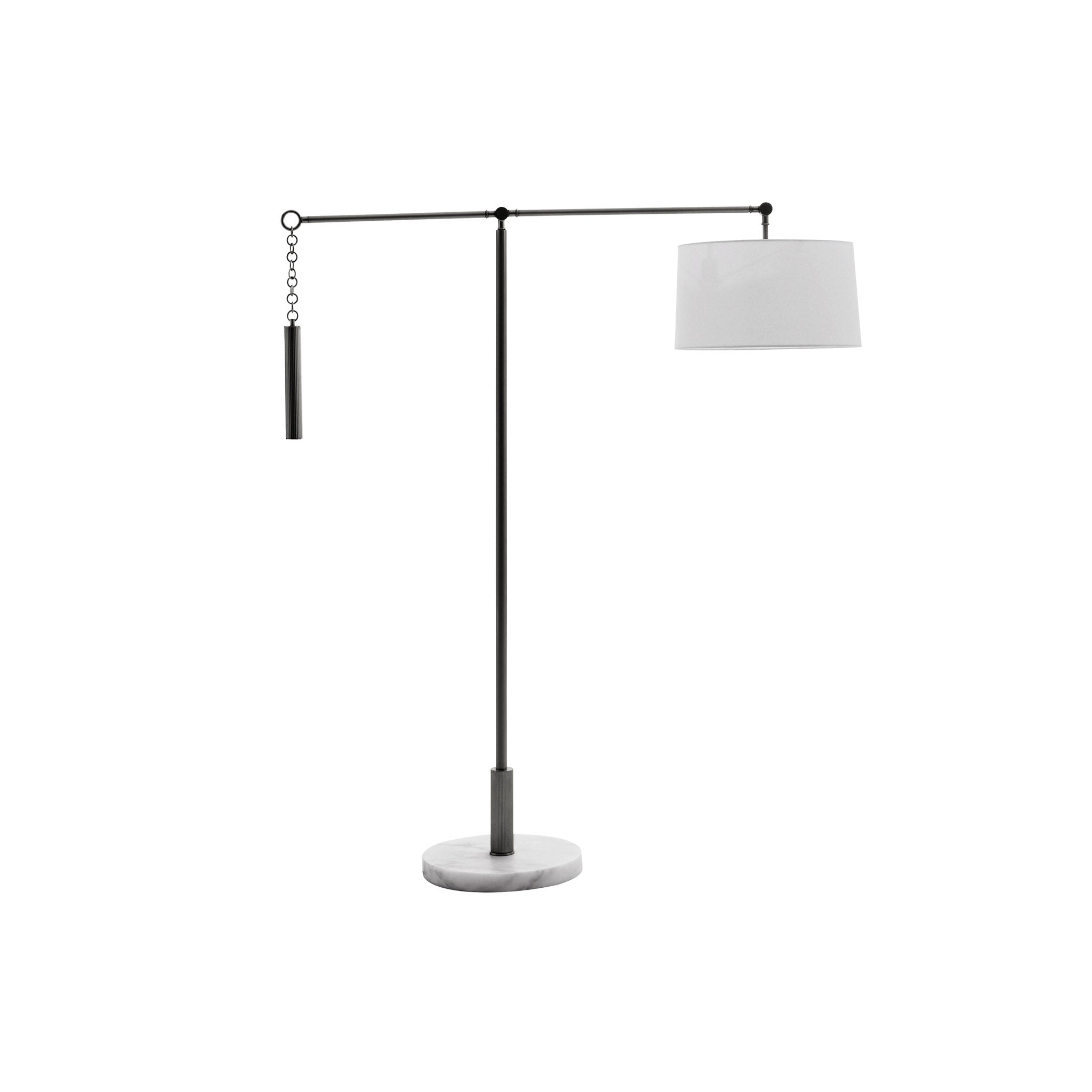 Le Newark fait une déclaration avec son design unique et son style transitionnel. La construction en acier en porte-à-faux présente une finition en bronze anglais et est accompagnée d'une base circulaire en marbre blanc. Un contrepoids cannelé vous permet d'ajuster facilement l'abat-jour tambour en lin blanc afin qu'il reste incliné à l'angle choisi pour amplifier toutes les tâches à accomplir. La finition variera.