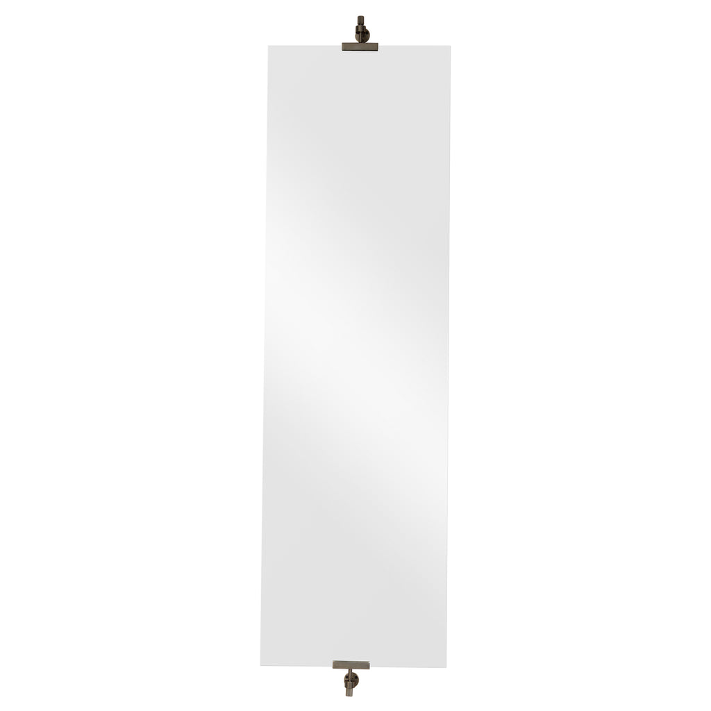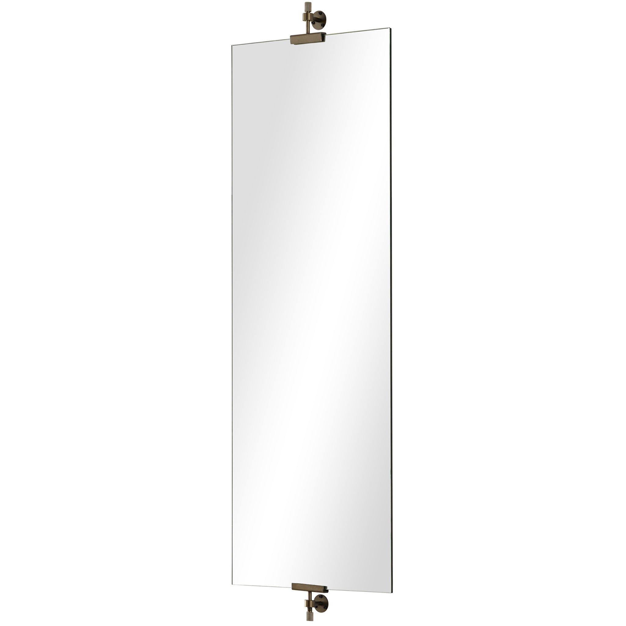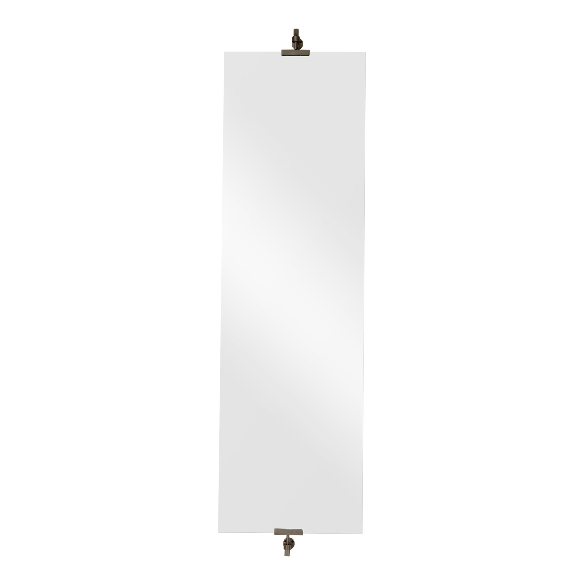 Ce miroir incliné tout en verre s'inspire des détails industriels du mouvement Arts and Crafts. Des attaches métalliques en haut et en bas du miroir rectangulaire le maintiennent en place, ajoutant une touche architecturale à sa suspension verticale aux murs de la chambre et de la salle de bain. Avec un style de montage rappelant celui d'un chevalet d'artiste, chaque reflet devient le sujet de la toile.