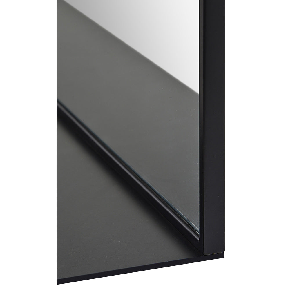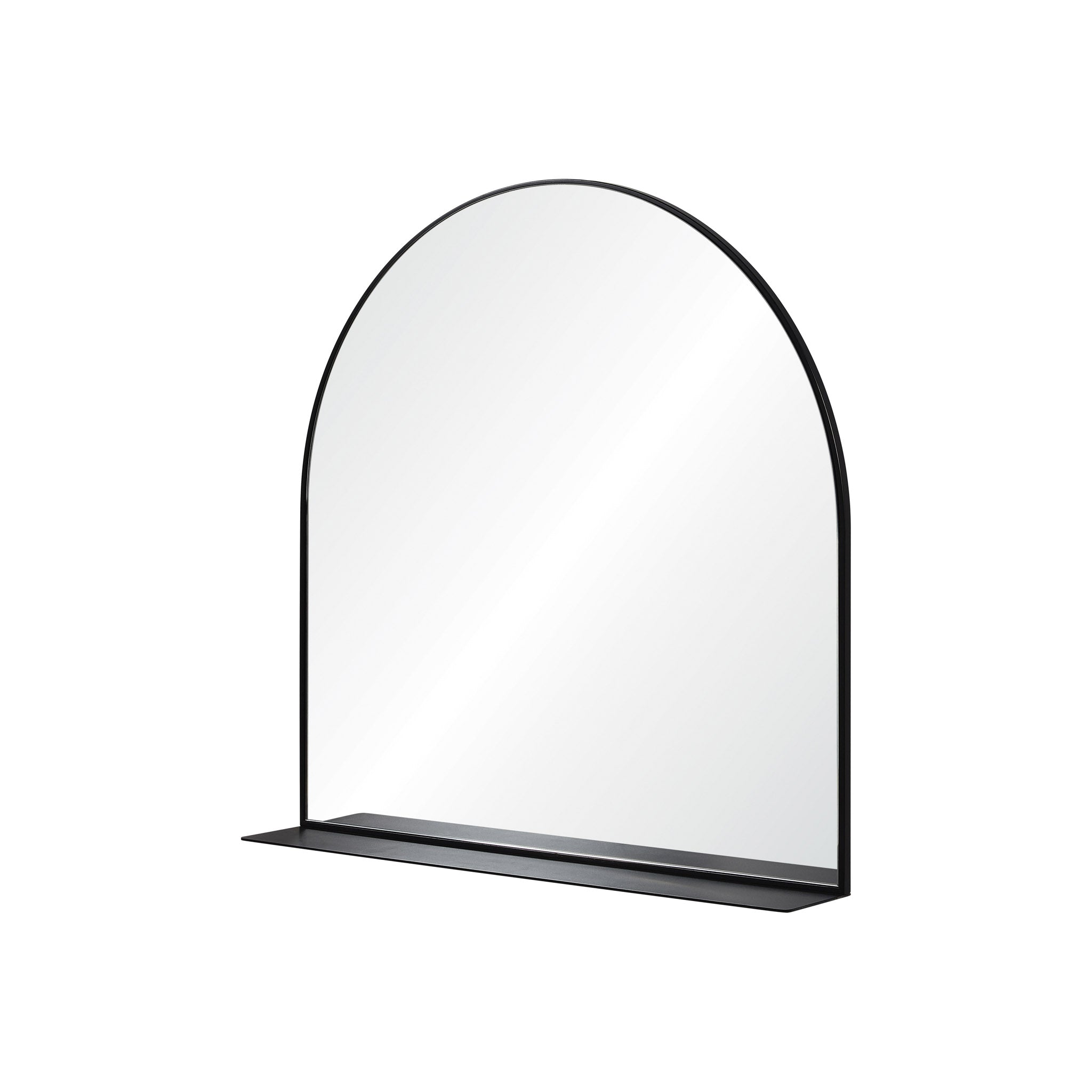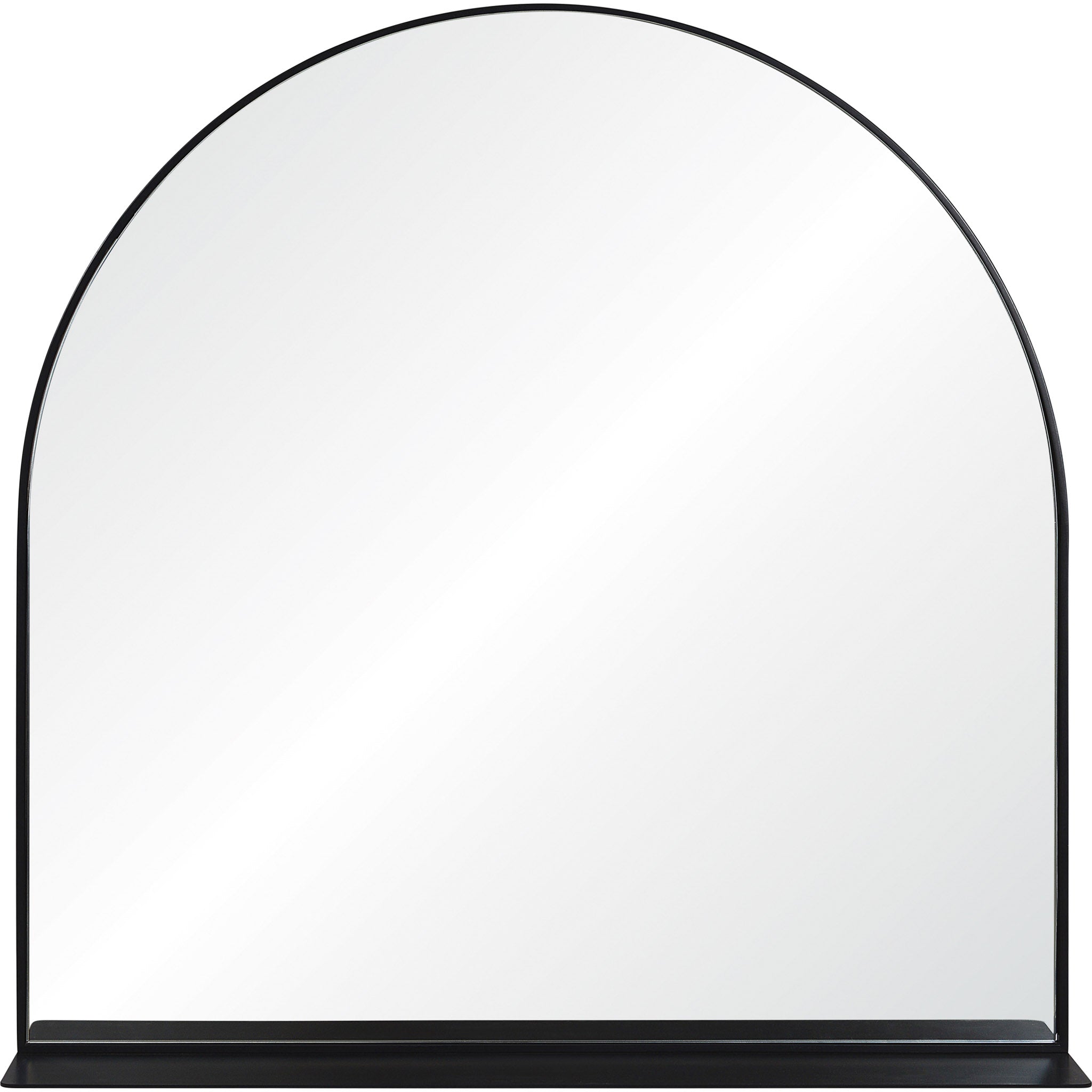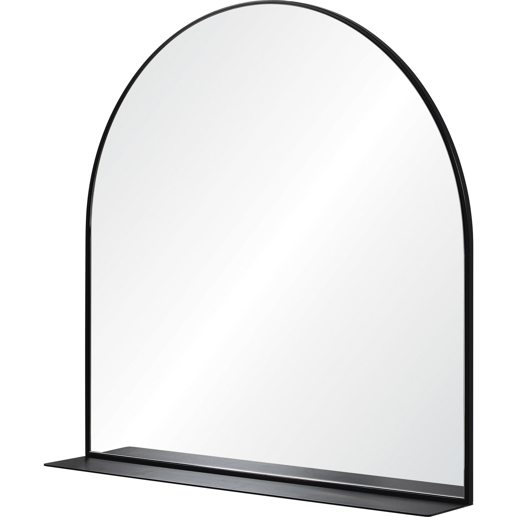 Ce miroir allie style et fonctionnalité grâce à son étagère intégrée et son cadre noir translucide. Son allure luxueuse est juxtaposée à des courbes d'inspiration rétro. Placé dans une entrée moderne, il donne le ton d'une maison à la fois vivante et sophistiquée.