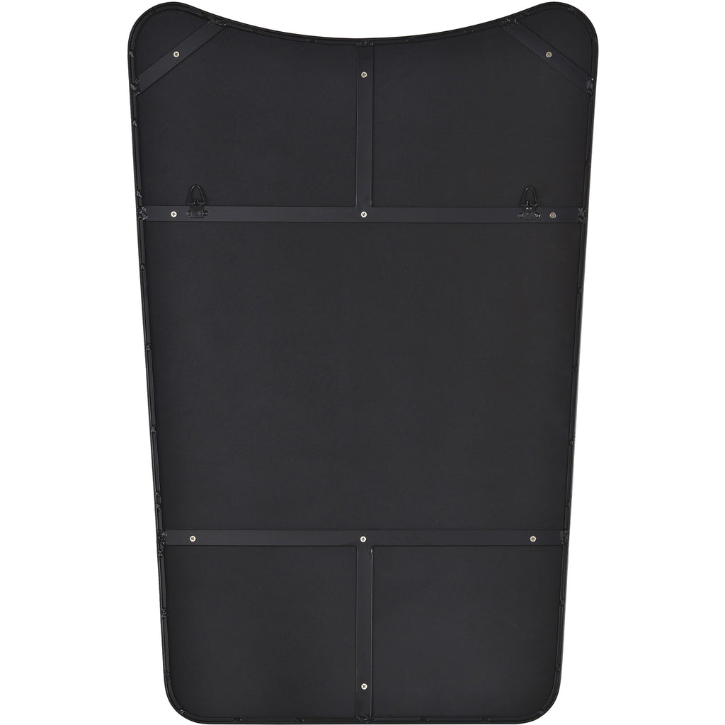Le miroir Newman présente des angles accrocheurs, équilibrés par la qualité traditionnelle de son cadre en fer peint en noir mat. Avec ses 61 cm de largeur et 91 cm de hauteur, il apporte instantanément de la personnalité à la pièce.