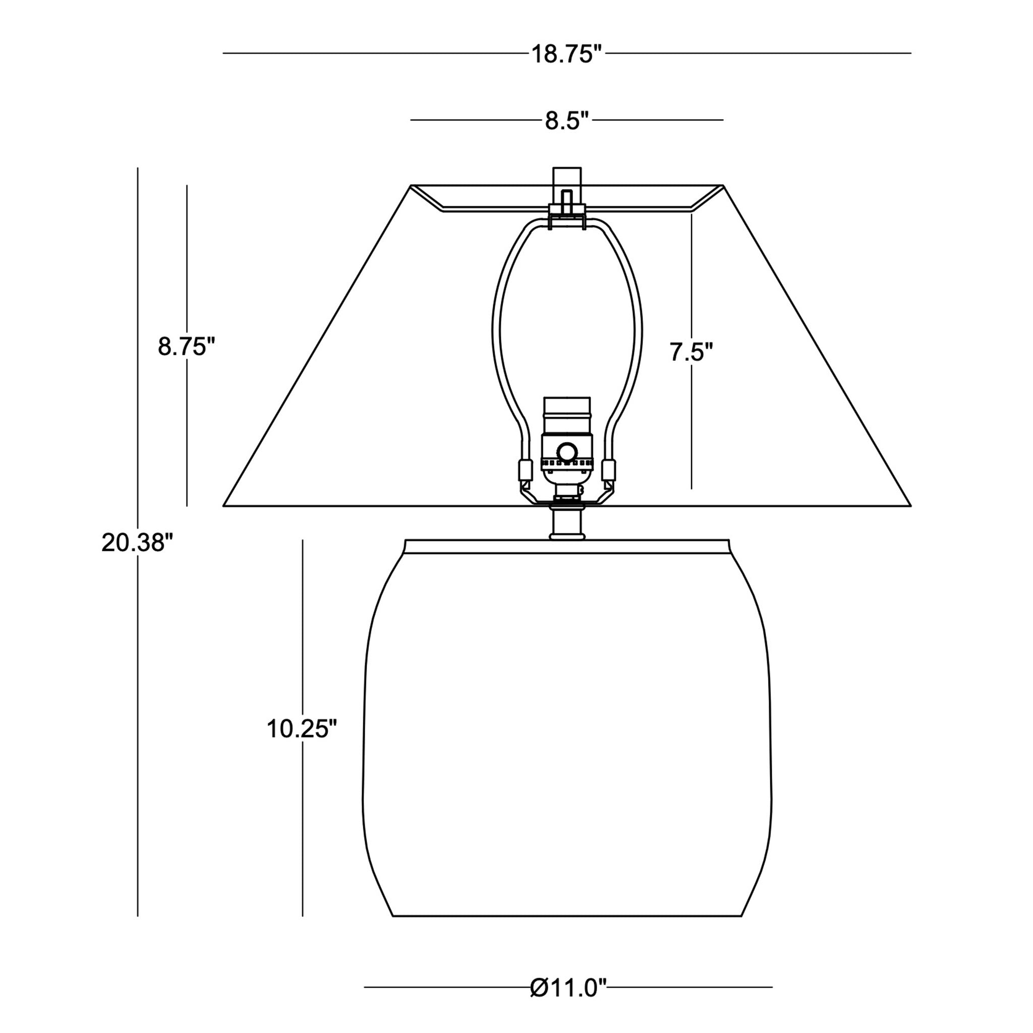 Dimensions de l'abat-jour : 8,75" H x 18,75" L x 18,75" P