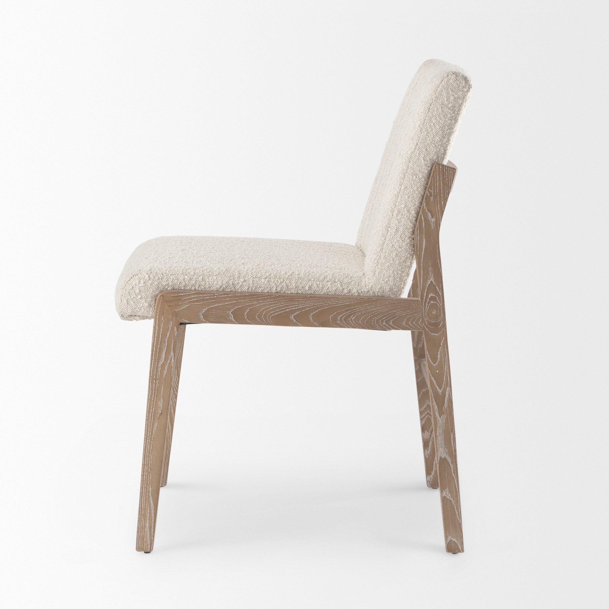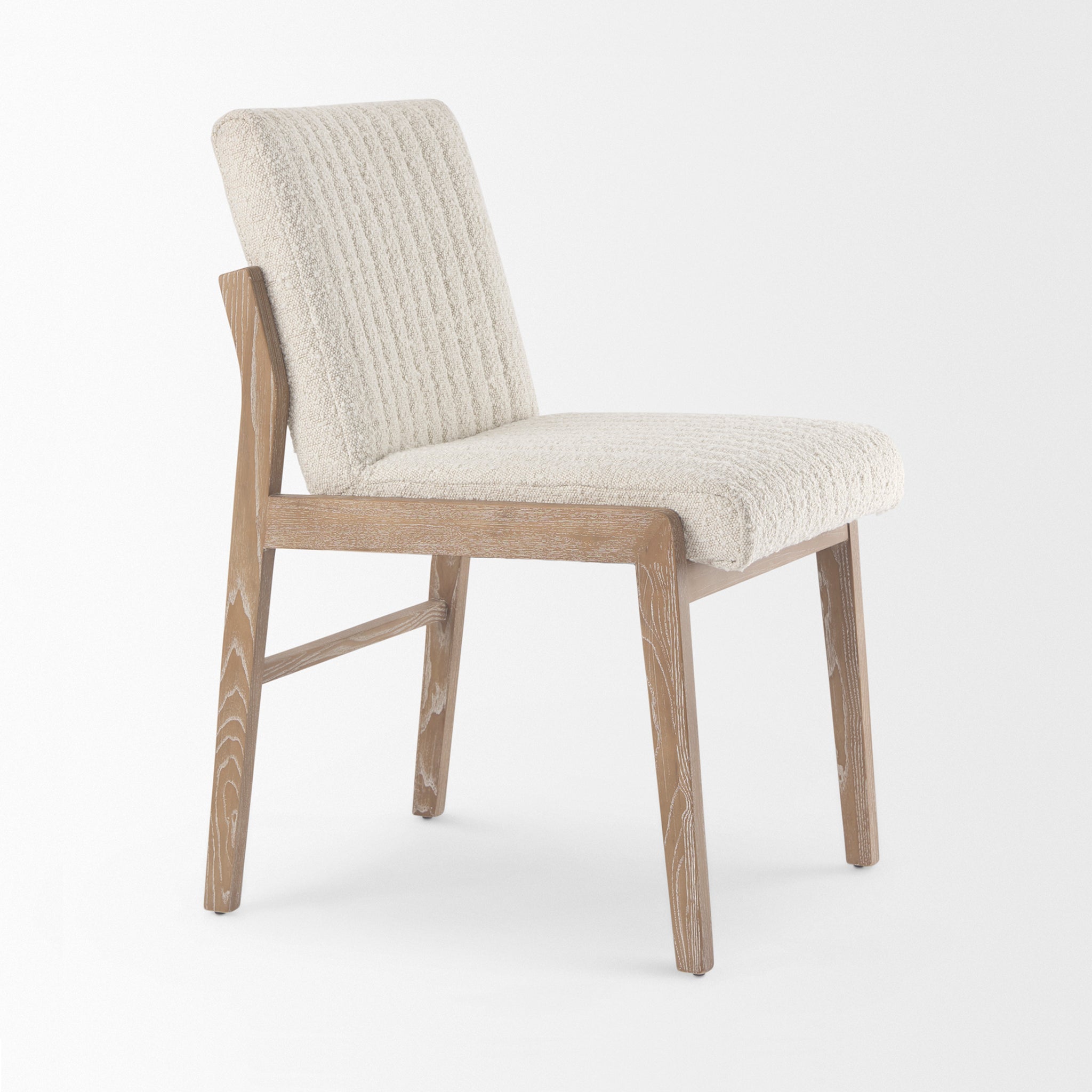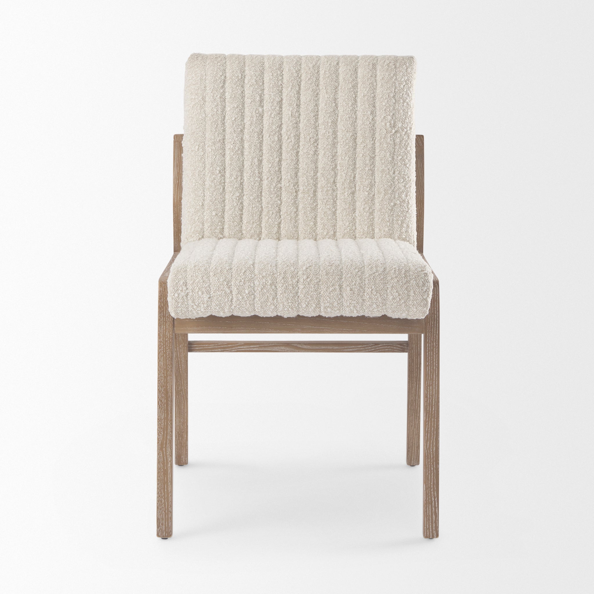 Theo Cream Boucle Armless Dining Chair in Light Wood - Set of 2