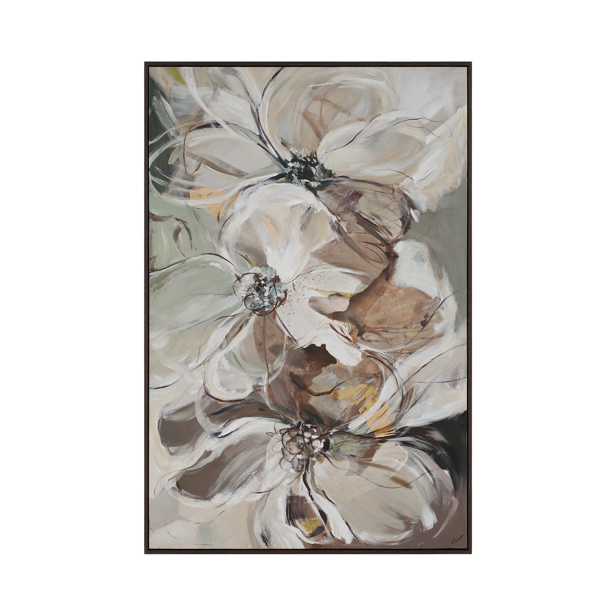 Soften up the look of any space with the feminine design of this floral wall art canvas. Painted by hand using an abstract approach, its textured technique and soft shades create a soothing effect in the room. Large dimensions make this framed canvas ideal for hanging on a big wall to create something truly eye-catching and memorable.