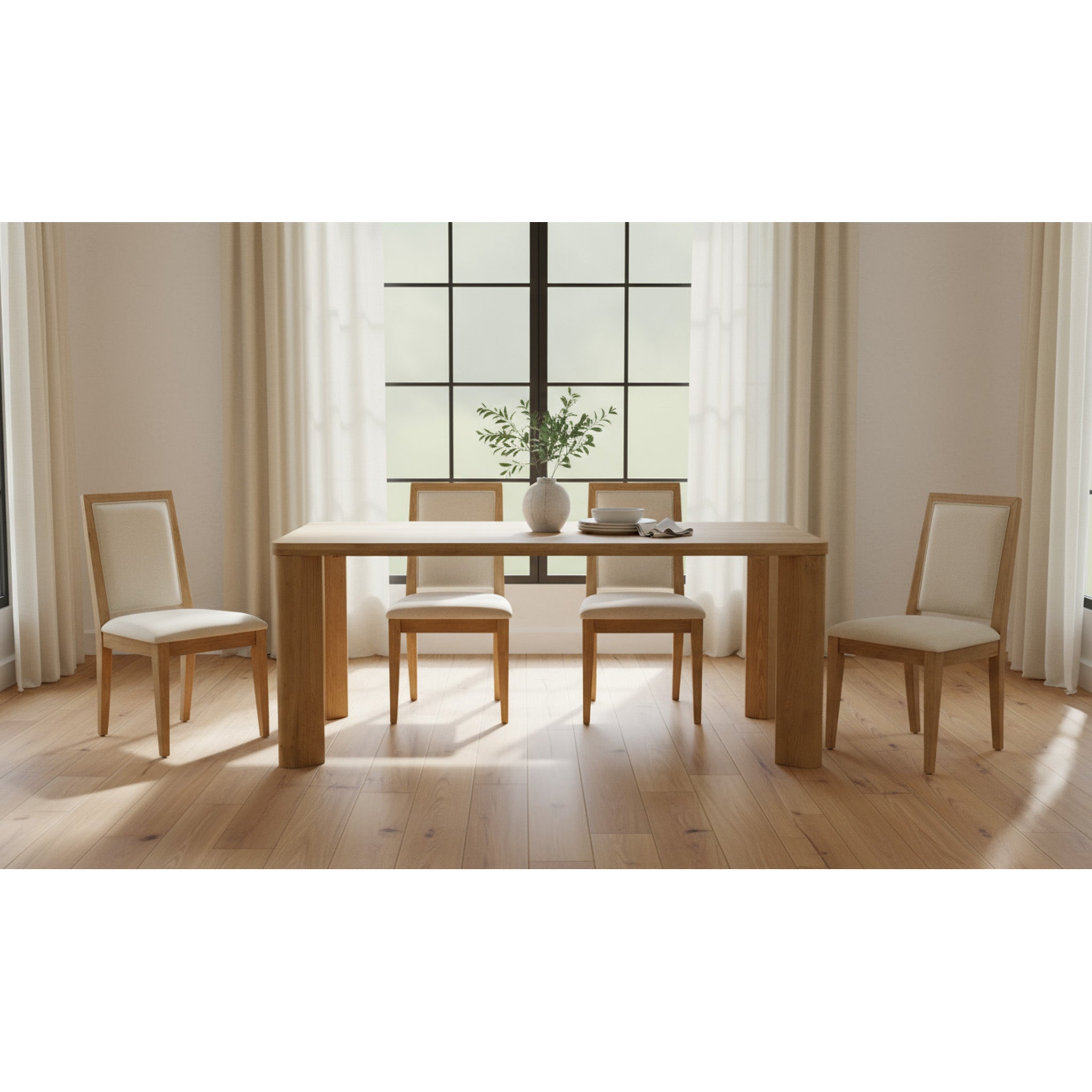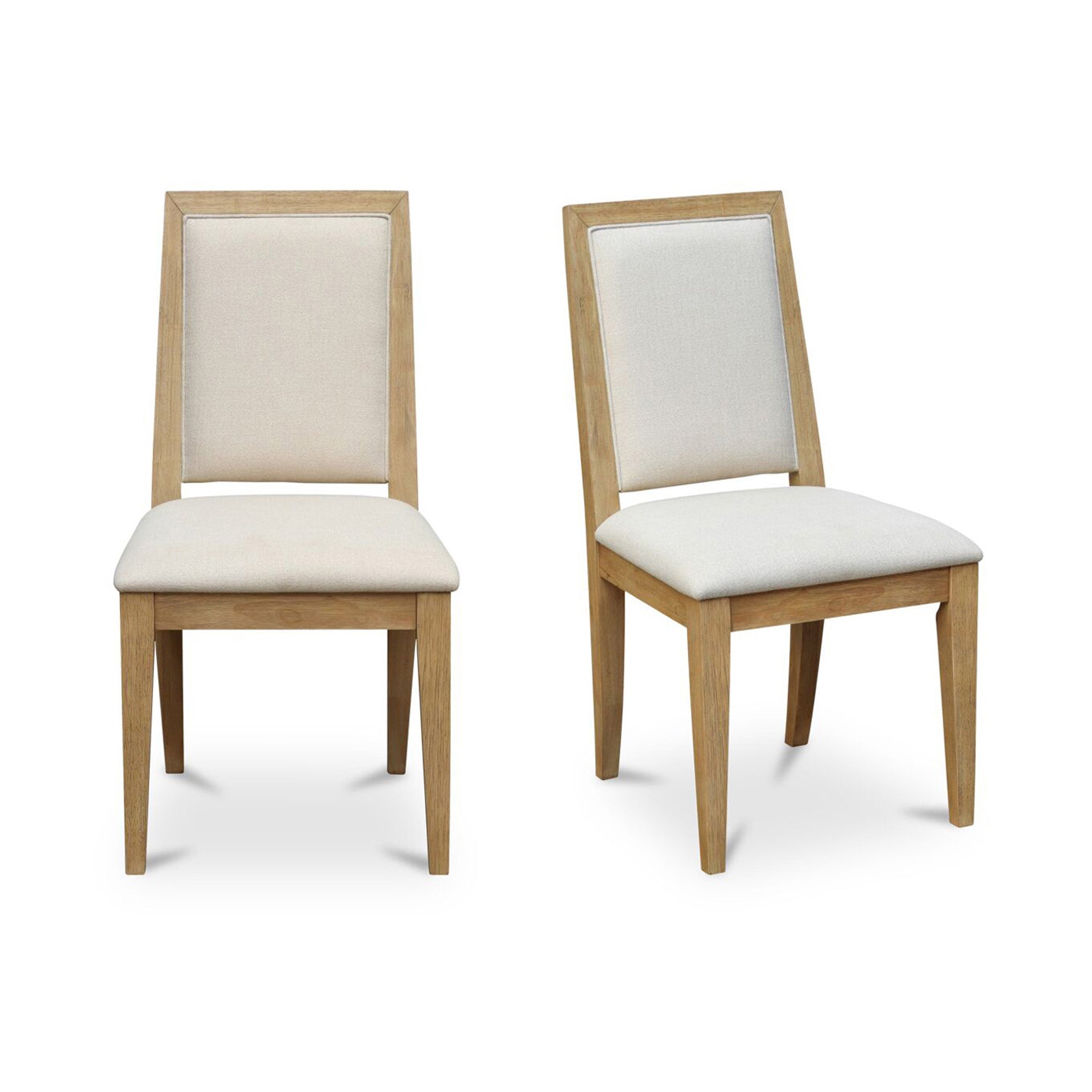 Framed to feel familiar. Adrian keeps tradition comfortable. A high back, plush seat, and wraparound solid wood frame offer supportive ease with a refined feel. The exposed wood adds structure, while a small gap between the seat and back keeps it light. Wrapped in warm beige with a wire-brushed finish, it's all about quiet charm.