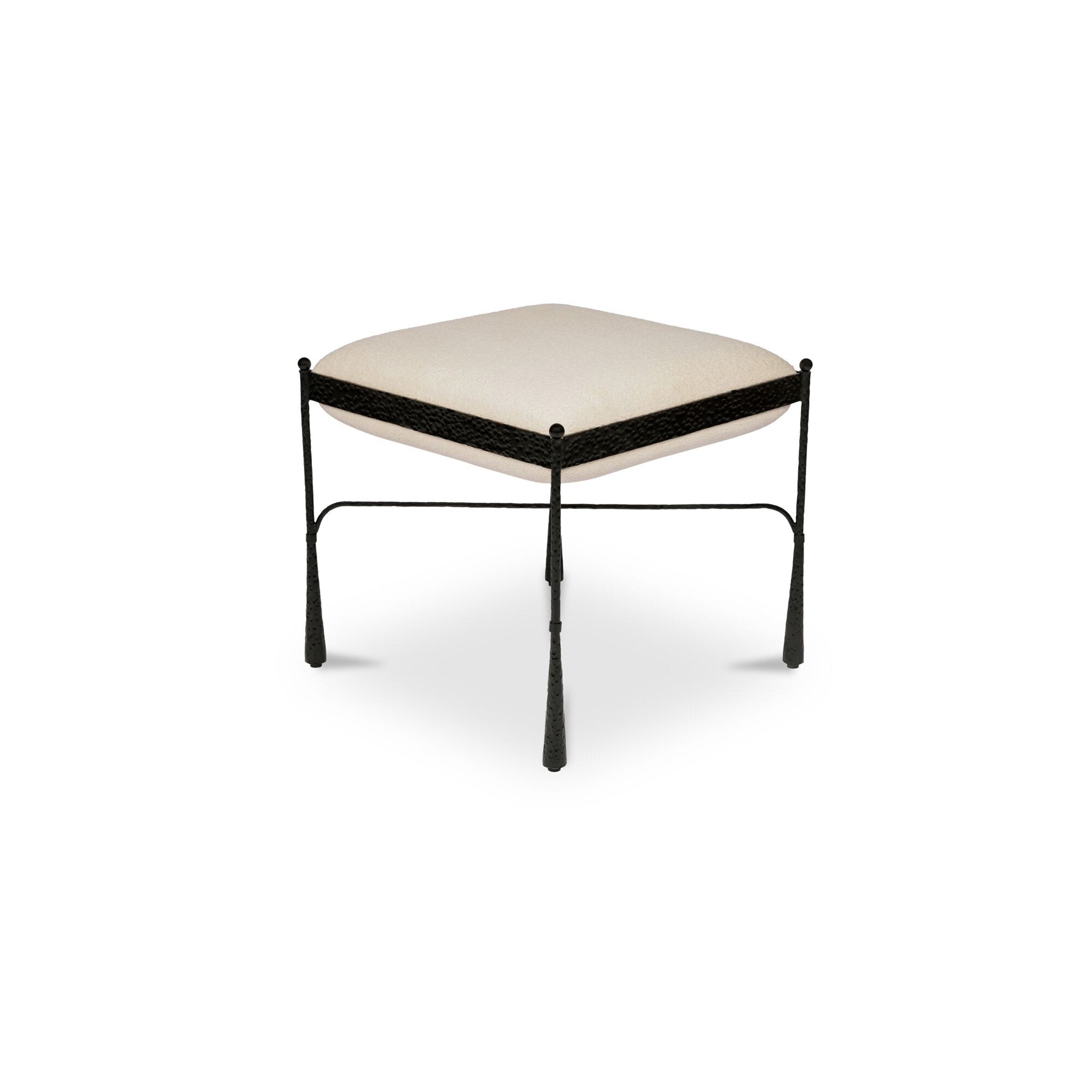 Flared legs. Nailed the landing. Agne brings a refined kind of flair. Its exposed iron frame feels sculptural and grounded, while the flared legs and finial detailing nod to vintage forms. The seat is finished in a soft, looped weave that adds texture and contrast without stealing the spotlight. It's equal parts structure and softness-a thoughtful mix of form, function, and just the right amount of flourish.