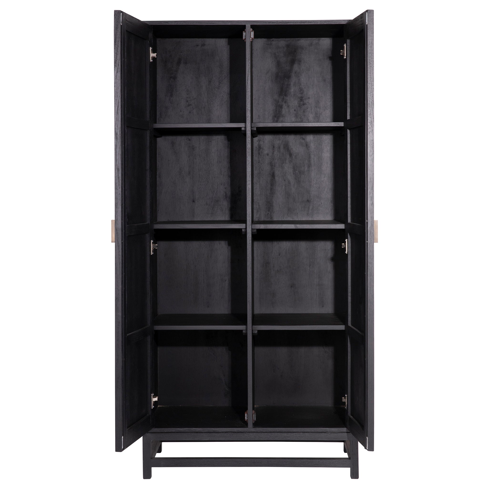 Crafted from high-quality wood, the Ambrose Cabinet combines exotic allure with timeless elegance. Its antique black frame beautifully contrasts with the natural door panels, creating a captivating visual juxtaposition. This exquisite cabinet exudes both durability and charm. It is for storing essentials or displaying decorative items by offering versatile functionality with a touch of sophistication. Whether gracing a living room, bedroom, or hallway, the wooden cabinet adds character and style to any space. Upgrade your home decor with the distinctive allure and craftsmanship of this cabinet.