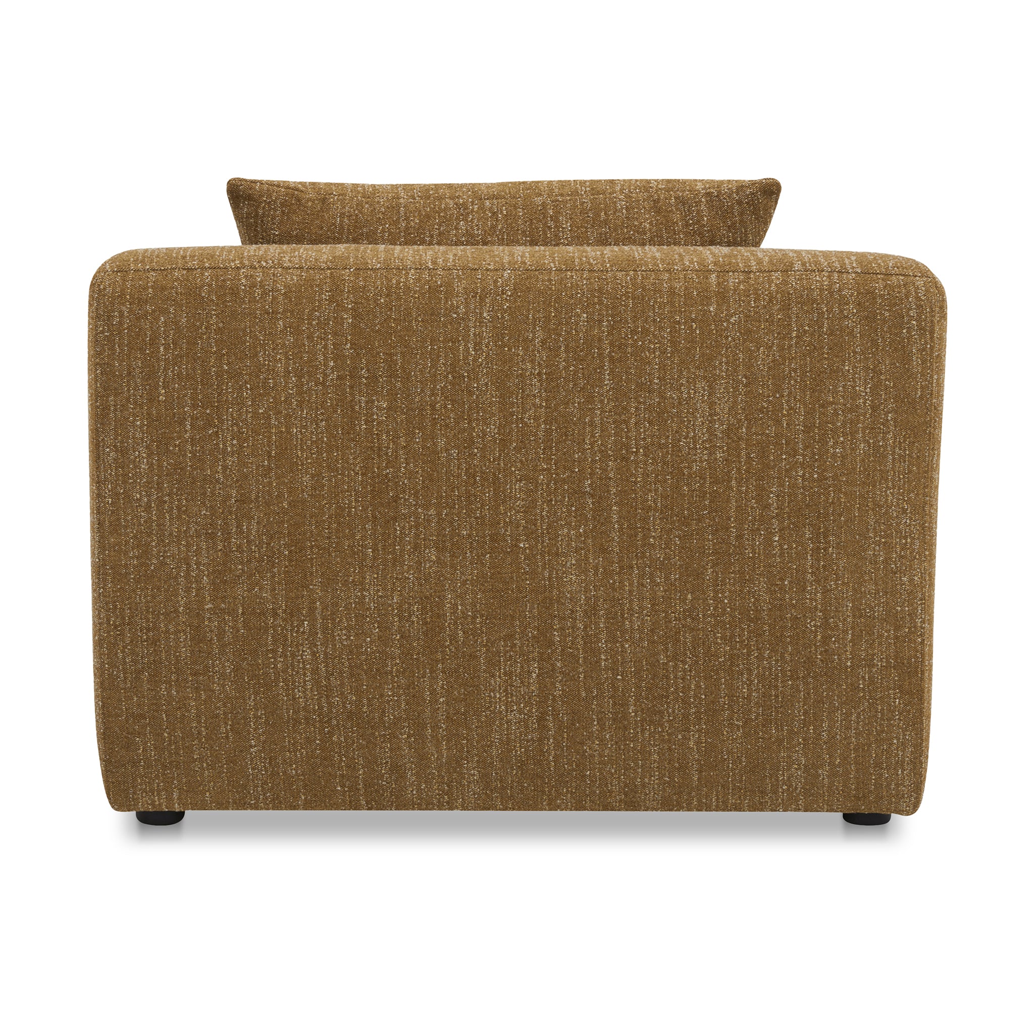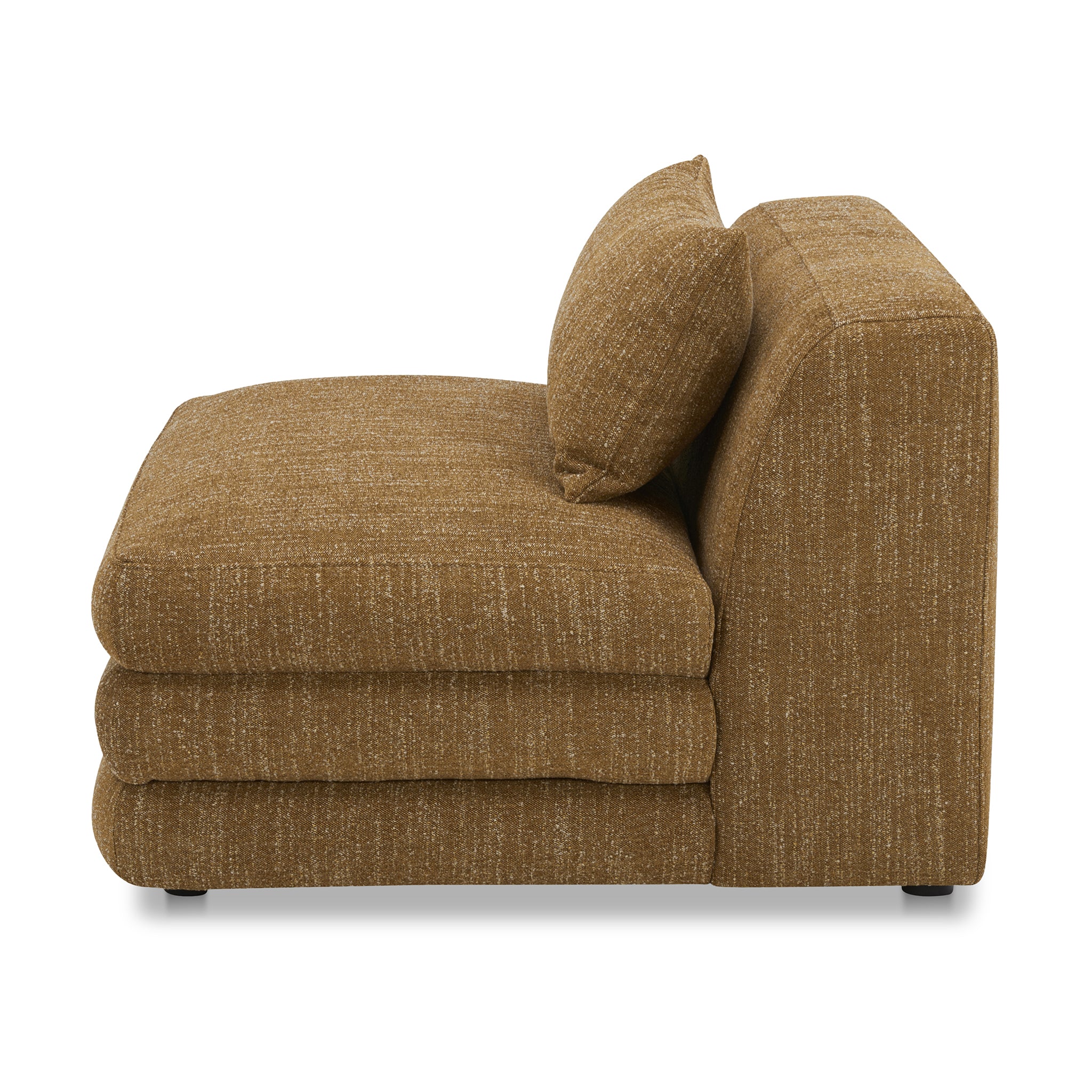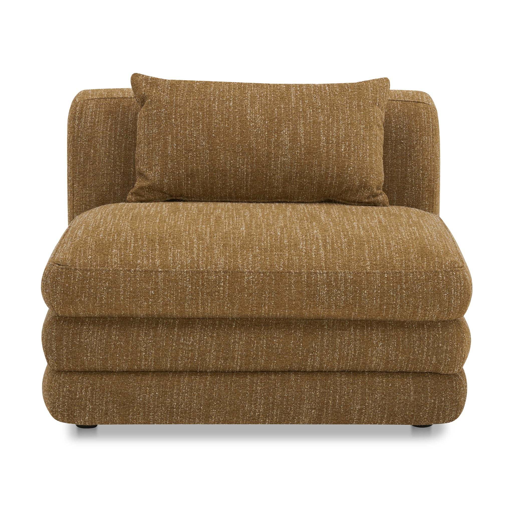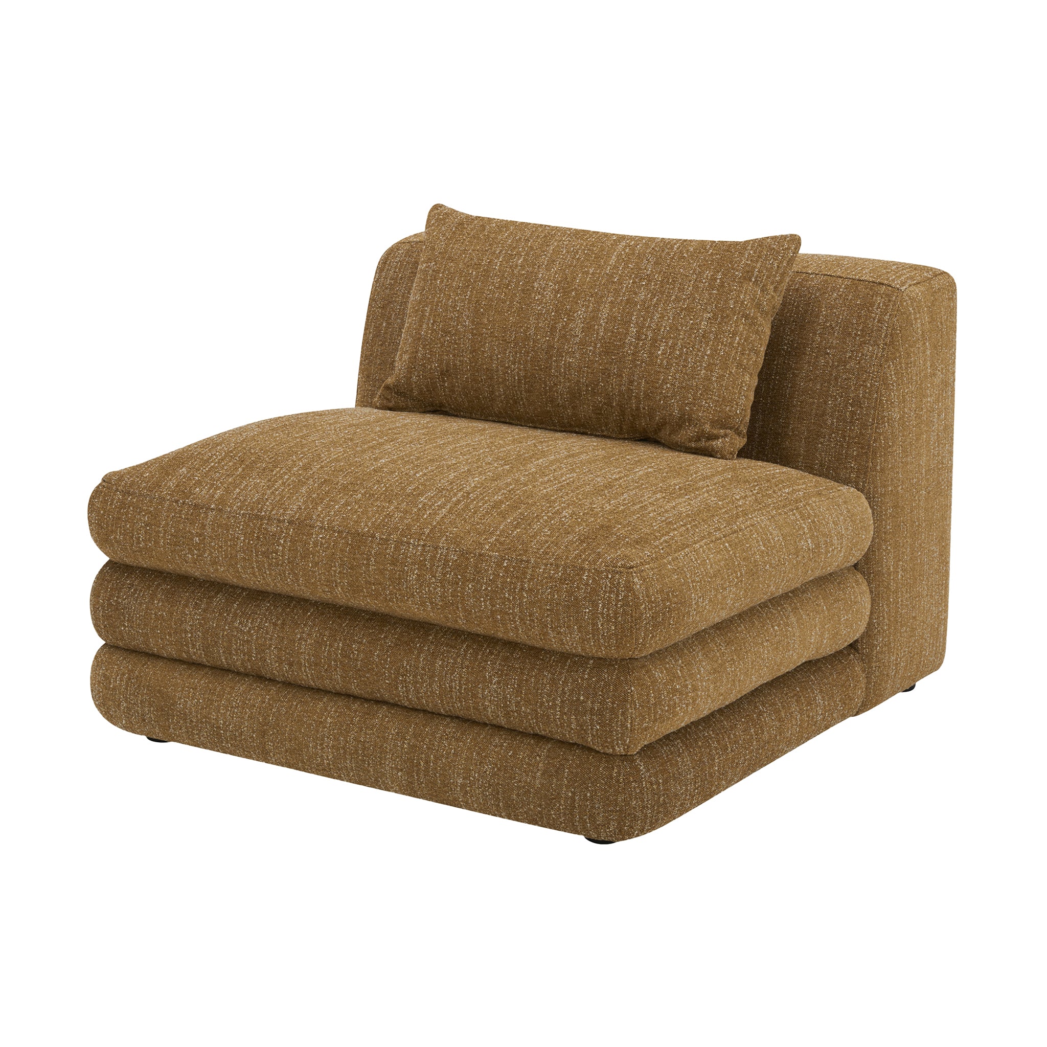 Influenced by the playful forms of the 1970s, the Angel slipper chair showcases a layered appearance that promotes comfort. Its vintage influence and understated elegance are enhanced by the use of textured fabric. On its own or combined as a modular sectional, this piece adds visual interest while allowing for creative arrangement possibilities.