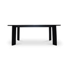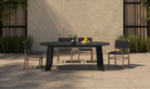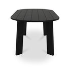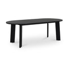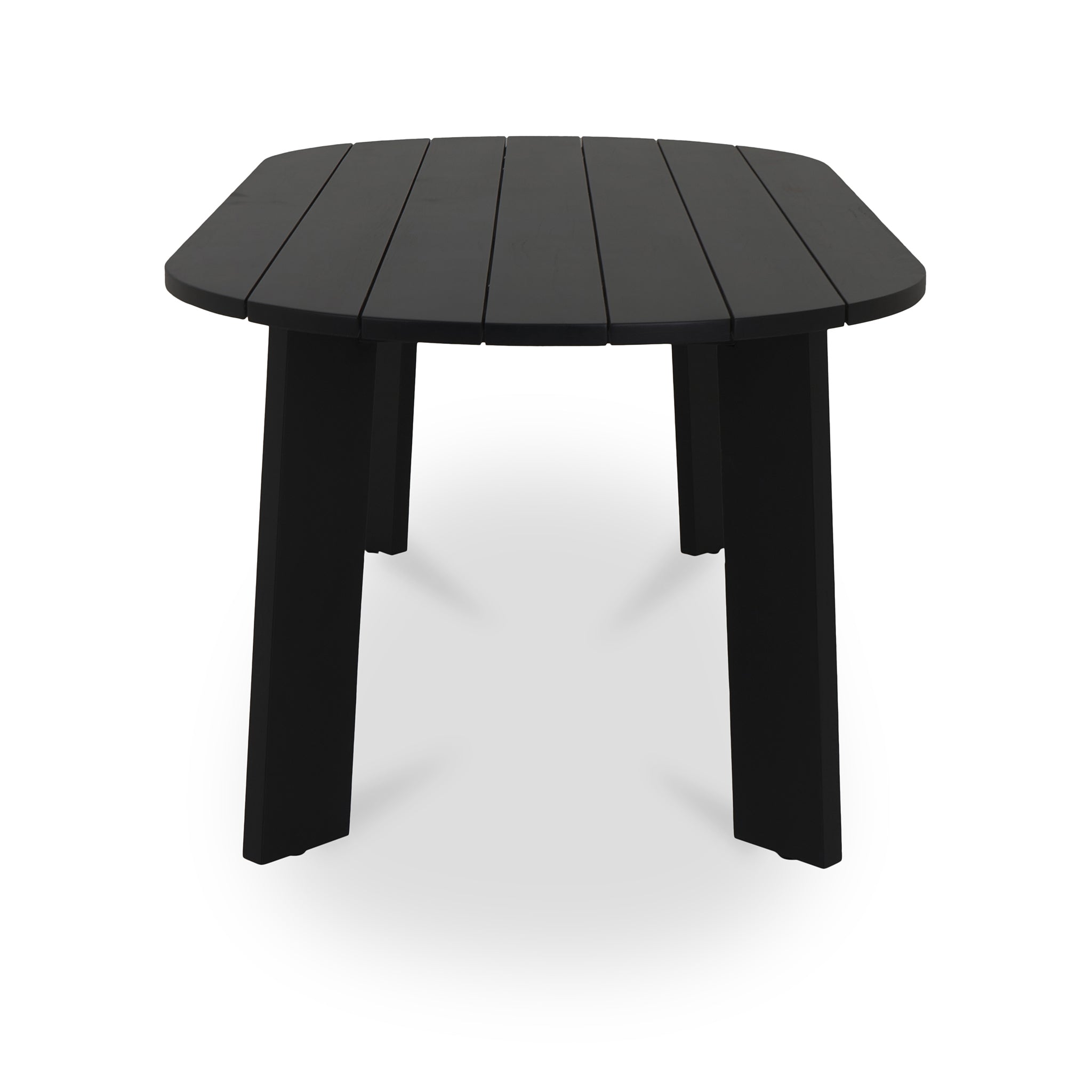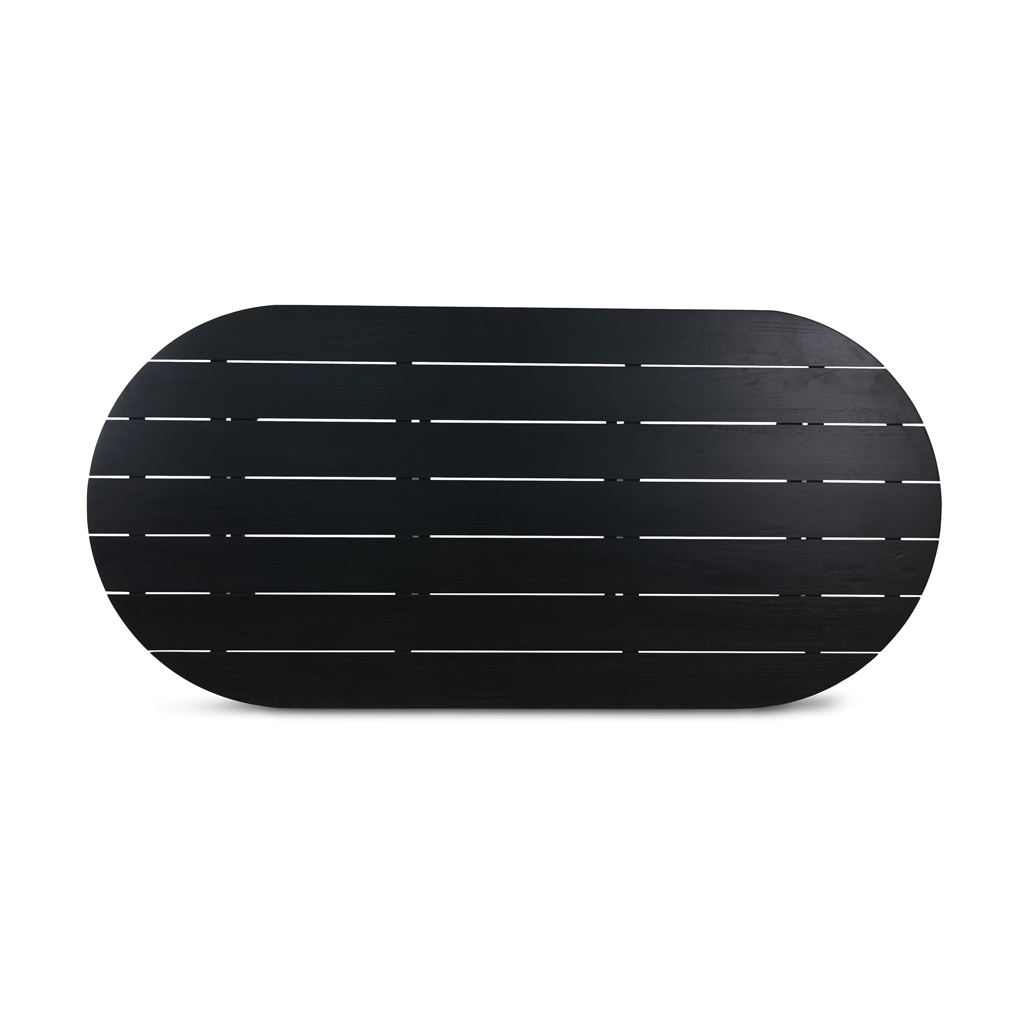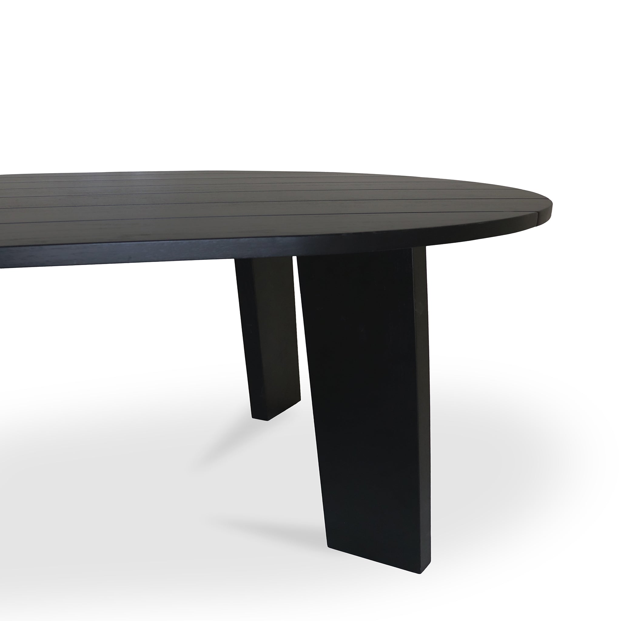 Embodying contemporary sophistication, this solid teak table celebrates natural material. The Asher outdoor dining table's angular legs provide a striking contrast to the oval, curved top, creating a minimalist yet elegant aesthetic. Over time, the table embraces a unique silver-grey patina as the teak and oils naturally weather. Though the process lends to its character, a teak sealer can be applied to maintain its original allure.