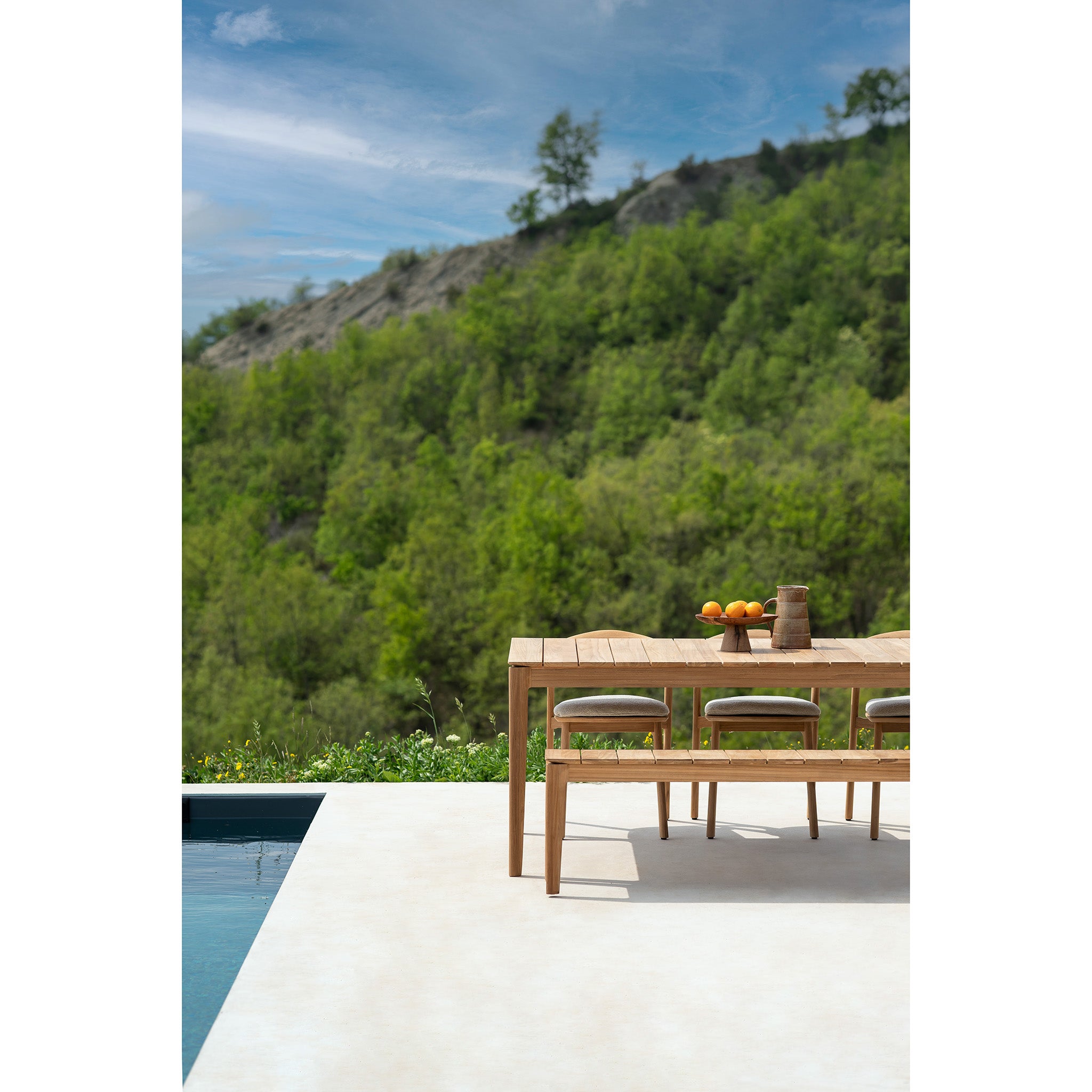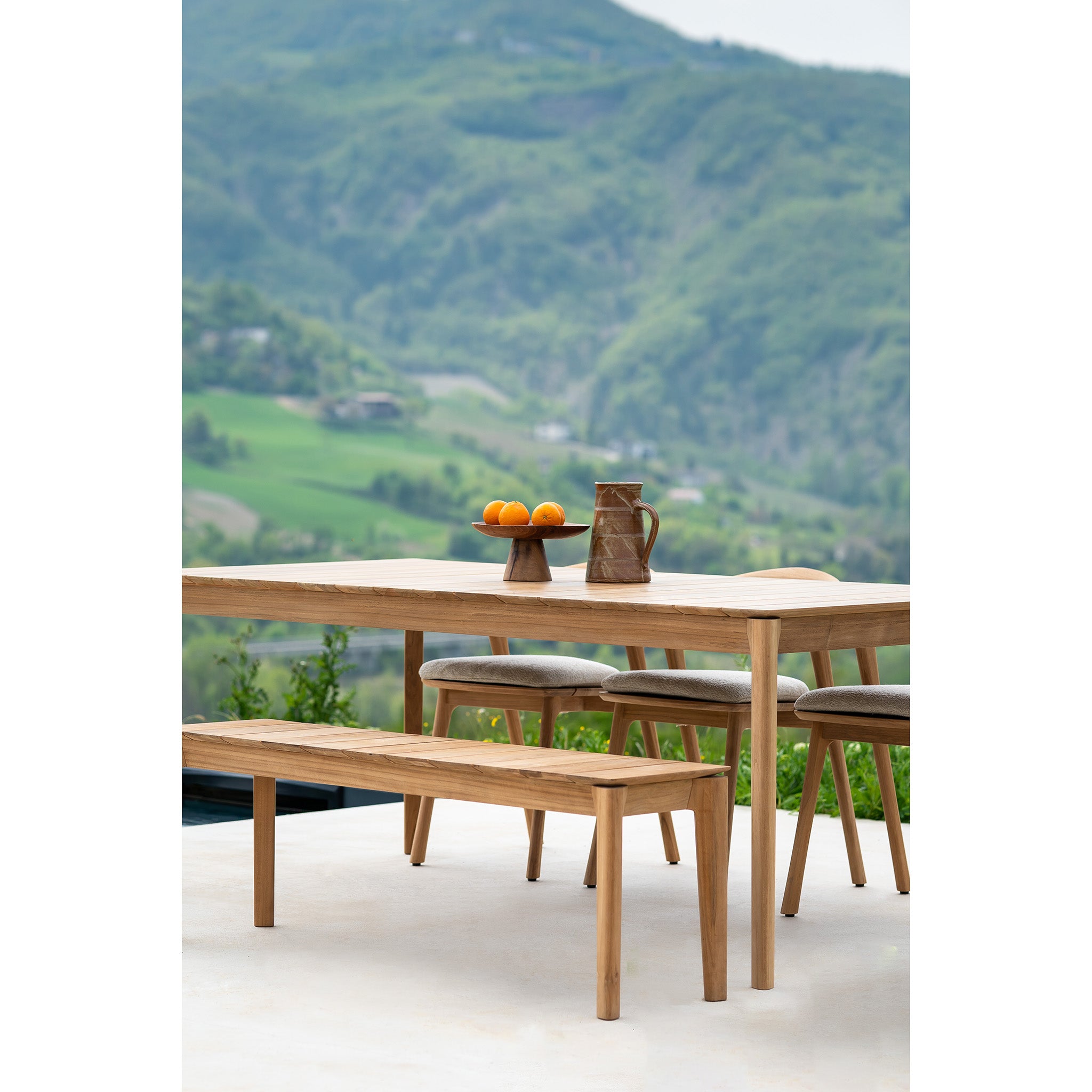 Just like its matching chair, the Bok dining table is another signature design. Its airy shape yet rock solid construction makes this piece a timeless and remarkable design to enjoy for all the years to come, while the adapted grooved tabletop in solid teak makes outdoor life a simple pleasure.