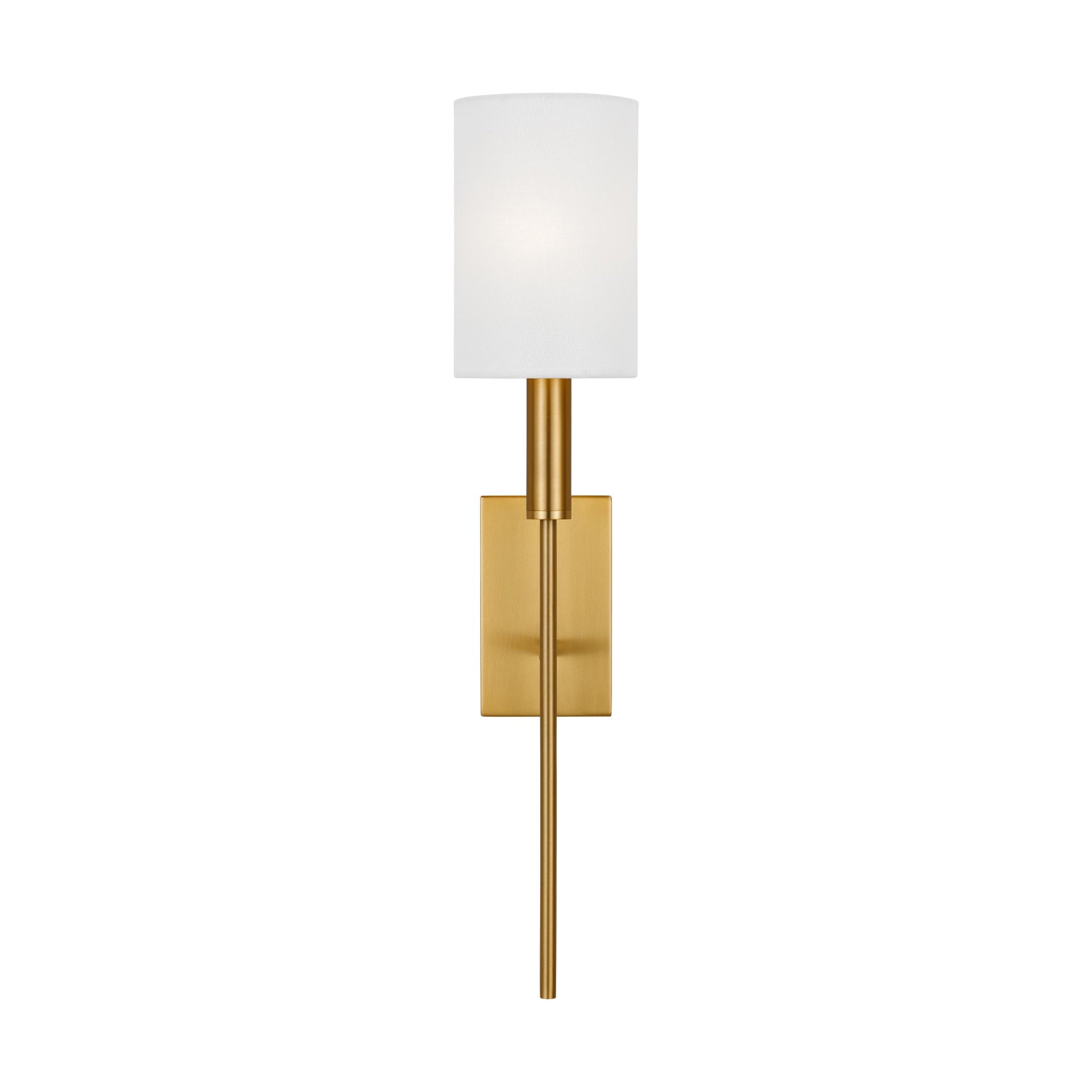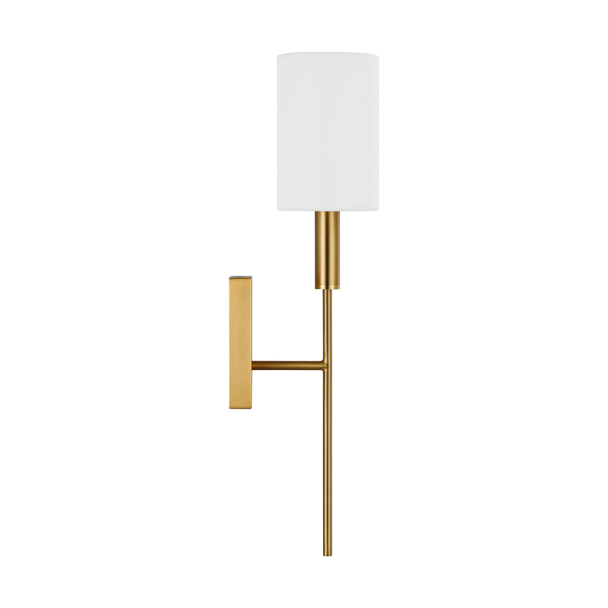 Brianna's graceful, seamless curvature and elongated tubular arms lend fluidity and modern appeal to this classic minimalist silhouette. Available in rich, gilded Burnished Brass, Aged Iron, and the more contemporary Polished Nickel finish. Brianna wall sconces include cylindrical shades in fresh Linen.