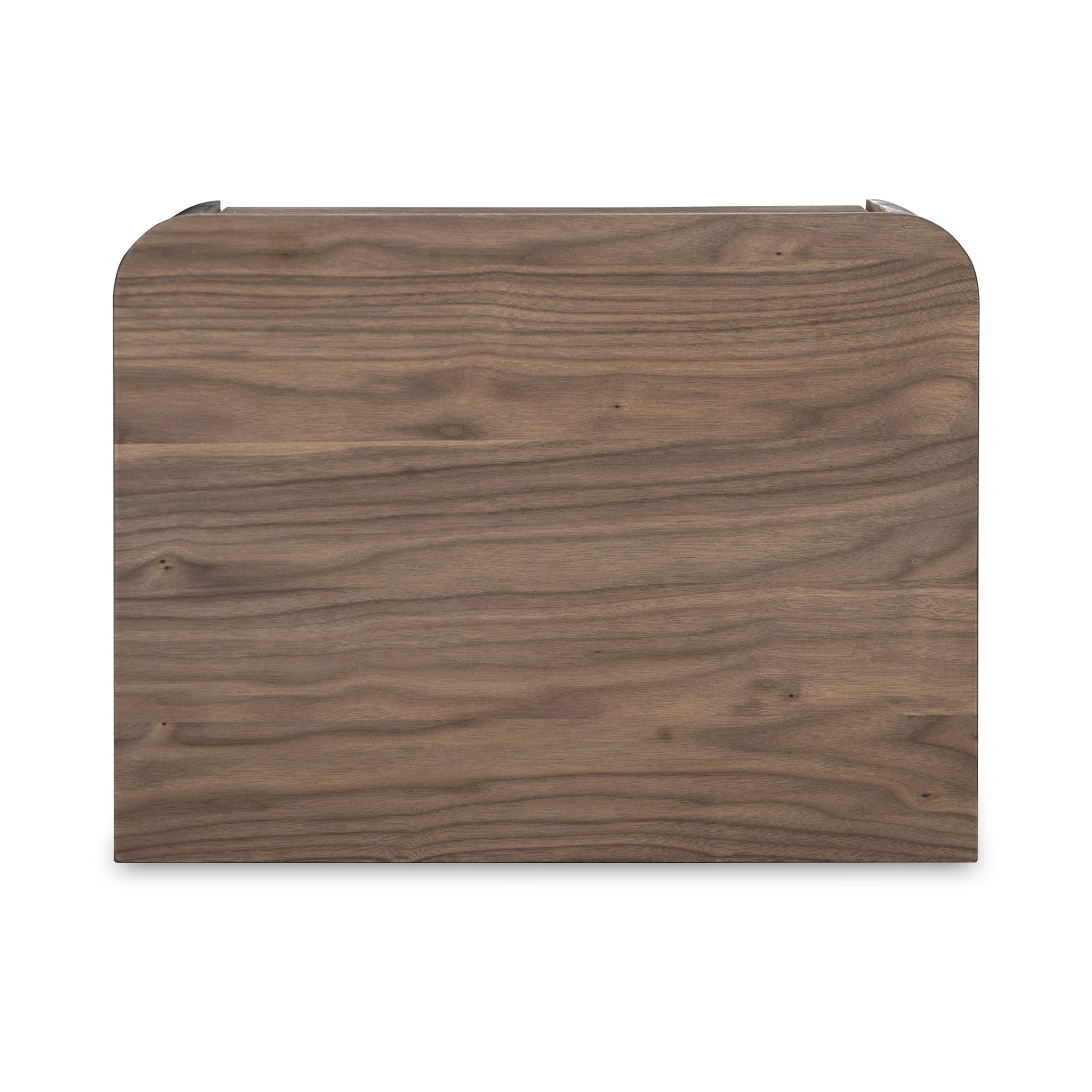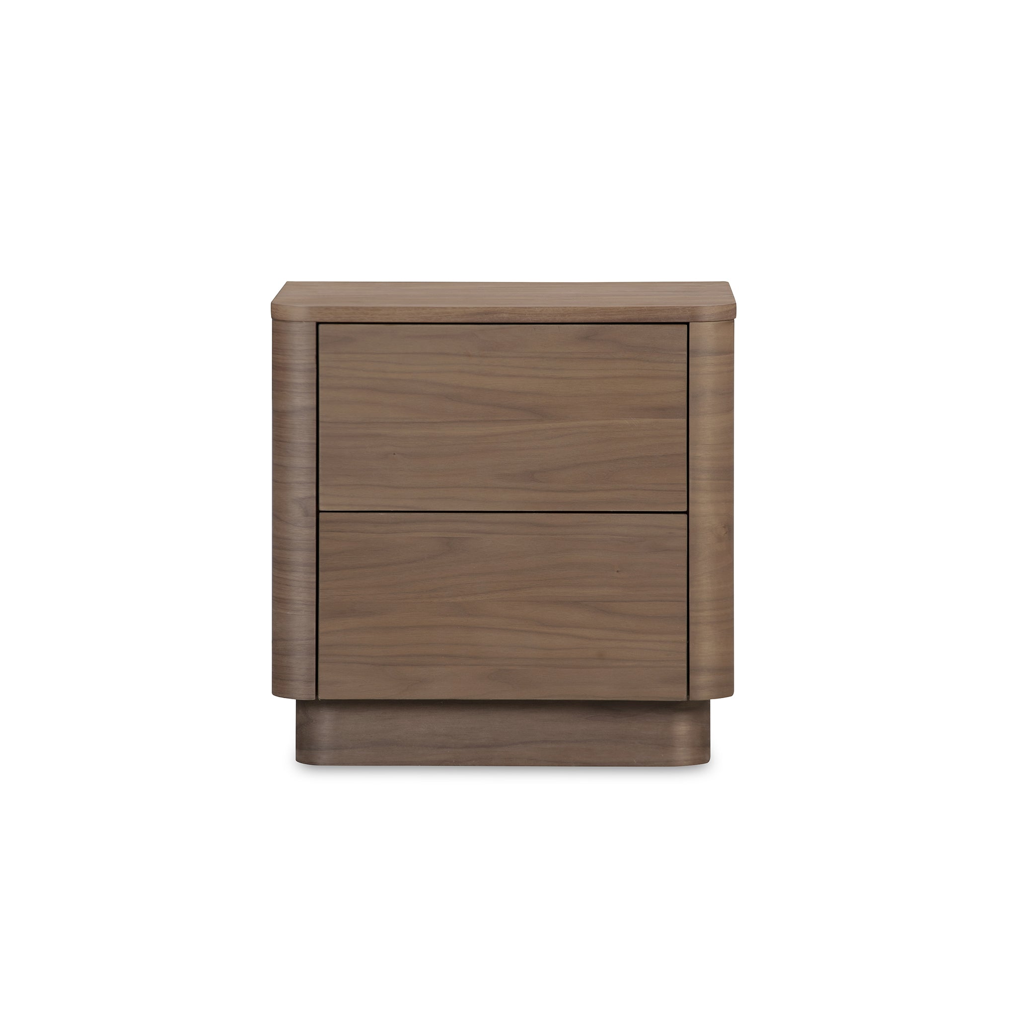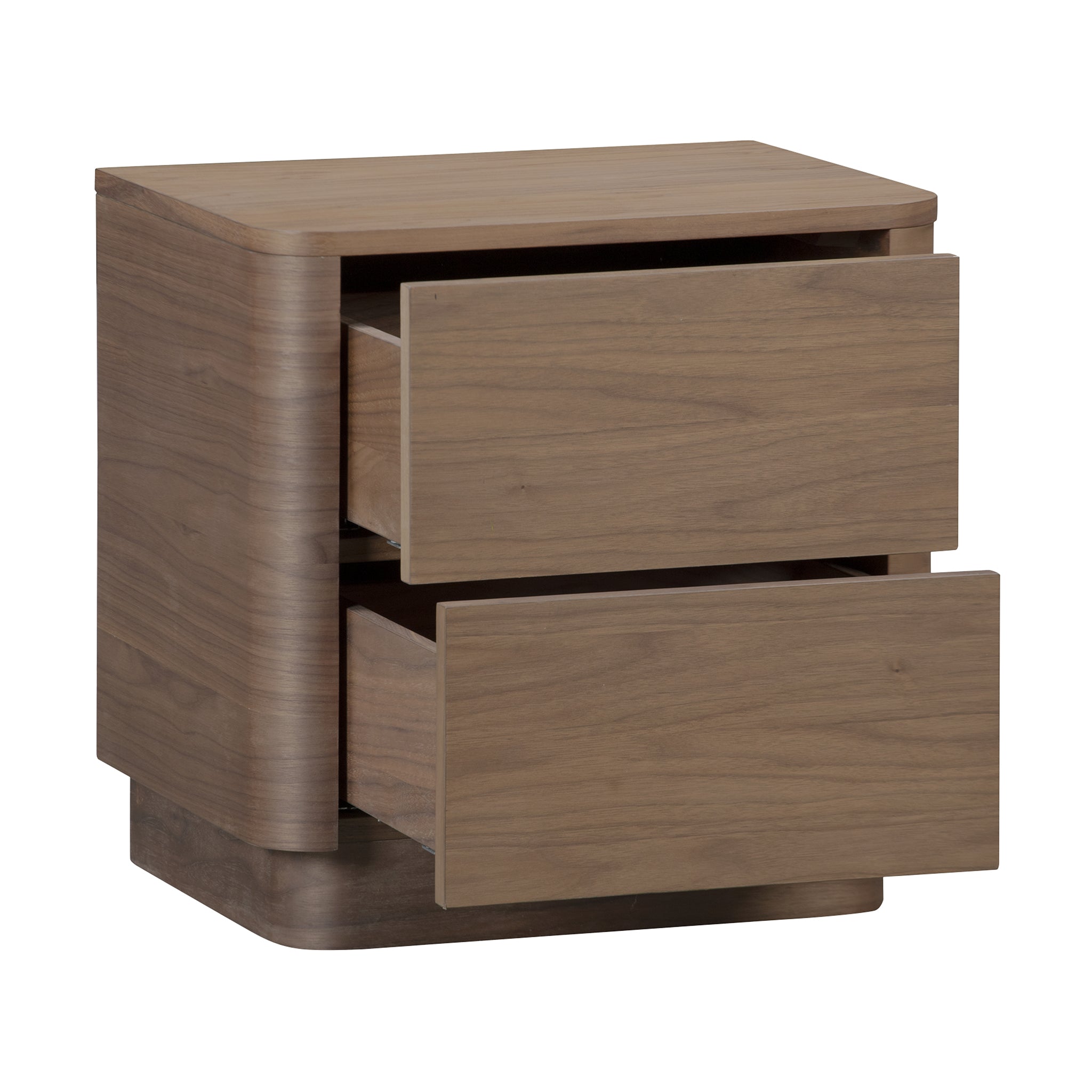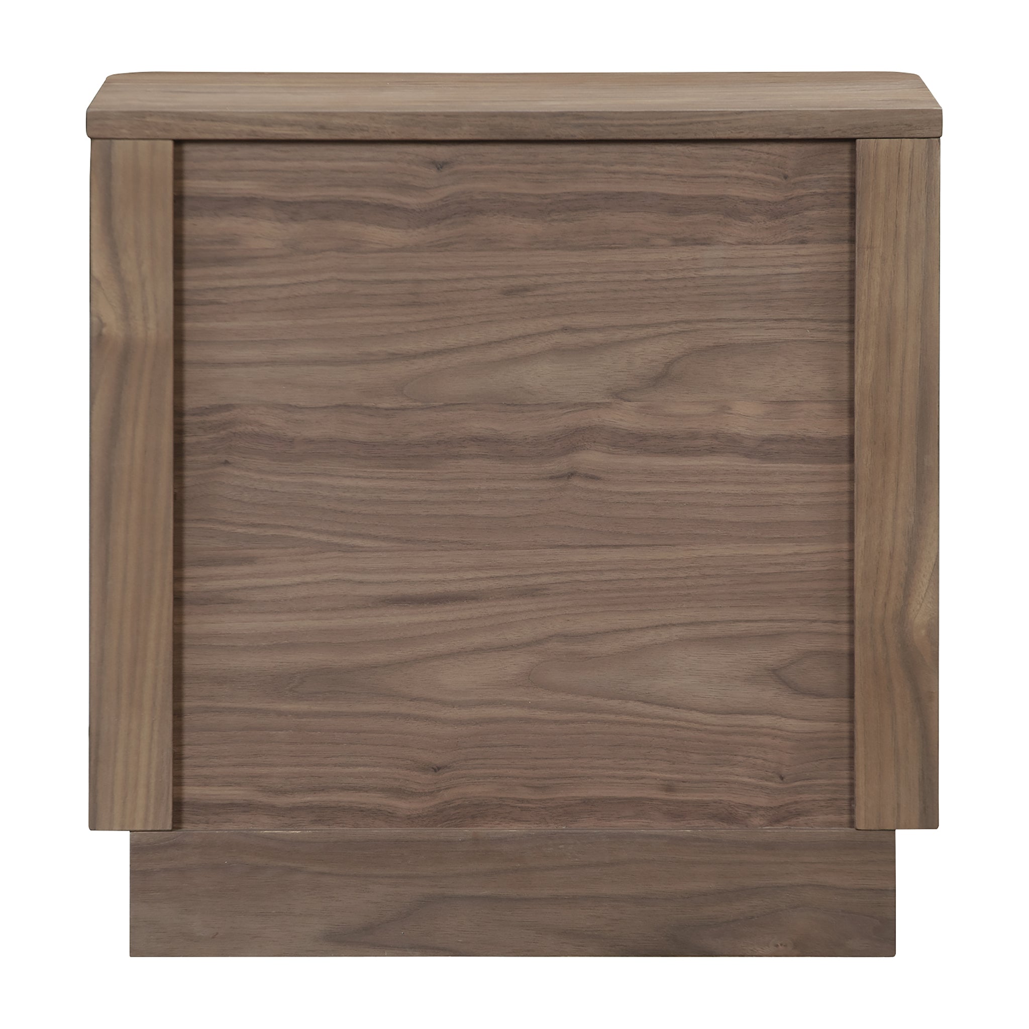 Natural allure meets minimalist design. The Colton tall nightstand celebrates the captivating tones of natural wood grain, seamlessly integrated into a soothing design, embracing natural beauty and character. This tall nightstand boasts gently rounded corners and two large, push to open, smoothly gliding drawers that reveal generous storage space while embracing walnut's natural beauty and character.