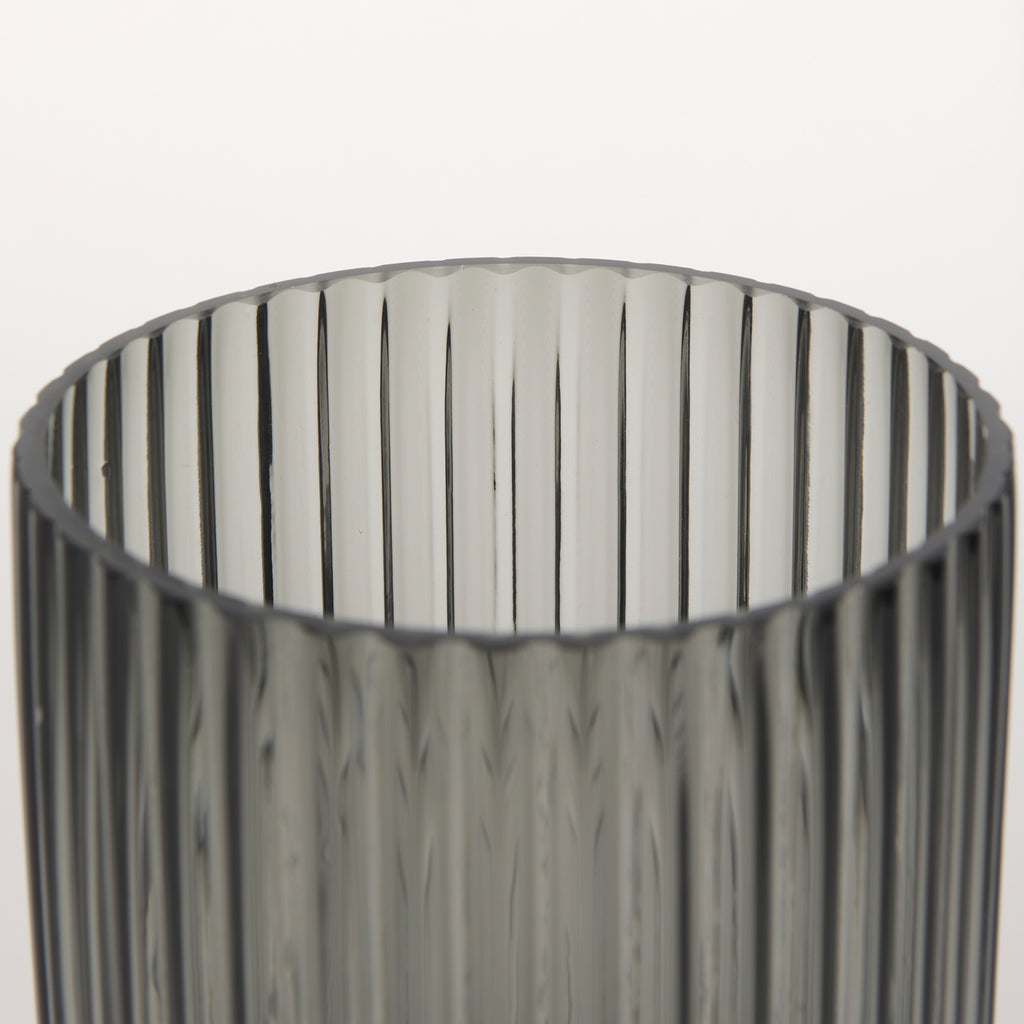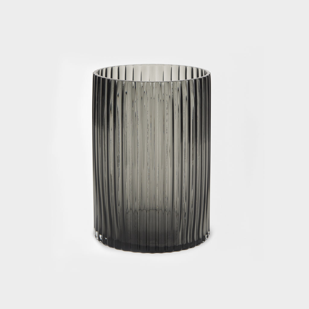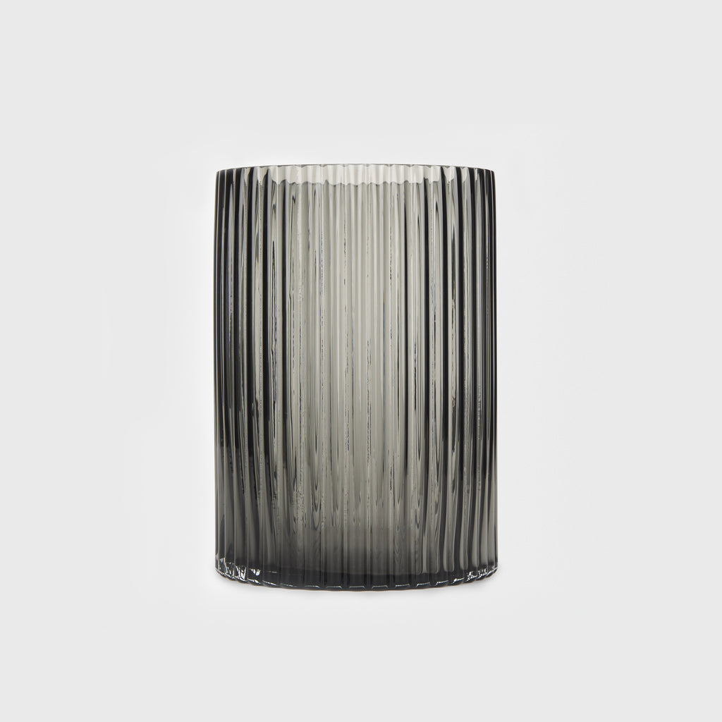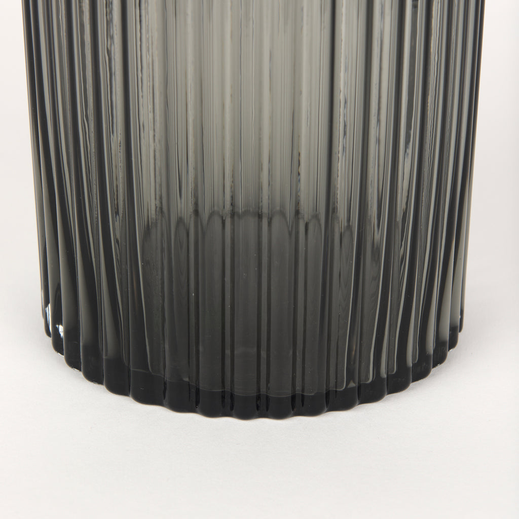 Whether your home design is modern or classic, our Davina Short Smoky Glass Vase is the perfect decorative addition. This moody piece of decor adds an air of mystery and allure to any setting, with its translucent smoky black hue and ribbed glass. It also showcases a fluted textured finish, giving it both tactile and visual appeal and making it a statement piece on its own. The Davina Smoky Glass Vase will infuse your space with a touch of intrigue and style, no matter which room in the house you place it.