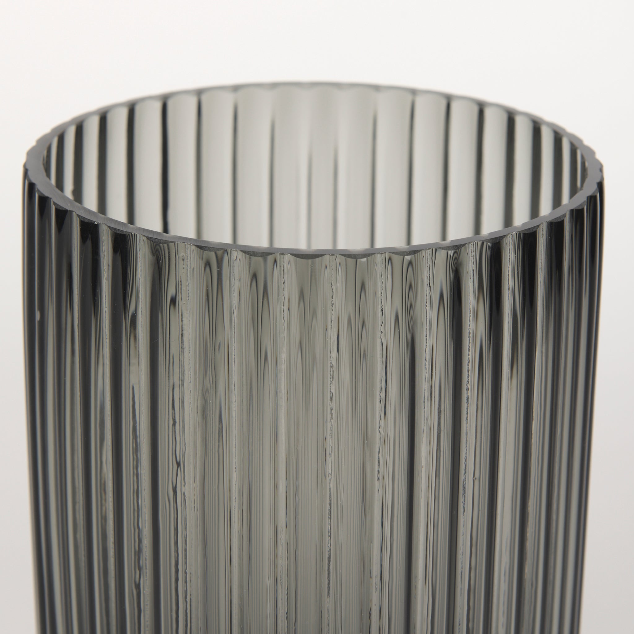 Whether your home design is modern or classic, our Davina Short Smoky Glass Vase is the perfect decorative addition. This moody piece of decor adds an air of mystery and allure to any setting, with its translucent smoky black hue and ribbed glass. It also showcases a fluted textured finish, giving it both tactile and visual appeal and making it a statement piece on its own. The Davina Smoky Glass Vase will infuse your space with a touch of intrigue and style, no matter which room in the house you place it.