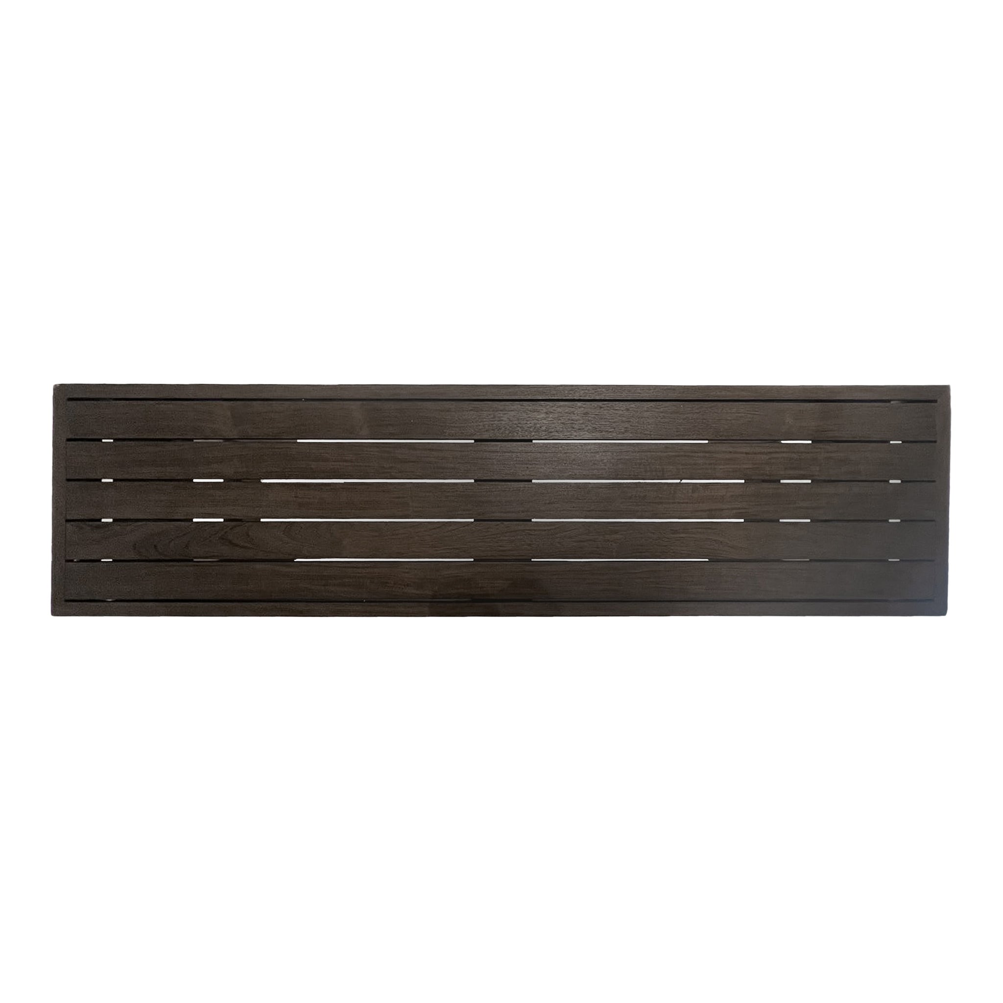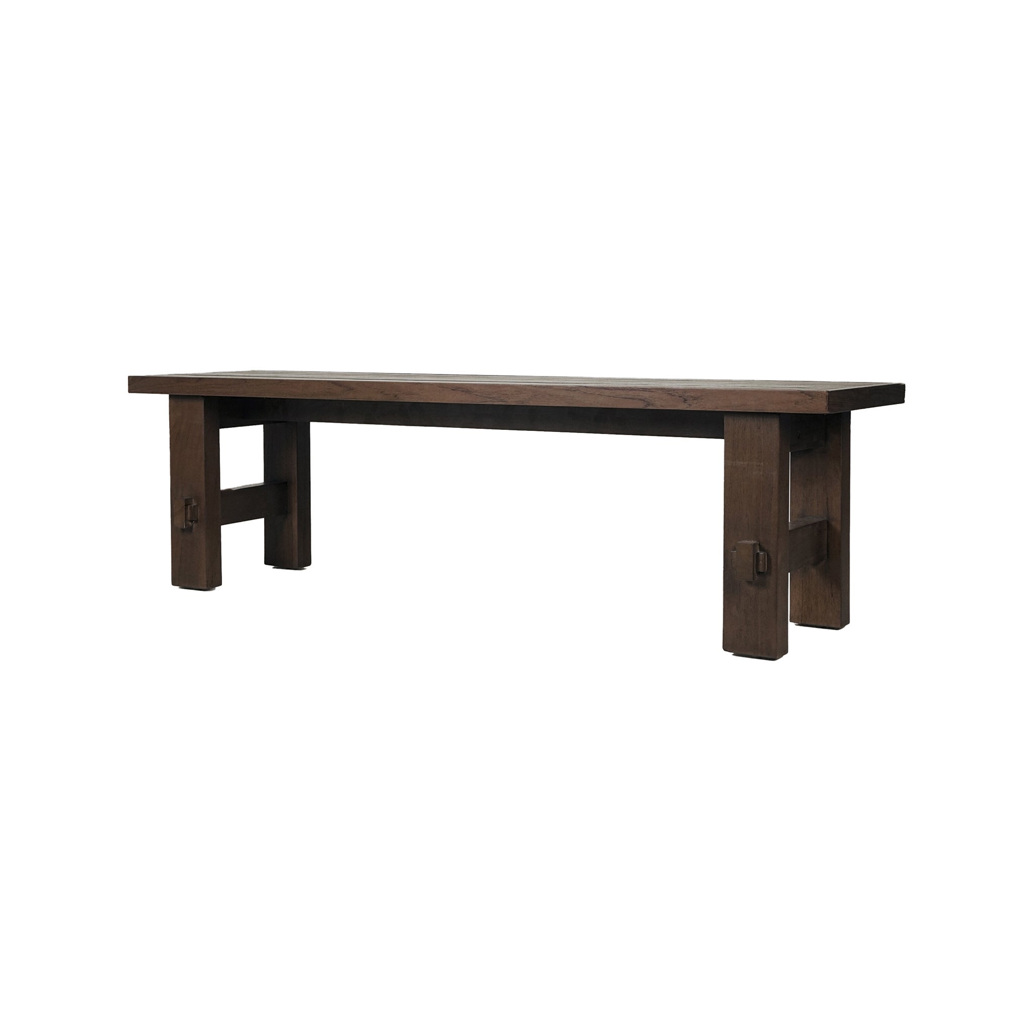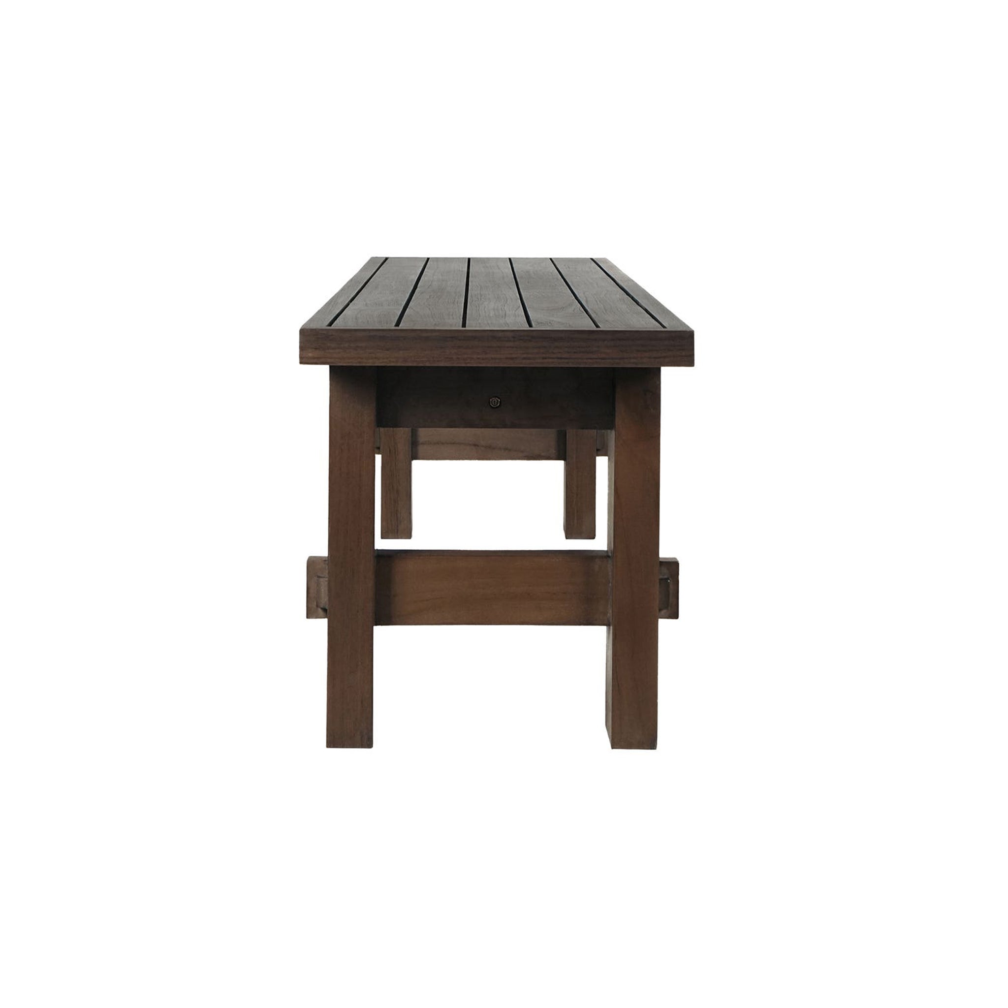 The Emilio outdoor dining bench embraces traditional charm to create an outdoor sanctuary. This FSC-certified solid teak bench features a slatted top with stretchers and joinery detailing, creating a classic look with refined appeal. The brown finish adds warmth, while its durable and weather-resistant design provides comfortable seating for outdoor gatherings and everyday use.