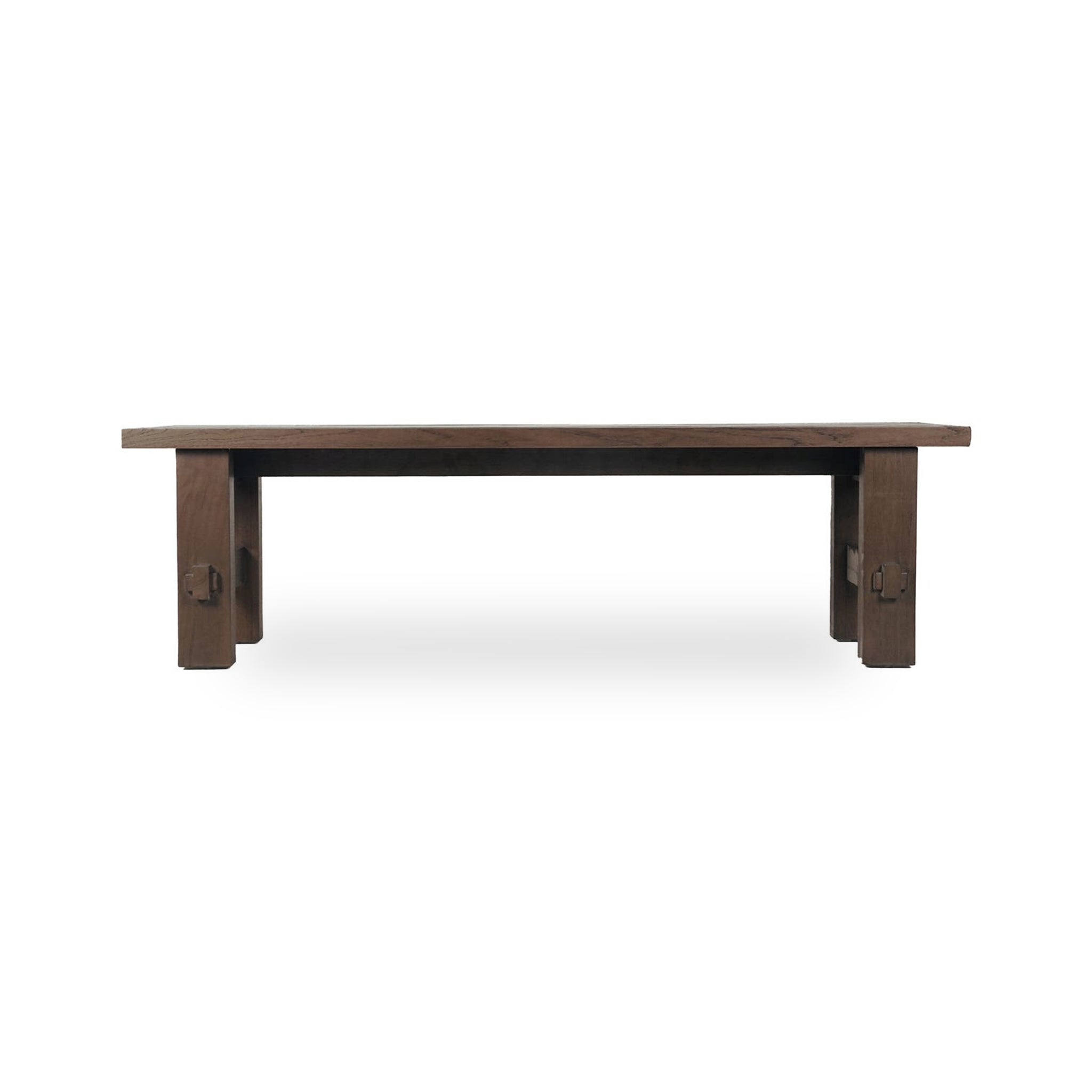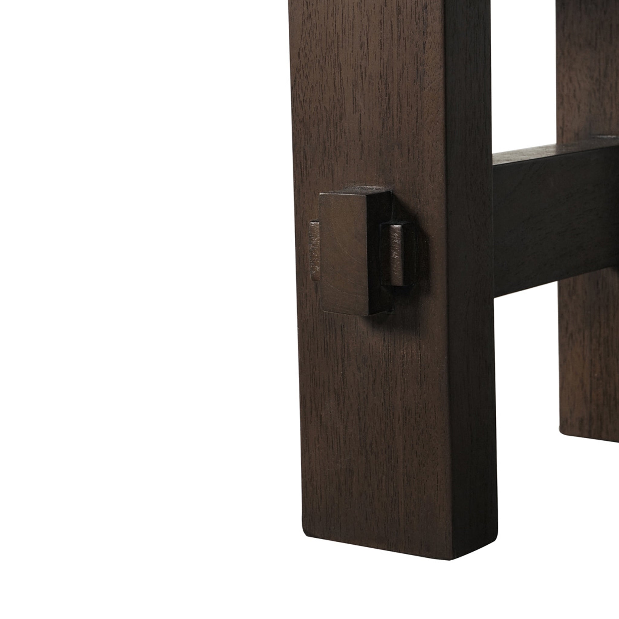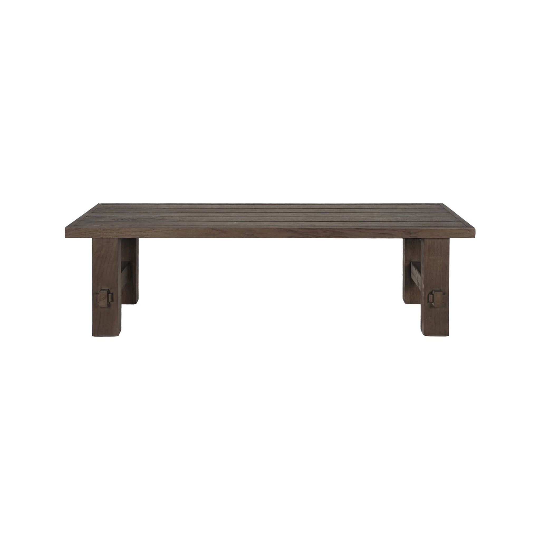 The Emilio outdoor dining bench embraces traditional charm to create an outdoor sanctuary. This FSC-certified solid teak bench features a slatted top with stretchers and joinery detailing, creating a classic look with refined appeal. The brown finish adds warmth, while its durable and weather-resistant design provides comfortable seating for outdoor gatherings and everyday use.