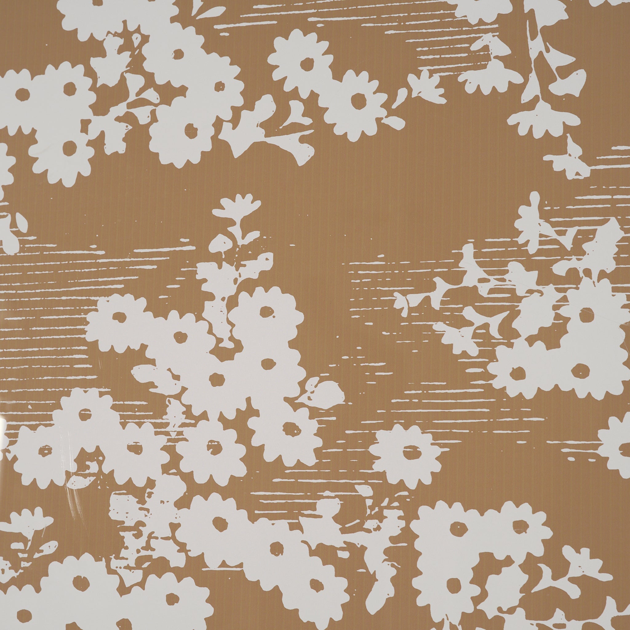 Embrace the understated beauty of nature with this elegantly framed art print. Delicate white blossoms and foliage form a captivating repeating pattern against a warm, golden-brown background, beautifully detailed. This chic, graphic piece offers a sophisticated blend of scientific precision and modern design, bringing a serene and stylish botanical accent to any wall.