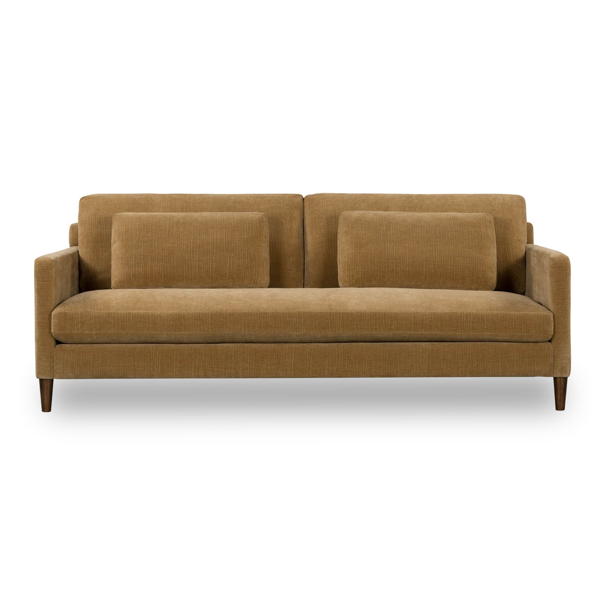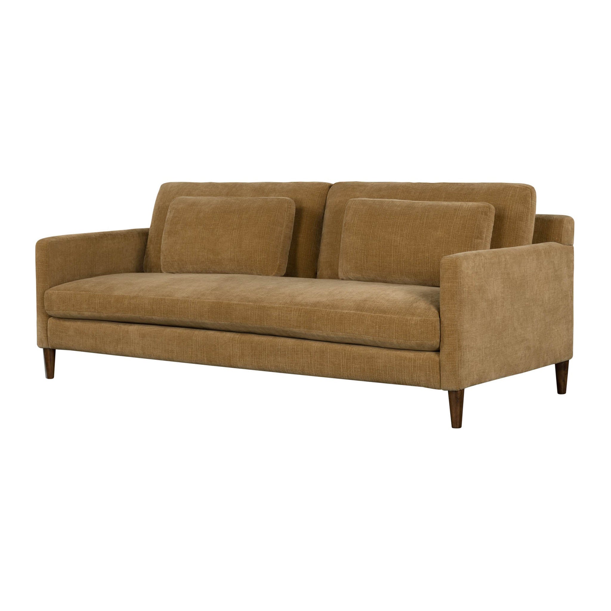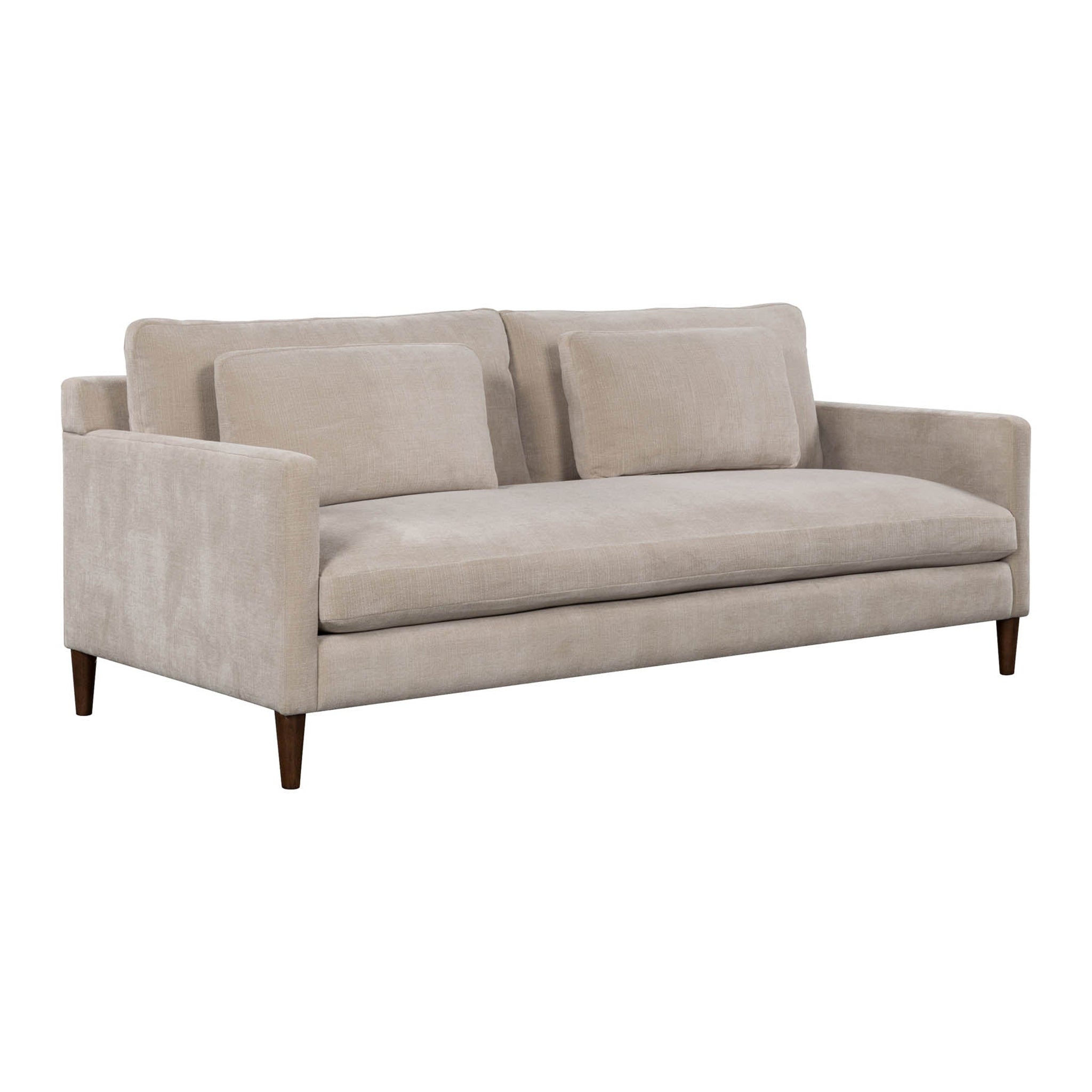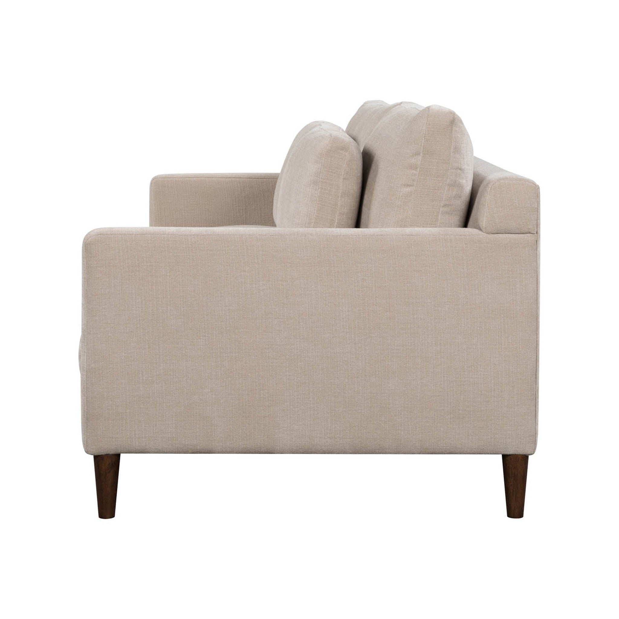 The Gessica Sofa offers soft comfort with cushions filled with foam, feathers, and fiber. Its back cushions use a cozy mix of feathers and fiber. It is wrapped in smooth polyester fabric and supported by strong rubberwood legs. This sofa offers lasting comfort and effortless style to your home.