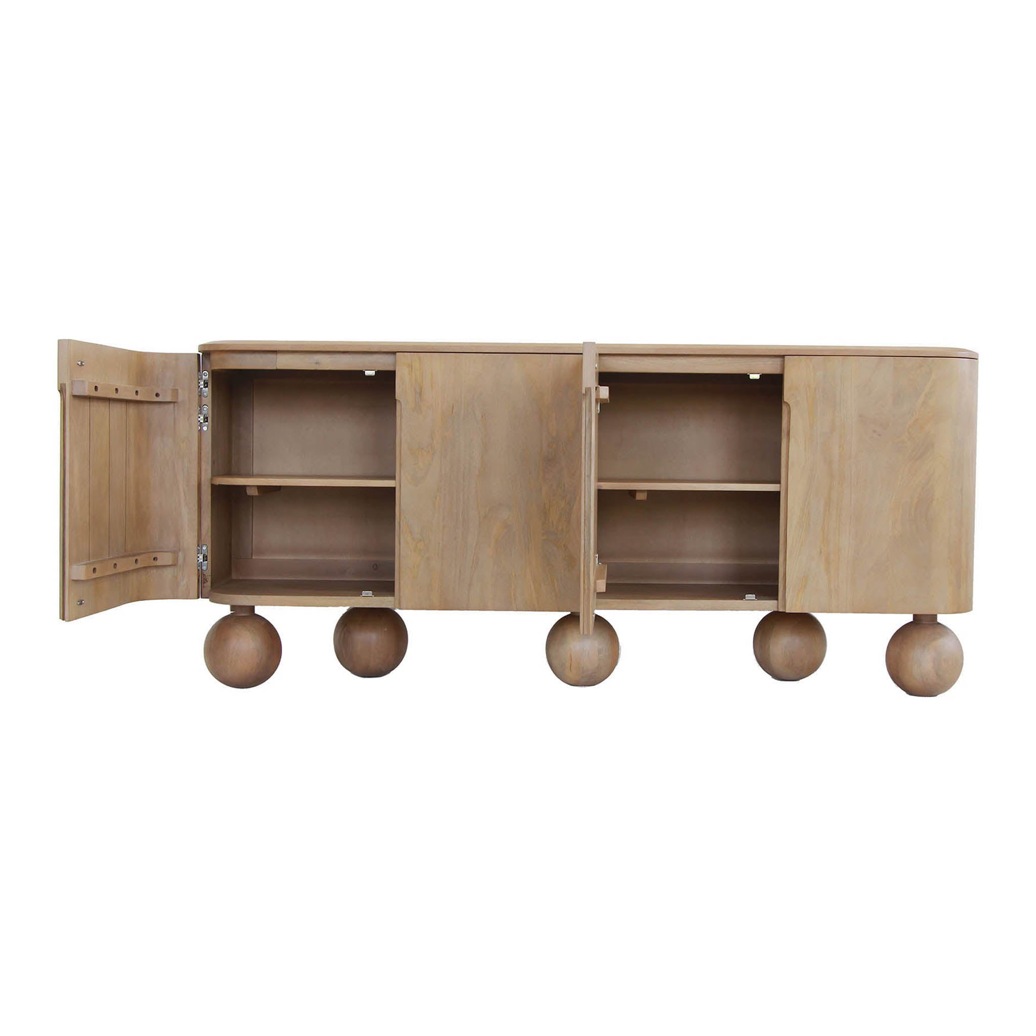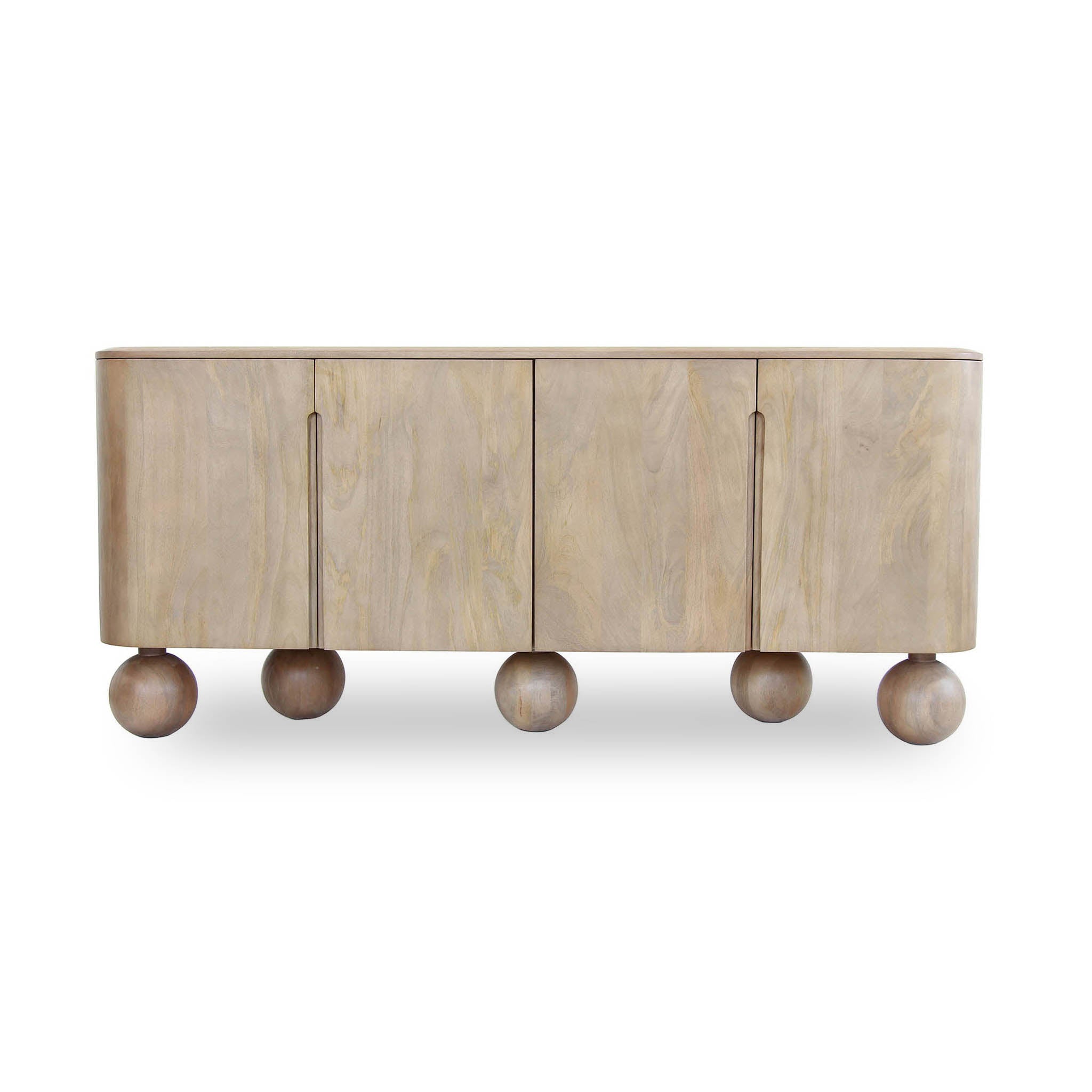 With its solid mango wood build and eye-catching sphere legs, the Giulia Sideboard is versatile. Its smooth surfaces, curved edges make it a stylish addition to any room. The adjustable shelves offer flexible storage, ensuring it can adapt to your changing needs and decor styles.