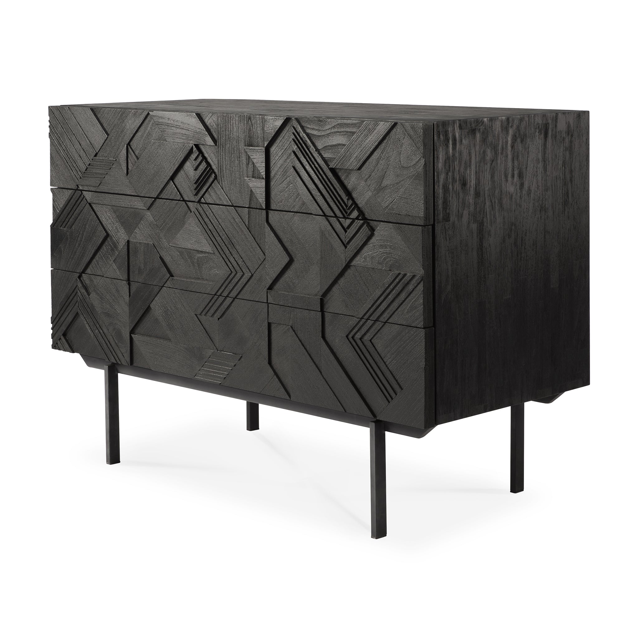 Graphic 3 Drawers Dresser in Varnished Teak Black