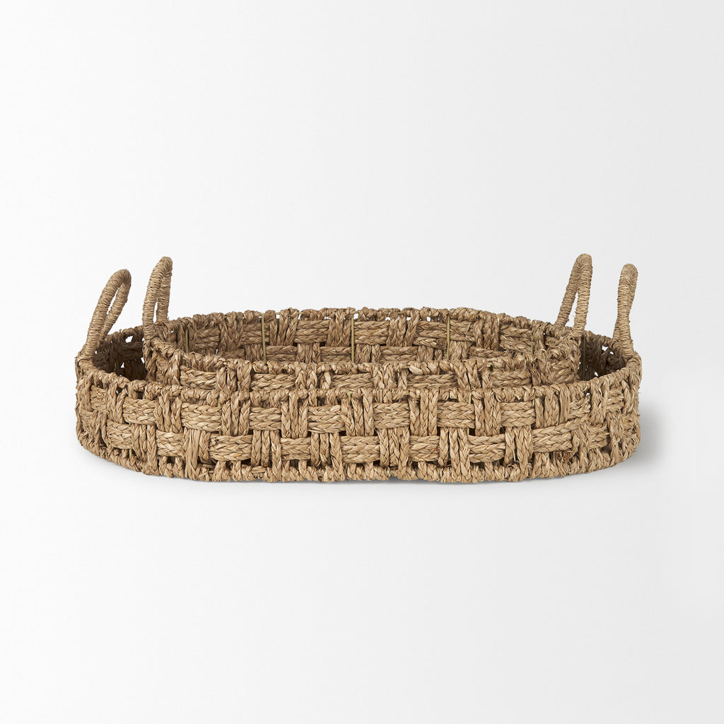 Your decor can be both beautiful and functional with the versatile design of our set of 2 Hannah Large Basketweave Trays. Made from natural seagrass, the Hannah trays showcase an intricate oval design with a beautiful basketweave texture. These generously sized trays feature convenient loop handles, adding a touch of practicality and enhancing their visual appeal. Perfect for serving breakfast in bed, organizing your essentials, or displaying decor items, these trays offer an elegant solution and charming addition to any room.