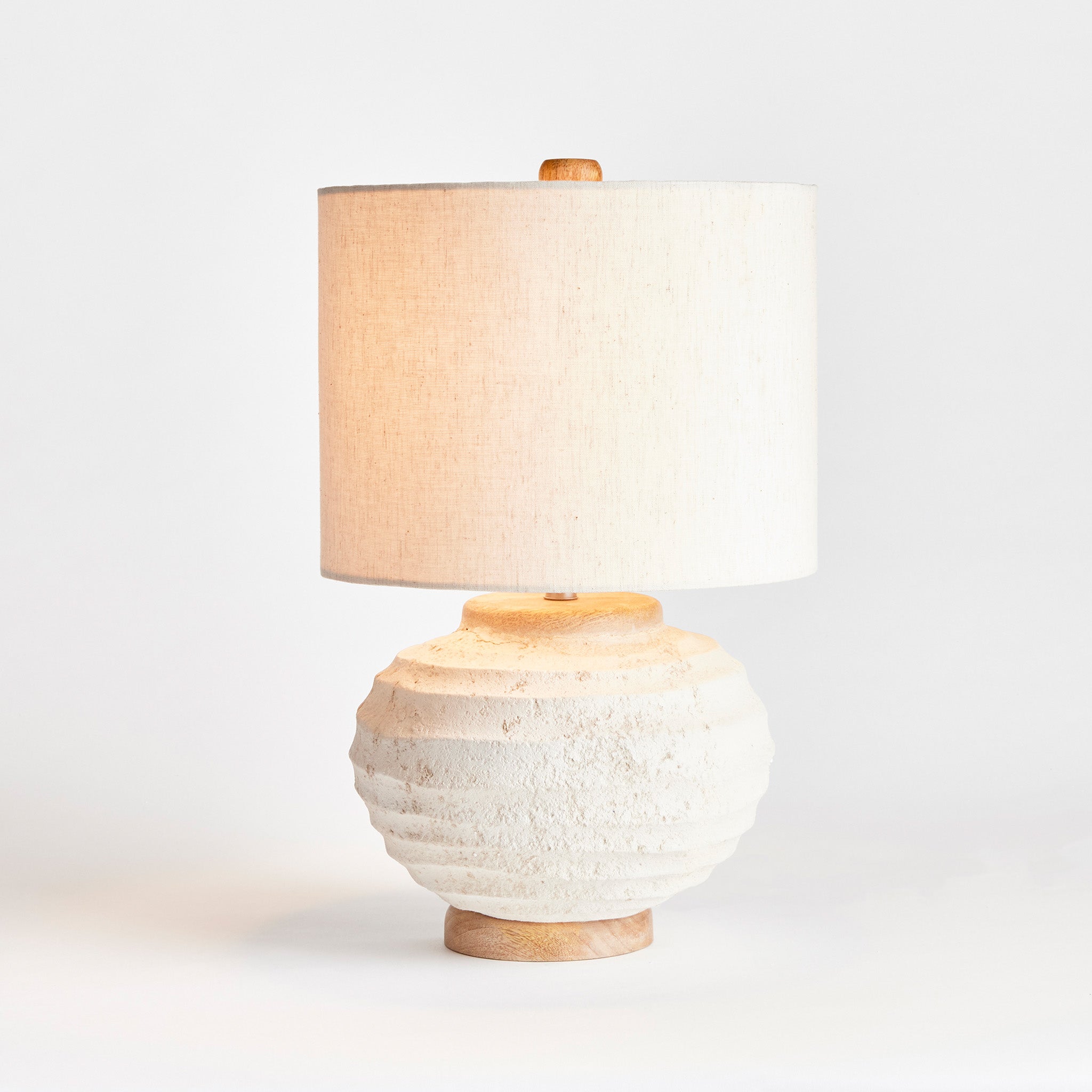 A ceramic base designed with handmade horizontal ribbing, this lamp is made with an artisan feel. Topped off with a linen shade, it is a casual accent for the home or office. Max Wattage: 100W