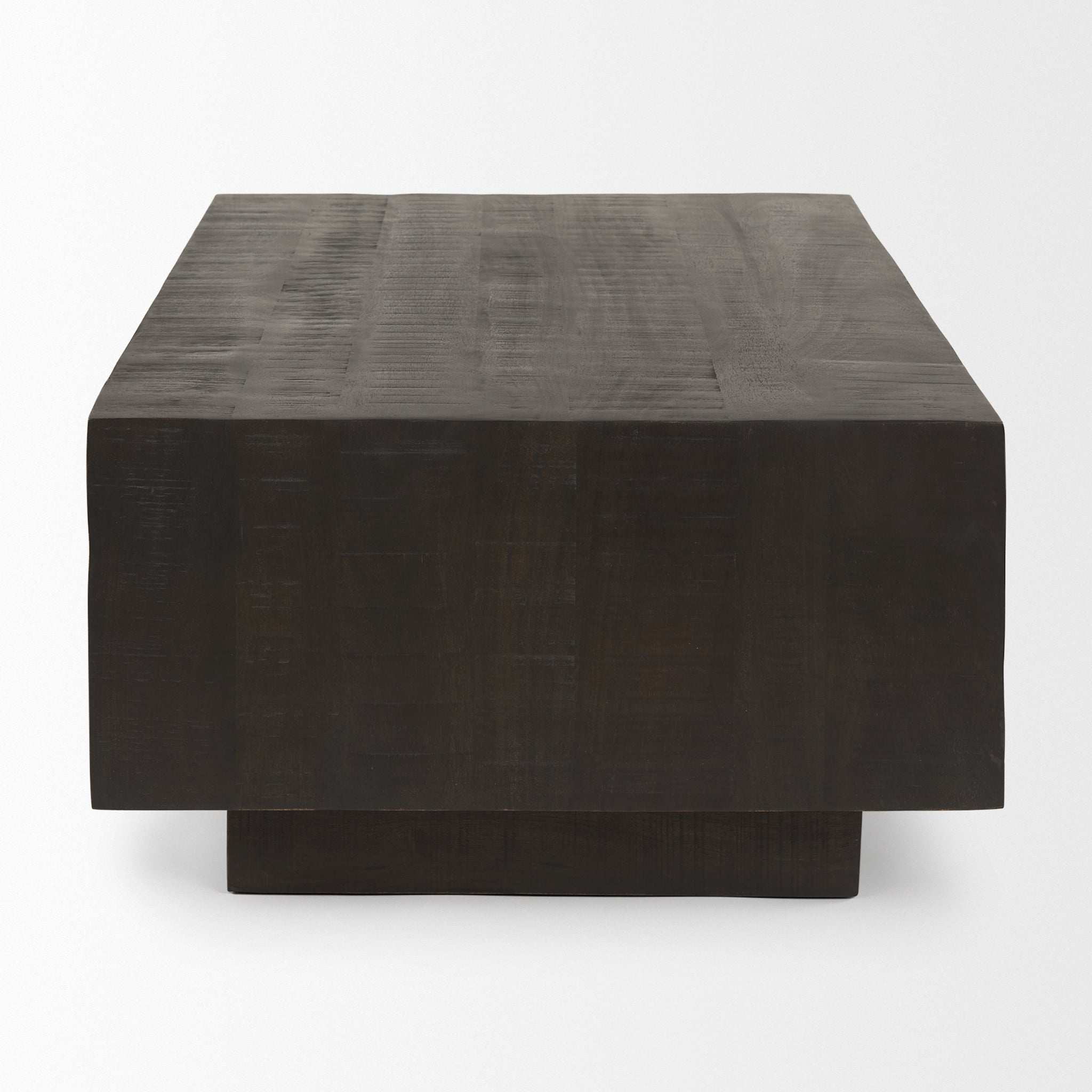 Your coffee table needs to complement and amplify your living room décor, but it also must provide enough space for it to be functional. Our Harlow Square Coffee Table in luxurious Dark Wood checks every box and offers you a rustic, minimalist design that gives you ample surface space while creating a floating illusion. This effect comes from the recessed based that supports a wide square box-like top, all finished in a deep stain that displays a natural, distressed texture. This is a stunning coffee table to be the centerpiece of your living room, so give your space a makeover with our premium Harlow collection.