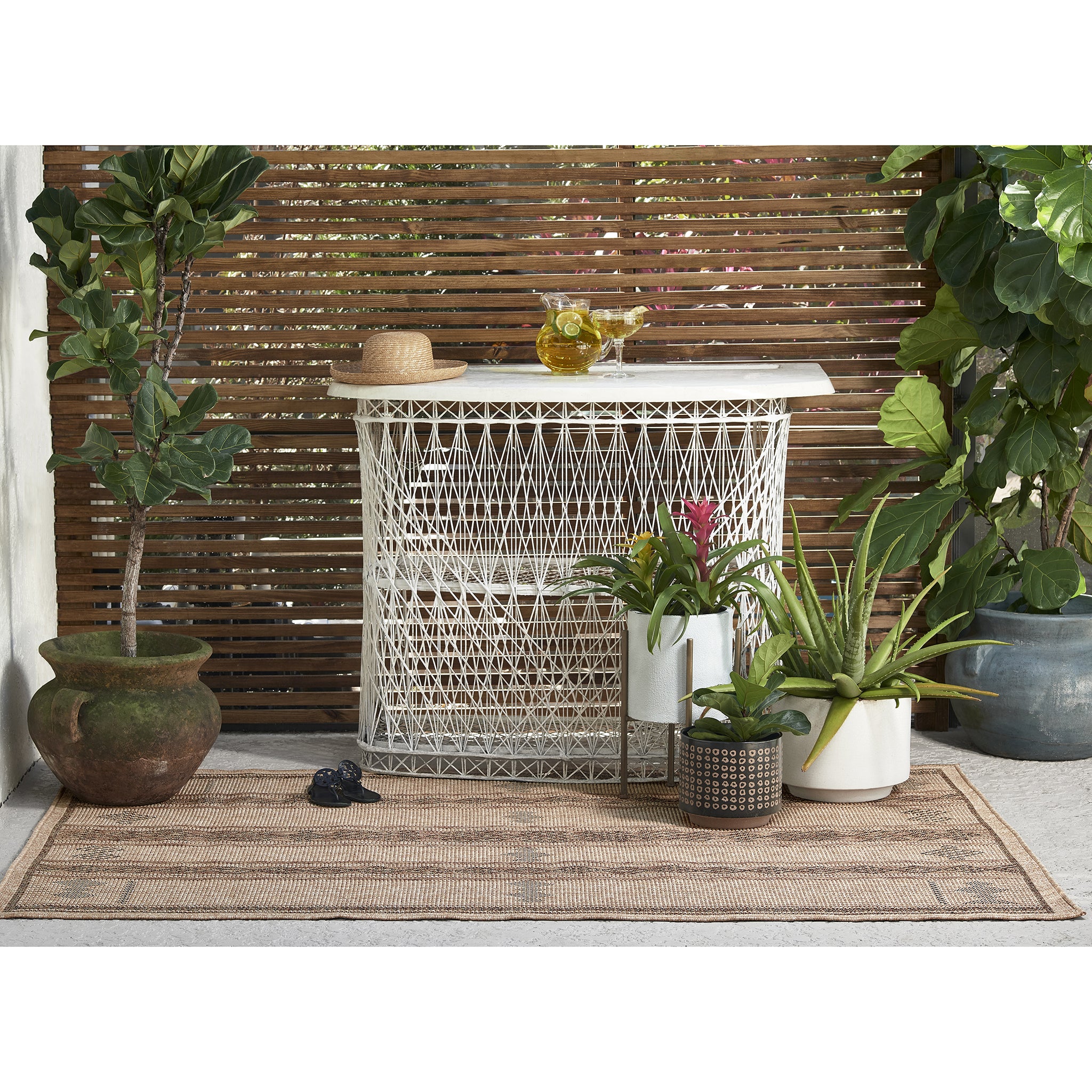 A color palette of neutrals relies on texture to keep it feeling dynamic. The Helena Indoor/Outdoor Rug from Momeni Basics offers practical and versatile rug styles for the minimally inclined. With options ranging from a pair-it-with-anything blue or a tan and cream combo, the woven patterns always keep it interesting. Layer it with your home decor inside or outside and watch how it brings a depth and dimension to the space.