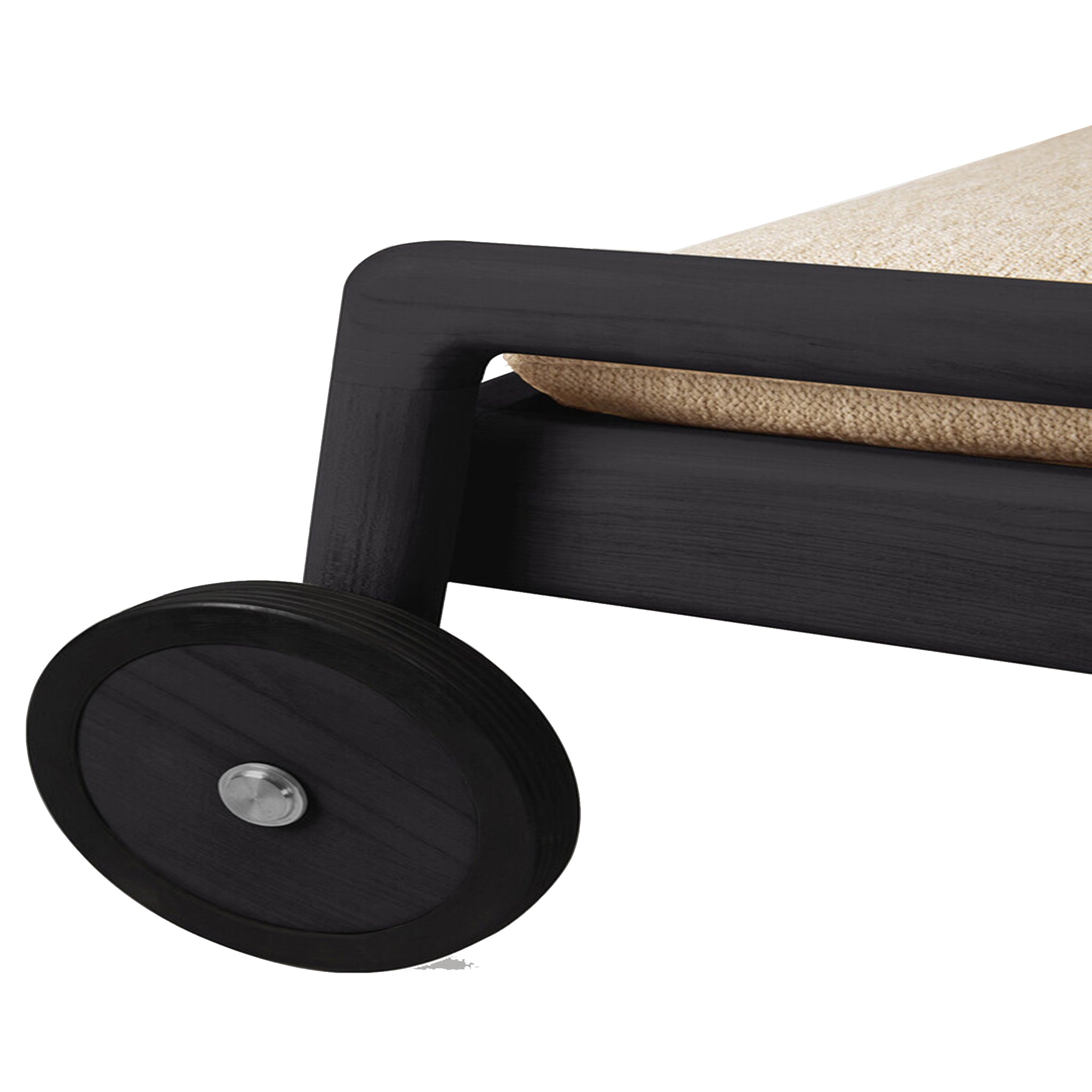 Jack Outdoor Thin Cushion Adjustable Lounger in Varnished Teak Black