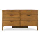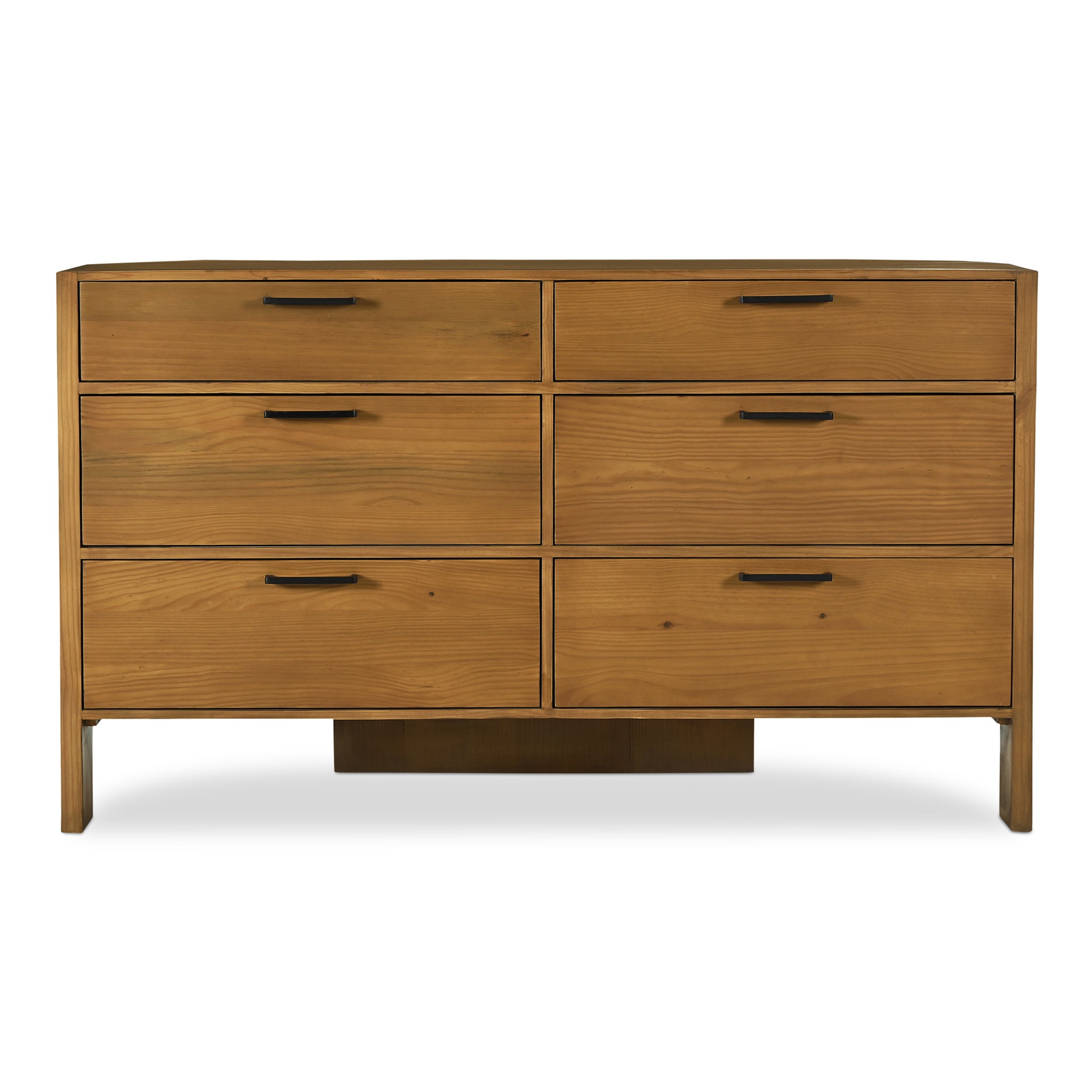 The Jeffrey 6 drawer dresser adds a fresh twist to mid-century and Scandinavian aesthetics with its unique three-legged design and gently curved back. Crafted from pine, it features visible joinery for a touch of artisanal charm, punctuating its floating silhouette. The dresser has 6 soft-close drawers and is finished on all sides, ensuring both function and versatility go along with its sleek, modern lines.
