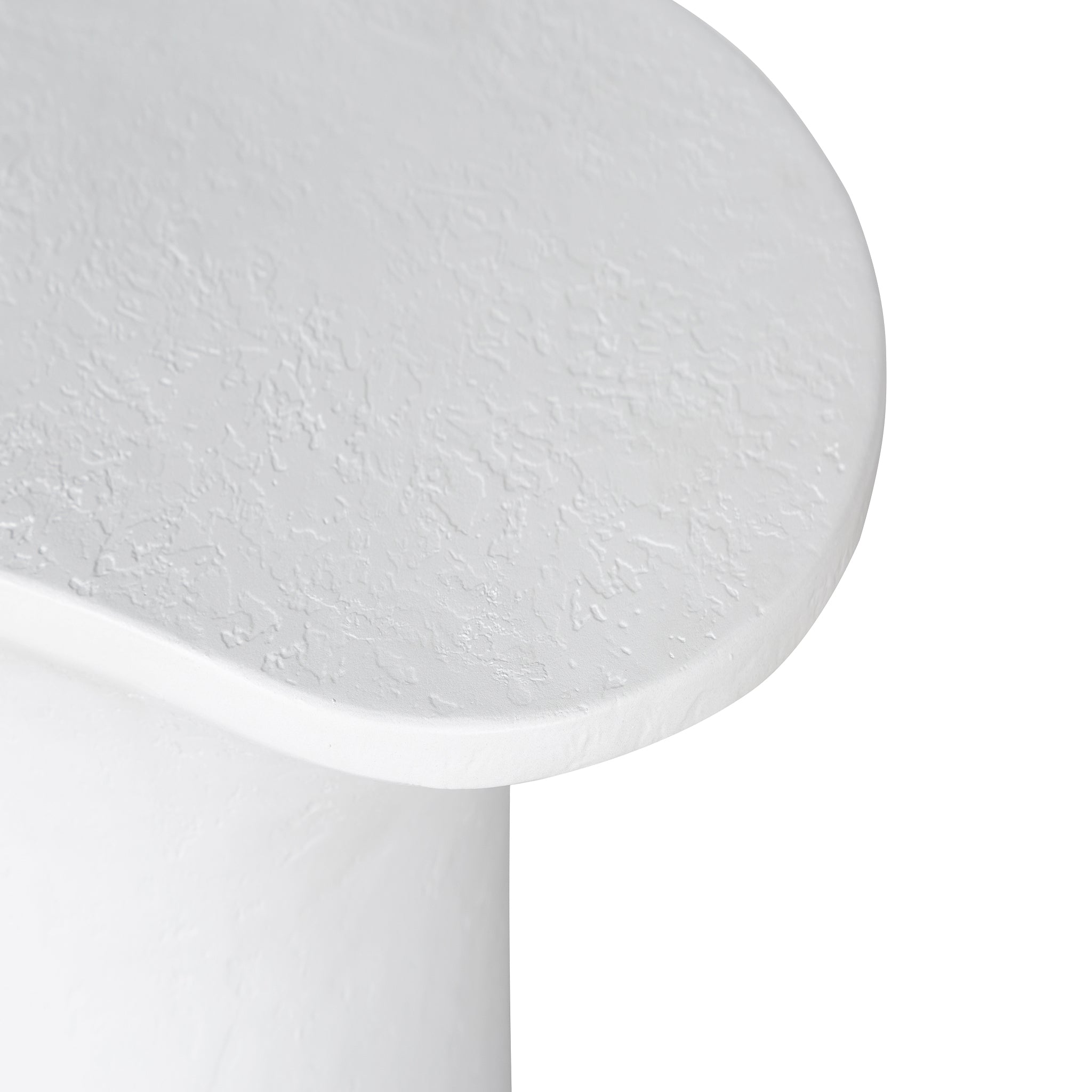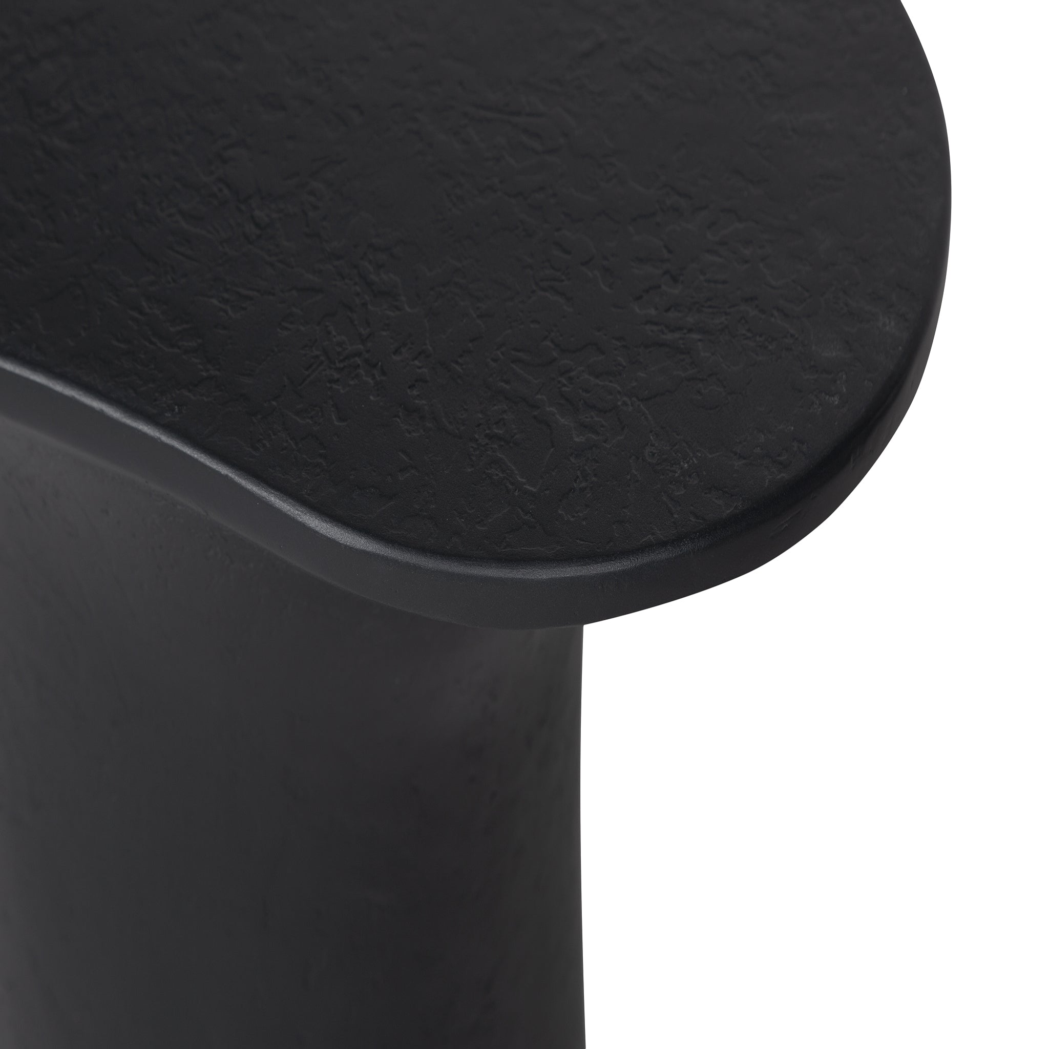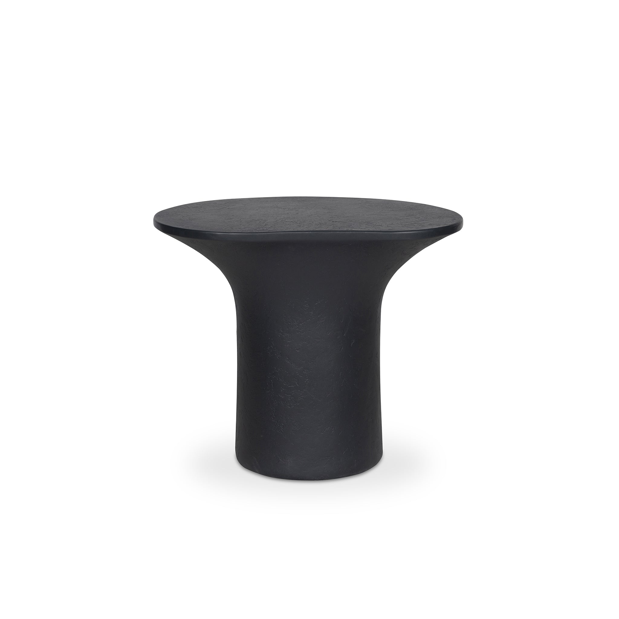 A bold blend of style and stability, the Kai outdoor accent table features a freeform top perfectly balanced upon a pedestal-style base for a modern yet grounded look. Crafted from glass fiber-reinforced Concrete that combines cement, glass fiber, and styrofoam for durability and lightness, its rough texture adds a layer of tactile interest, transforming its contemporary form into a centerpiece of conversation.