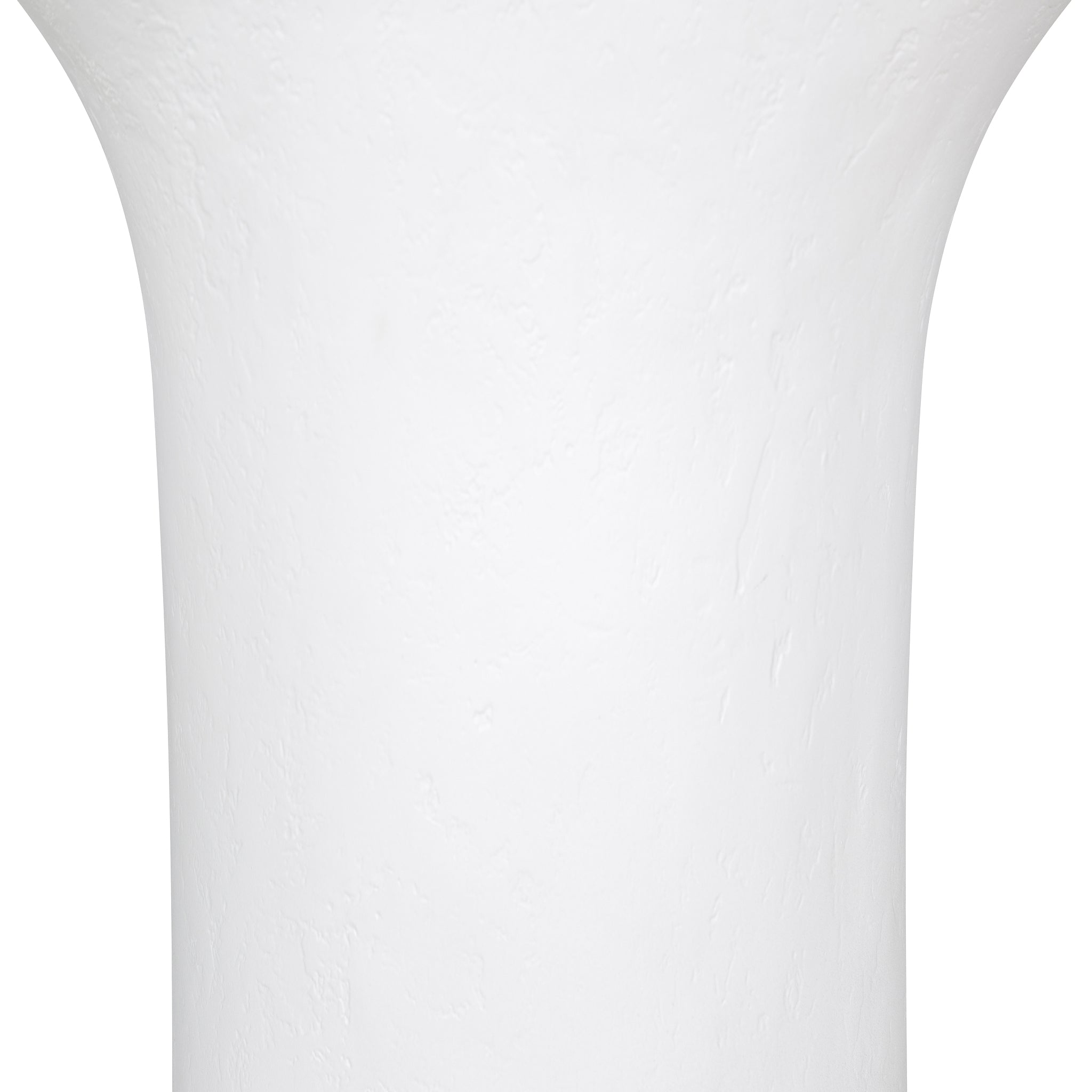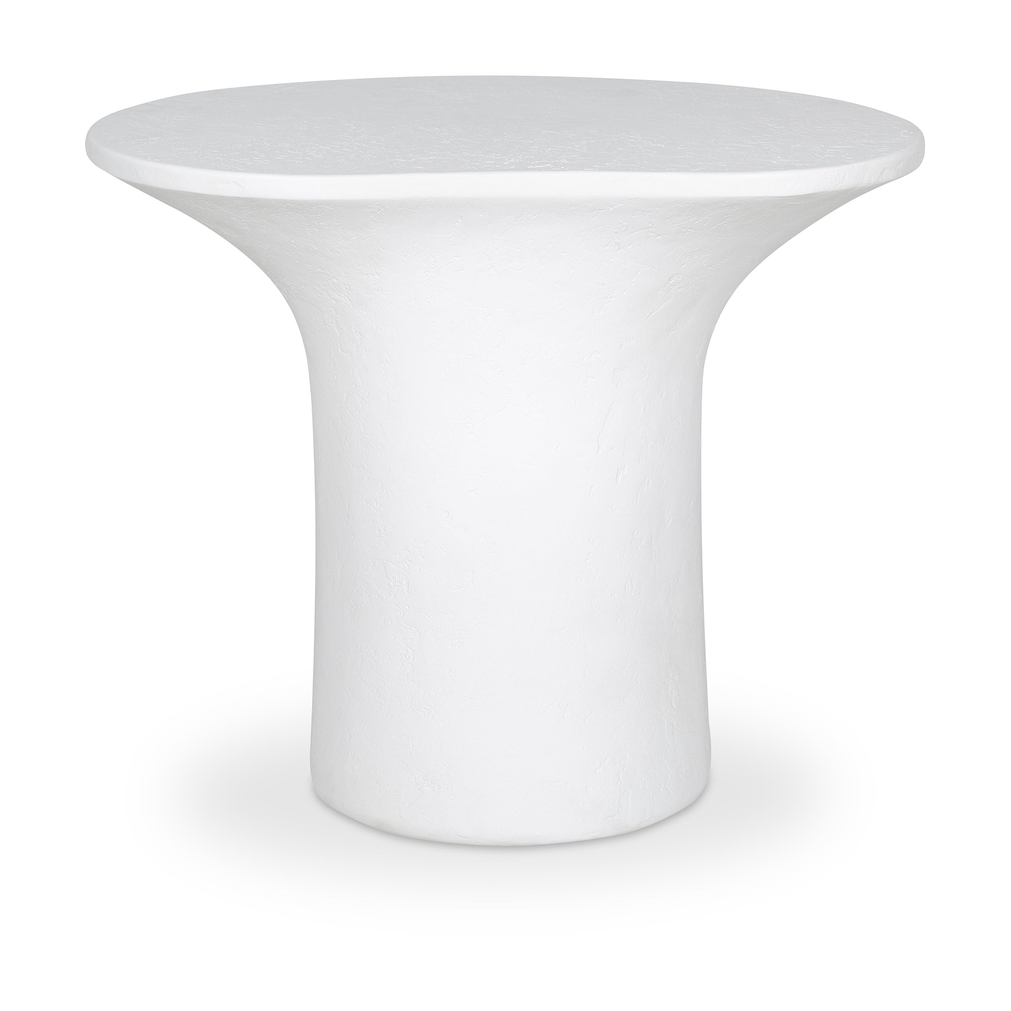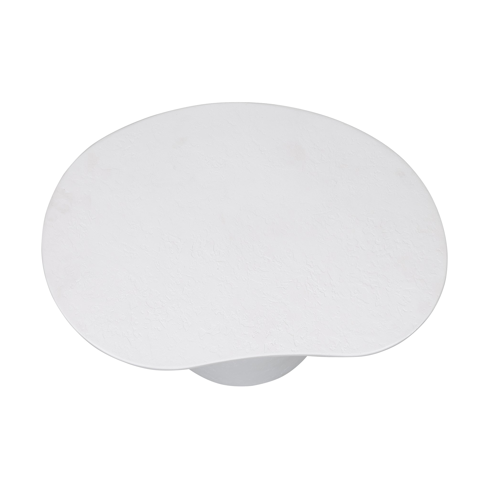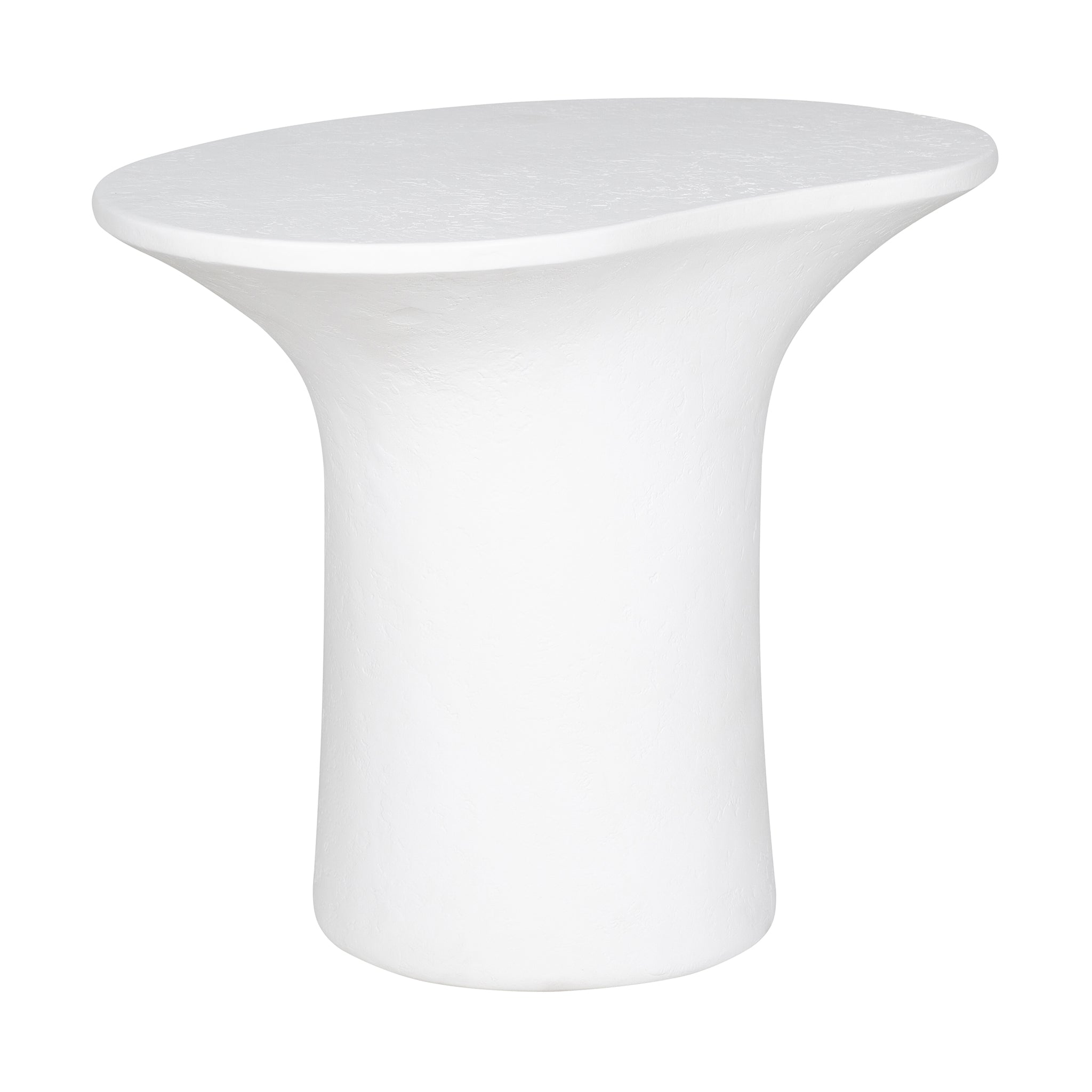 A bold blend of style and stability, the Kai outdoor accent table features a freeform top perfectly balanced upon a pedestal-style base for a modern yet grounded look. Crafted from glass fiber-reinforced Concrete that combines cement, glass fiber, and styrofoam for durability and lightness, its rough texture adds a layer of tactile interest, transforming its contemporary form into a centerpiece of conversation.