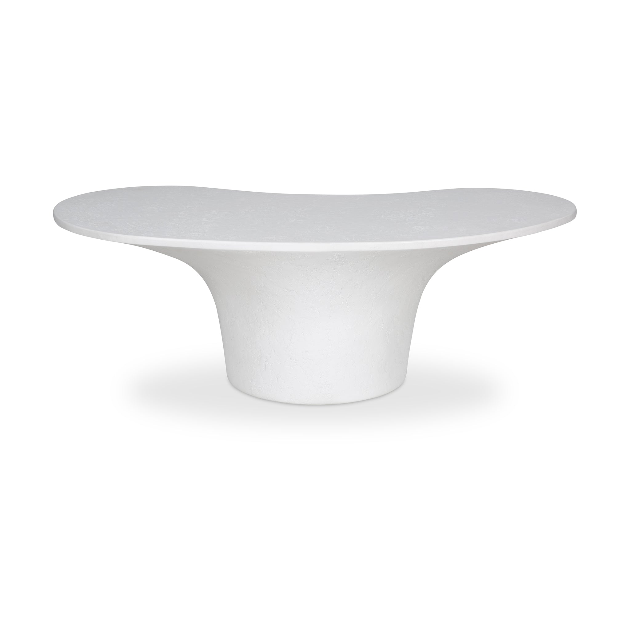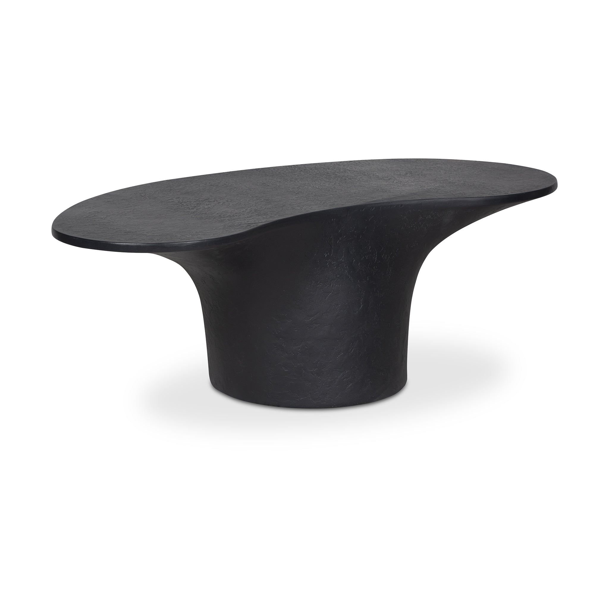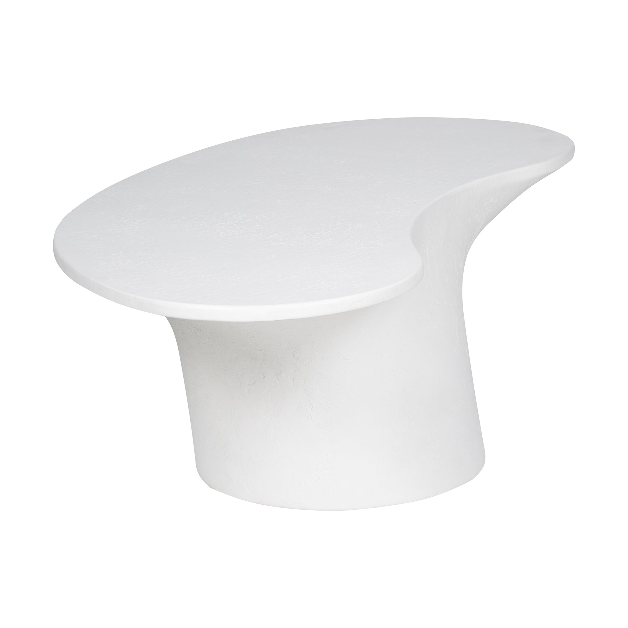 A bold blend of style and stability, the Kai outdoor coffee table features a freeform top perfectly balanced upon a pedestal-style base for a modern yet grounded look. Crafted from glass fiber-reinforced Concrete that combines cement, glass fiber, and Styrofoam for durability and lightness, its rough texture adds a layer of tactile interest, transforming its contemporary form into a centerpiece of conversation.