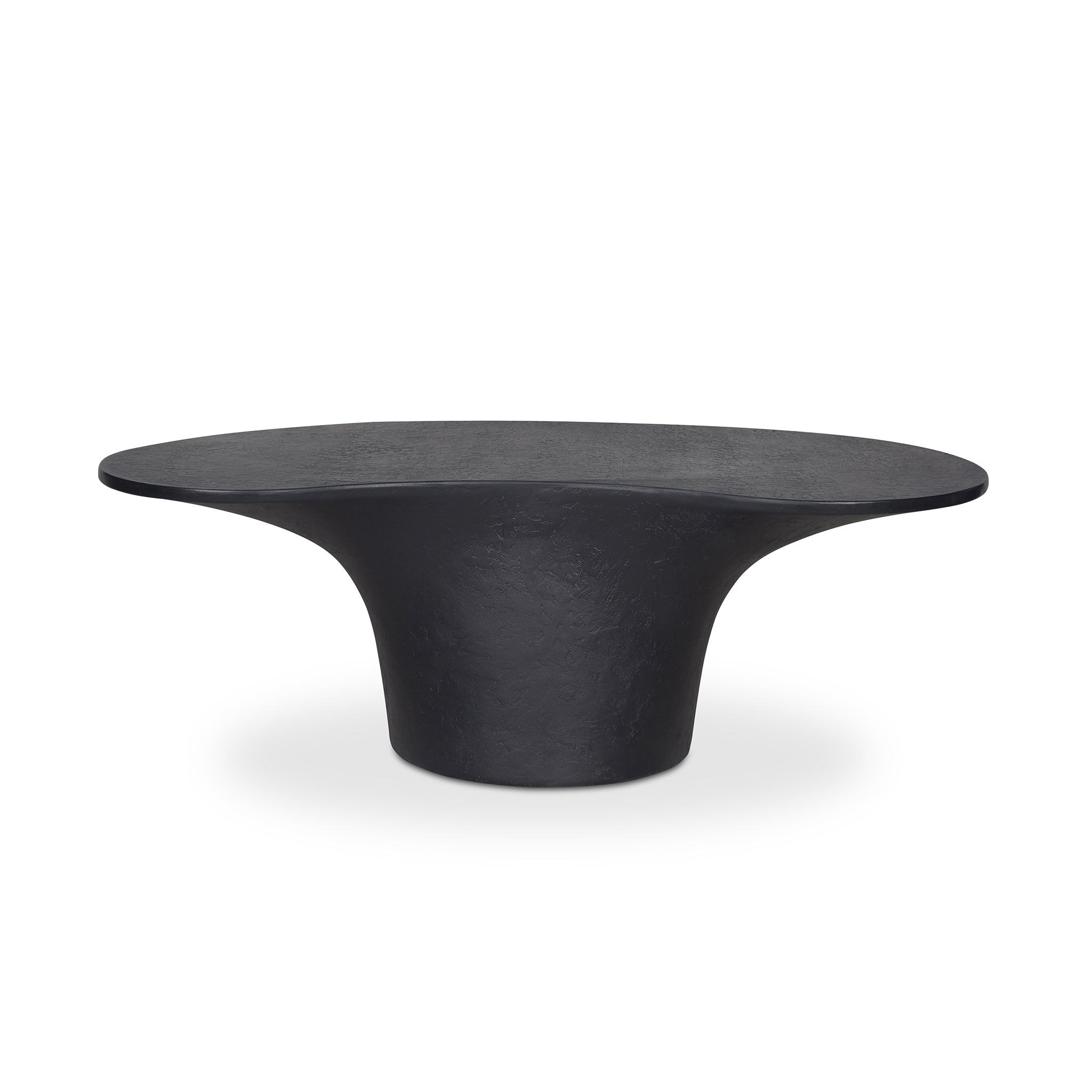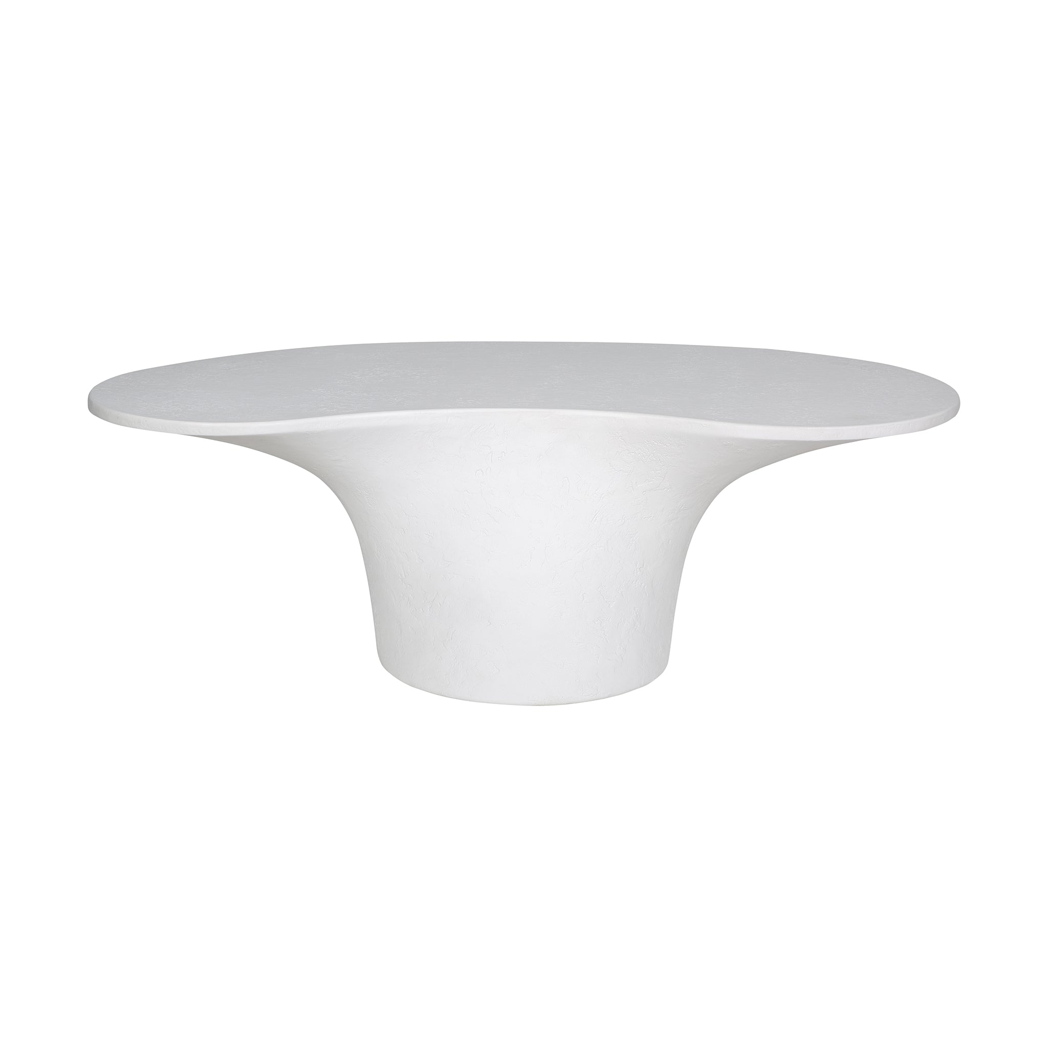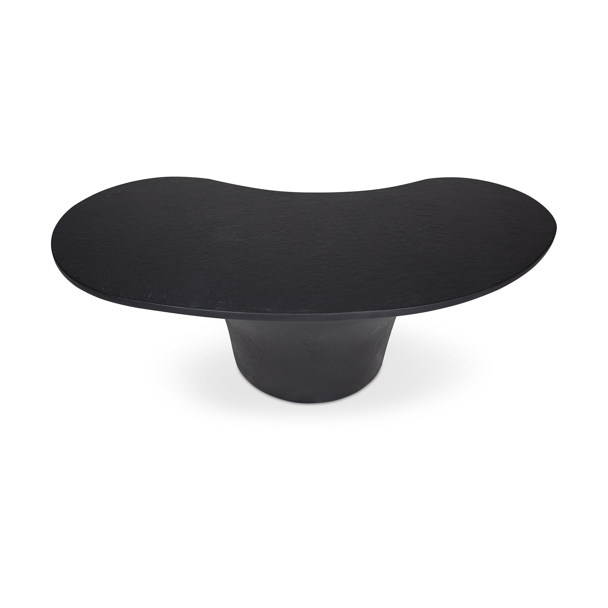 A bold blend of style and stability, the Kai outdoor coffee table features a freeform top perfectly balanced upon a pedestal-style base for a modern yet grounded look. Crafted from glass fiber-reinforced Concrete that combines cement, glass fiber, and Styrofoam for durability and lightness, its rough texture adds a layer of tactile interest, transforming its contemporary form into a centerpiece of conversation.