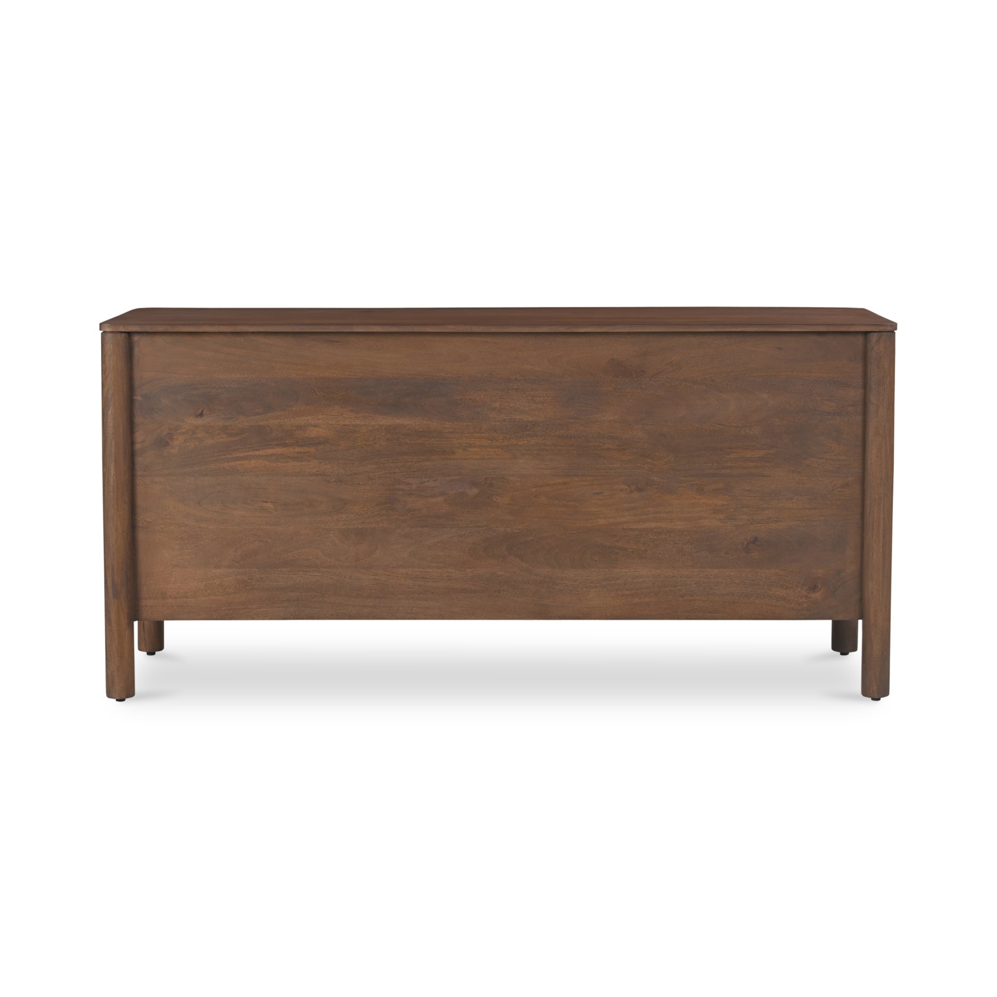 Modern aesthetics effortlessly blend with the refined simplicity of traditional Shaker design in the Lola desk. Meticulously crafted, its elegant form is defined by sleek, geometric curves that add a captivating touch of modernity. The post legs stand as pillars of strength, grounding the desk with their understated presence. A showcase of intricate scalloped edge details to the faces of the three drawers lends a timeless charm reminiscent of classical influences.