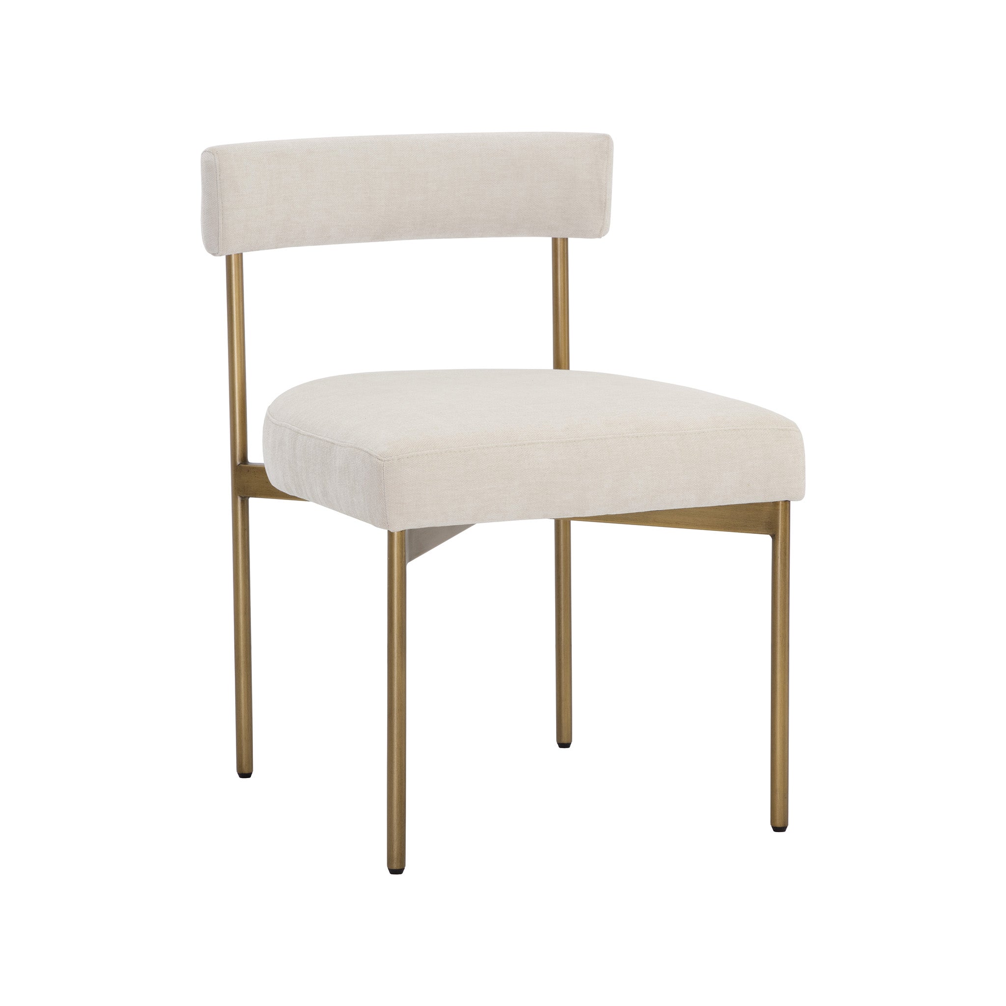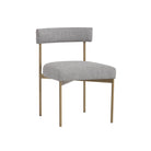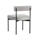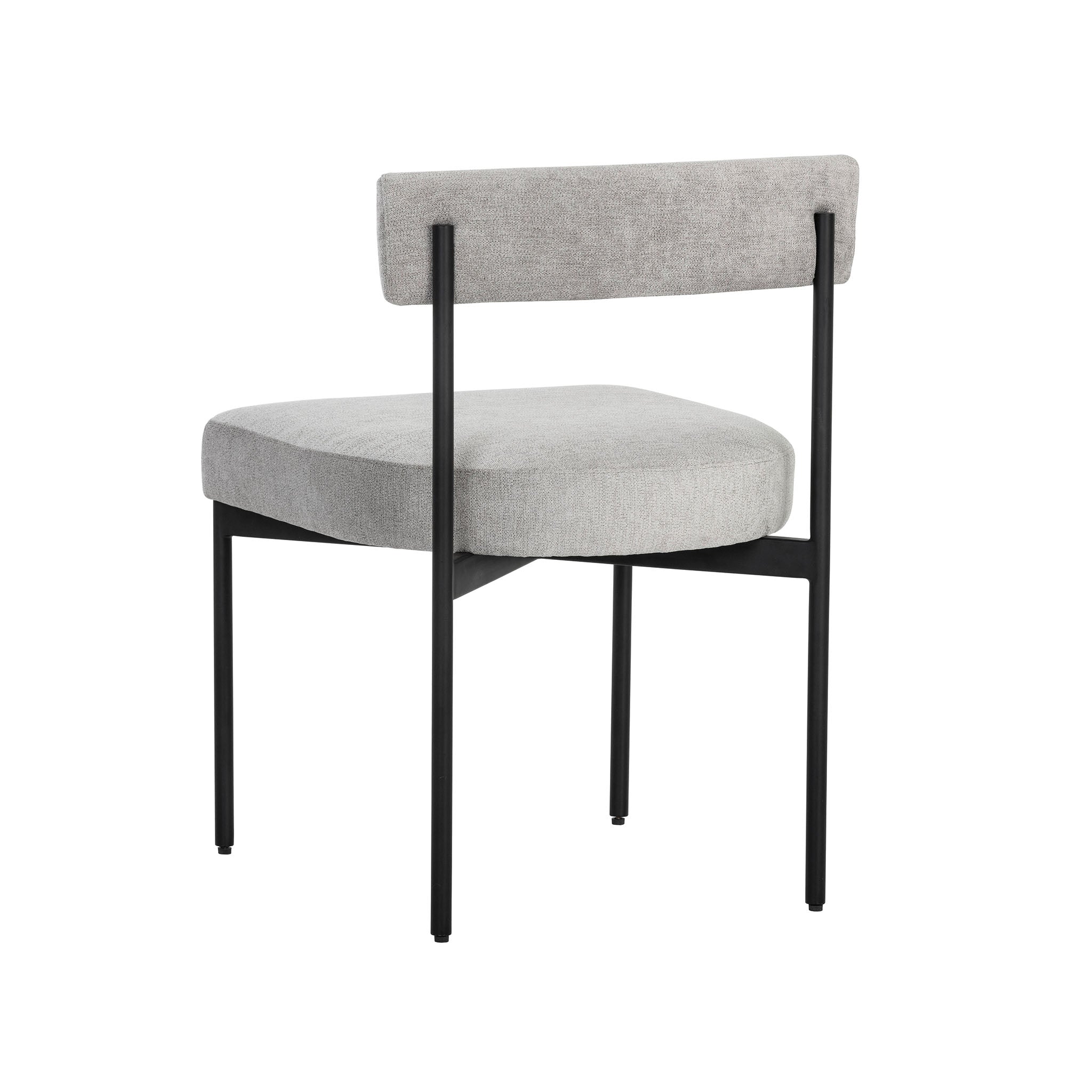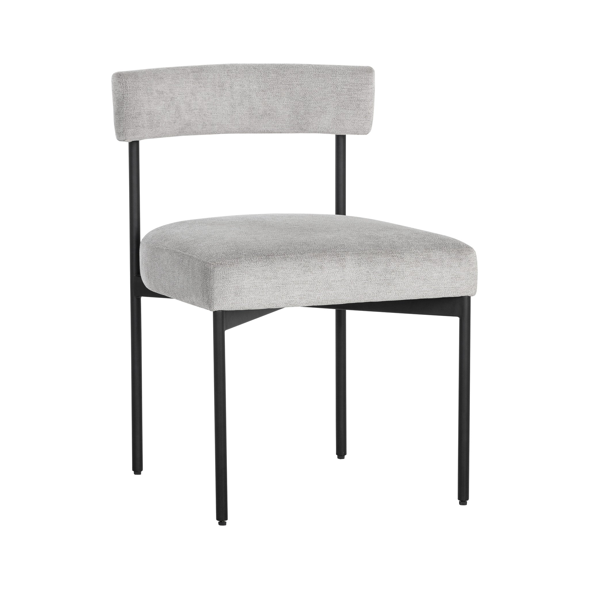 Exude modern style with this open back dining chair. Stocked in performance fabric with an black powder-coated steel frame. Performance fabric is moisture repellent, durable and easy to clean.