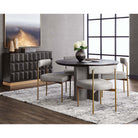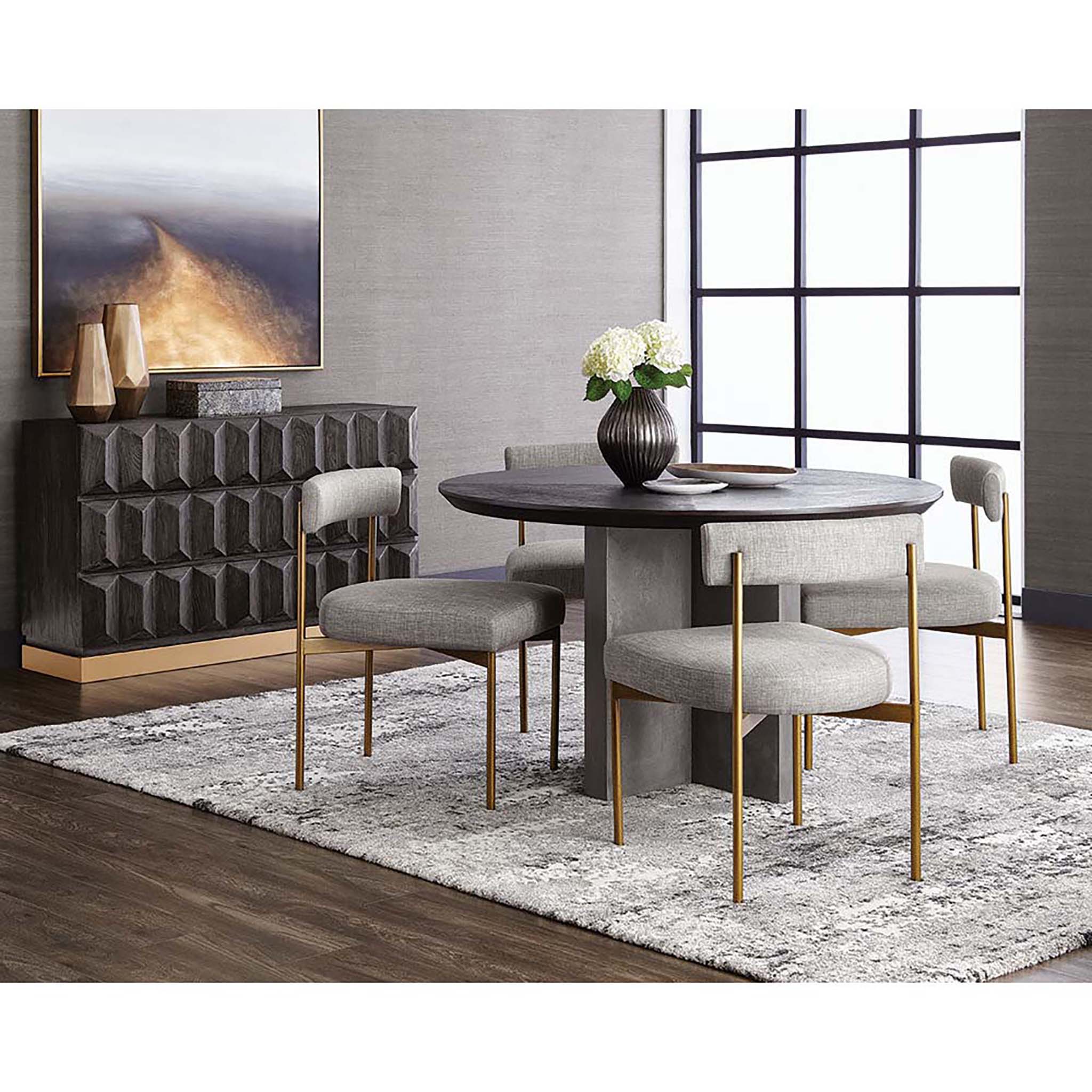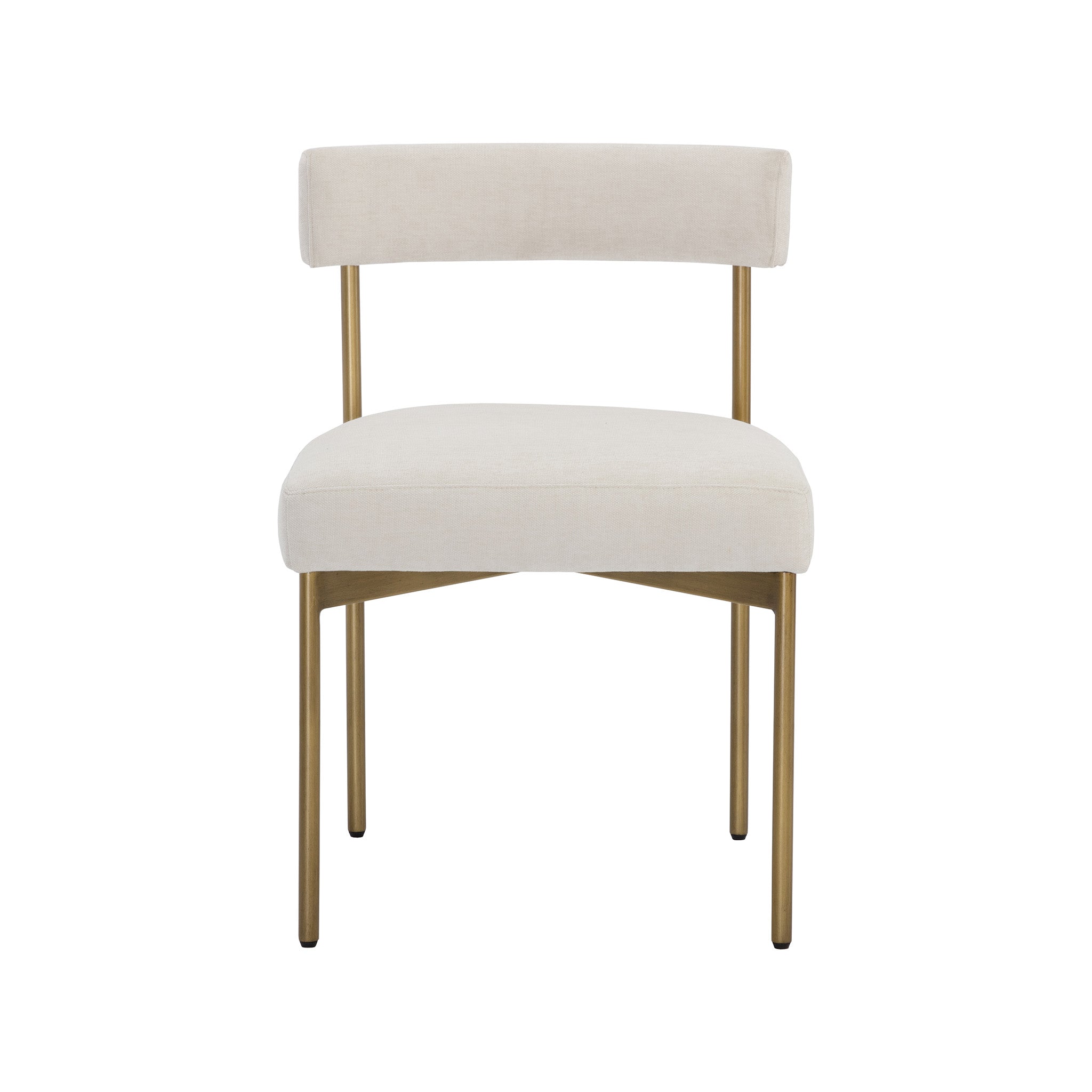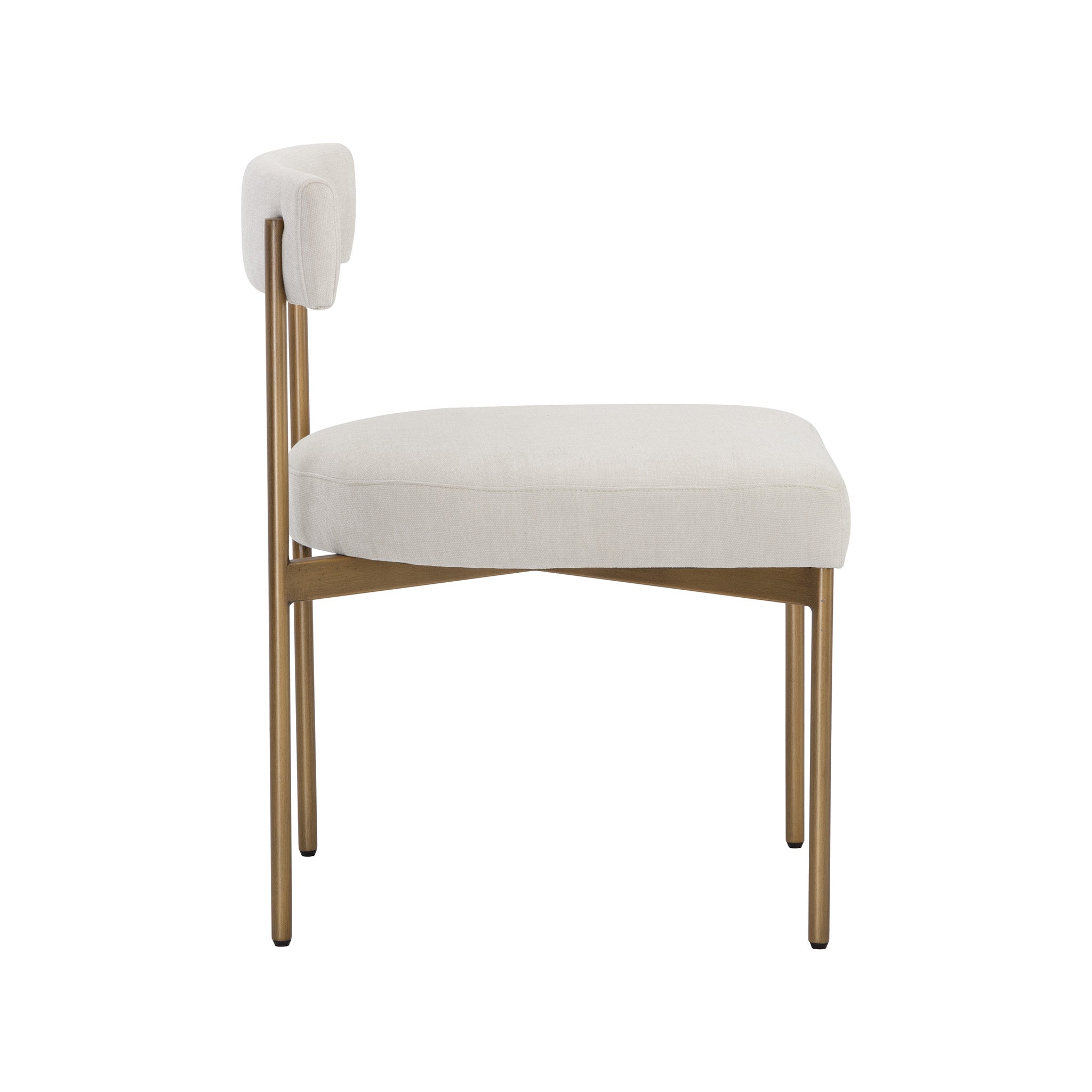 Exude modern style with this open back dining chair. Stocked in performance fabric with an black powder-coated steel frame. Performance fabric is moisture repellent, durable and easy to clean.