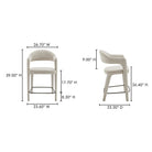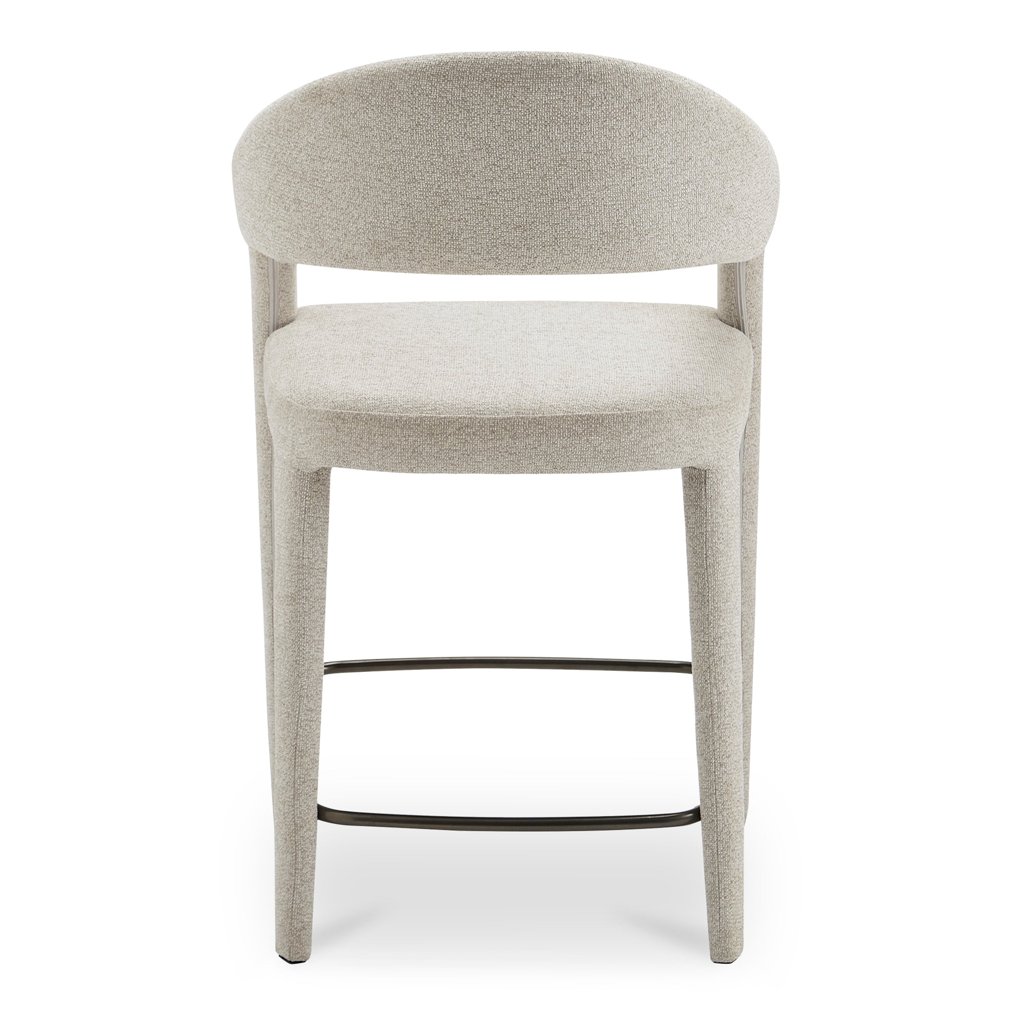 The Mabel counter stool features an open barrel back and a continuous curve from leg to frame. Its Performance fabric is complemented by generously padded seating, marrying comfort with a clean, uncluttered design. Armrests introduce a note of formality, while the airy back lends a touch of lightness and sophistication.