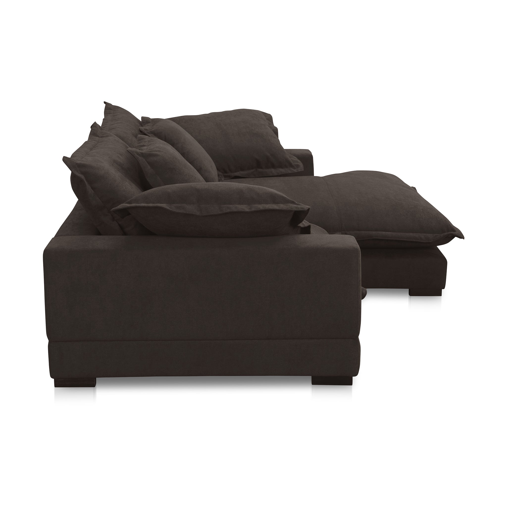 The Micah sectional promises relaxation with its clean lines, plush cushions, and easy-to-clean performance fabric upholstery. The distinctive flip-chaise feature allows for a customizable left or right-side orientation. At the same time, thoughtful channeling details and flange edge seams add visual interest to the comfy feather and fiber blend seats.
