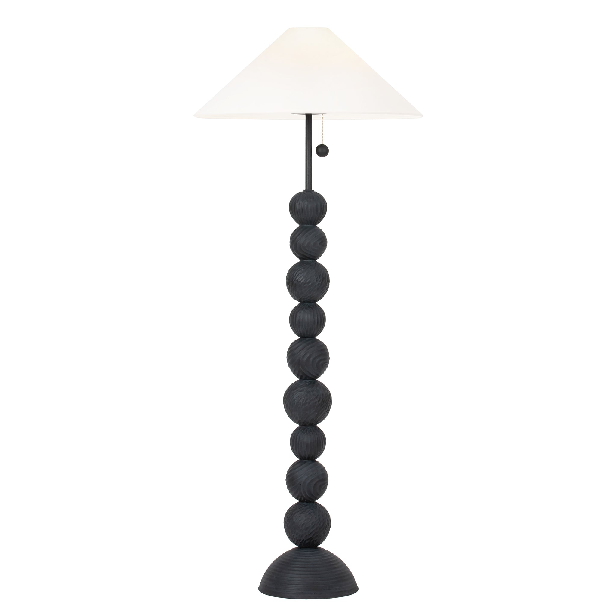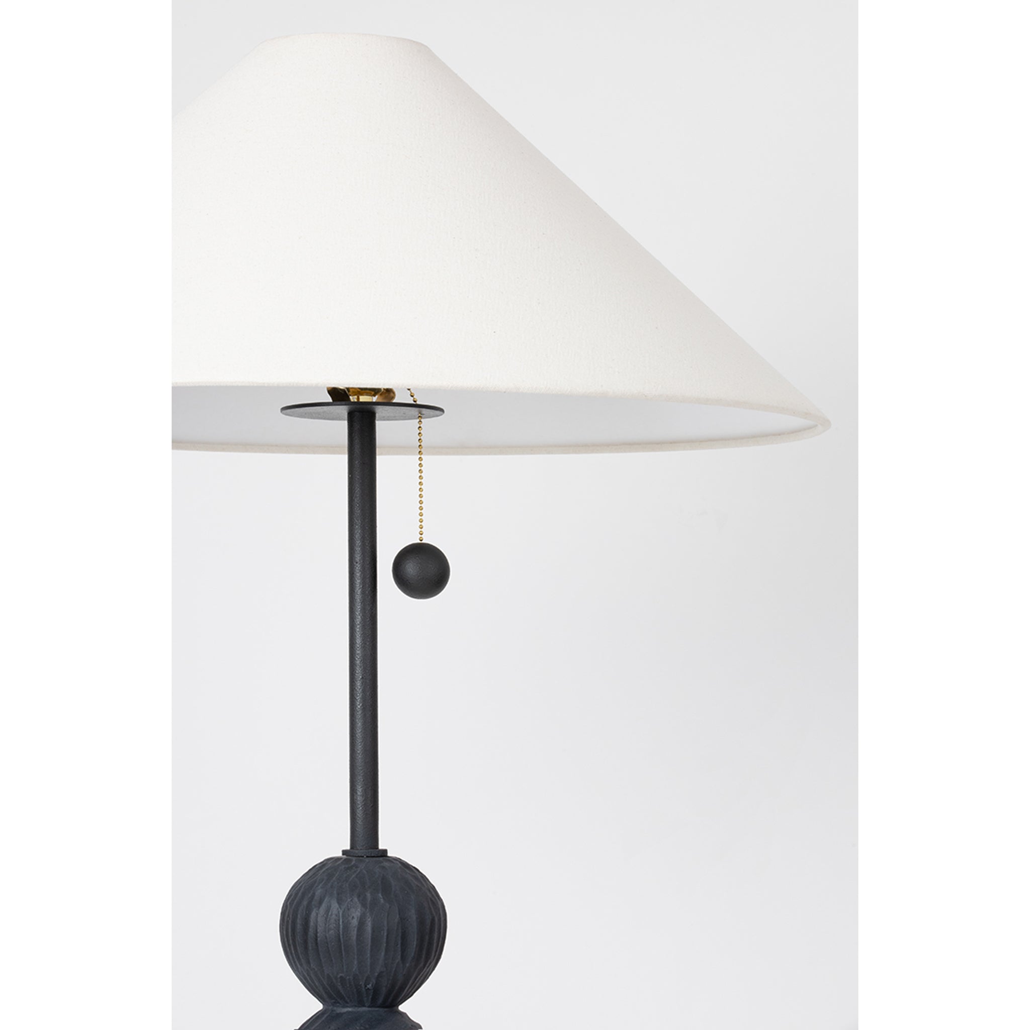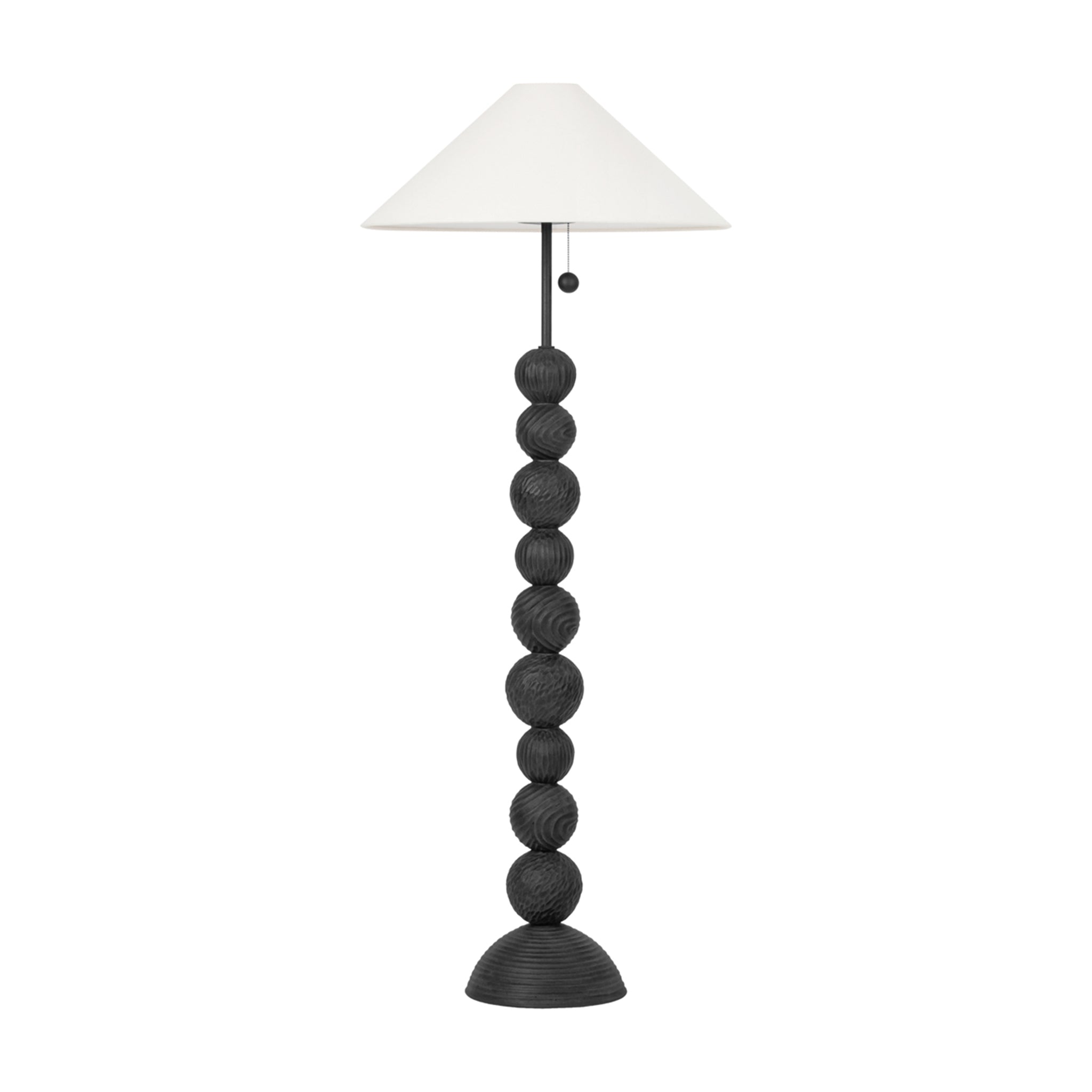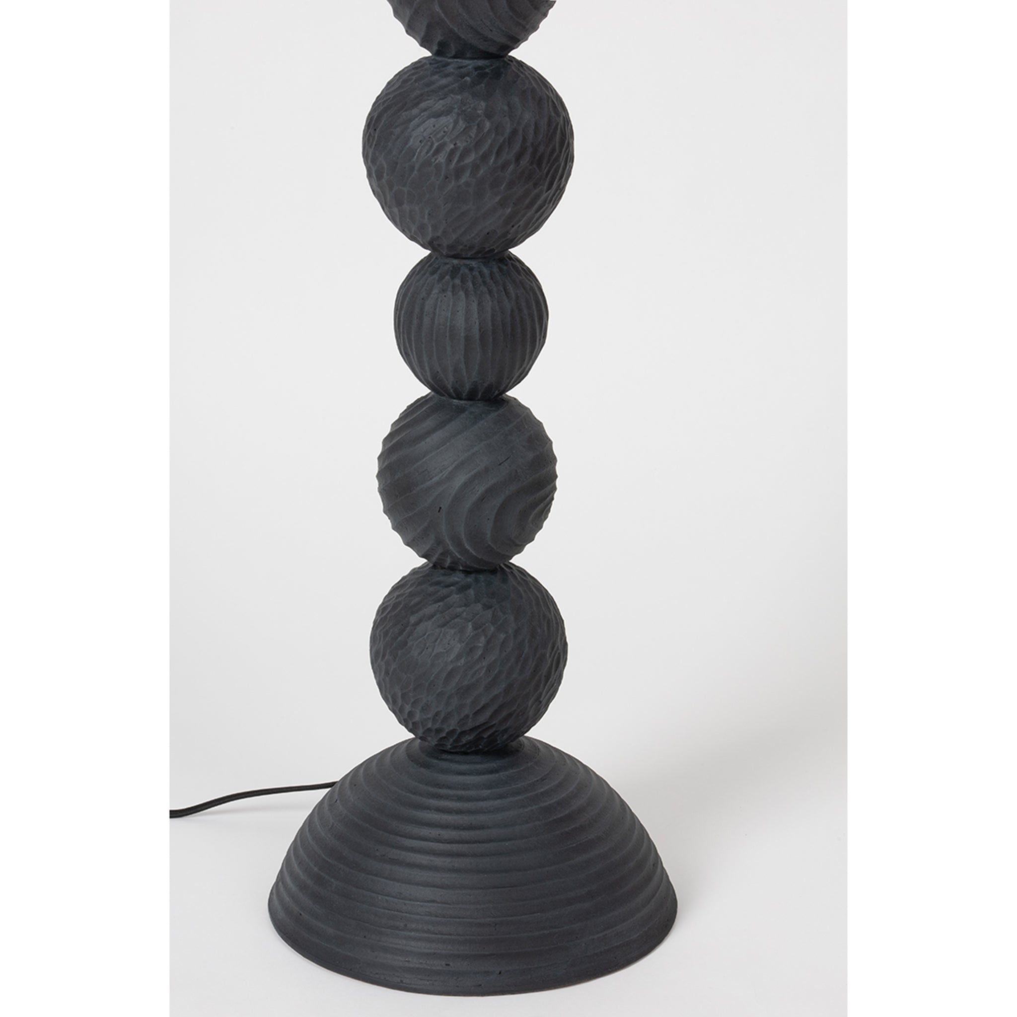 A totem-style design with rhythmic energy, Miela conceptually aligns with folk art aesthetics. Incised spheres reminiscent of carved wood are modeled from Black Motif Ceramic, resulting in a striking, polished appearance. Miela is further enhanced by an oversized pull chain and frame finished in Forged Iron. The off-white linen shade introduces a clean point of contrast. Part of our Loft and Thought collection. *Due to the one-of-a-kind nature of the medium, exact colors and patterns may vary slightly from the image shown.