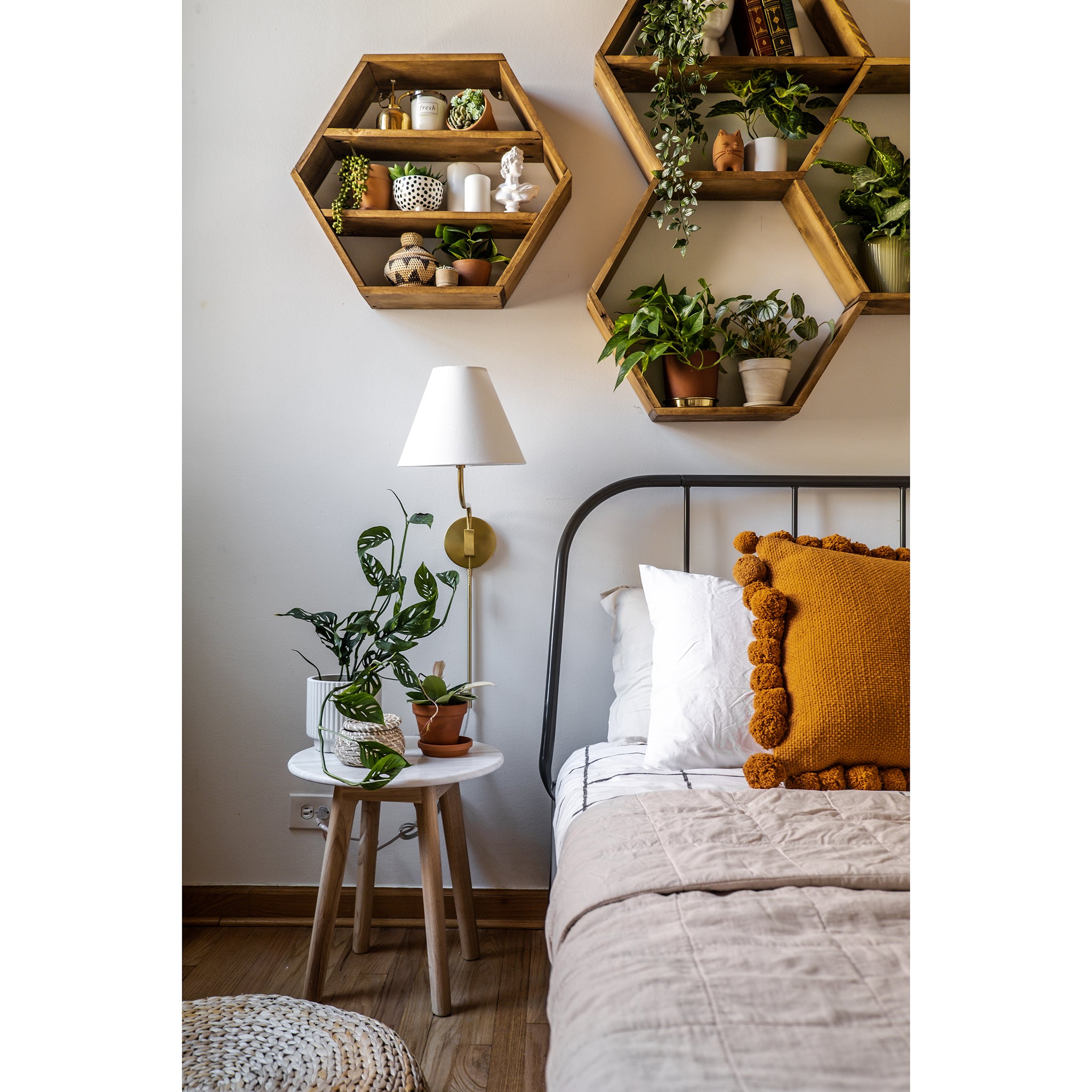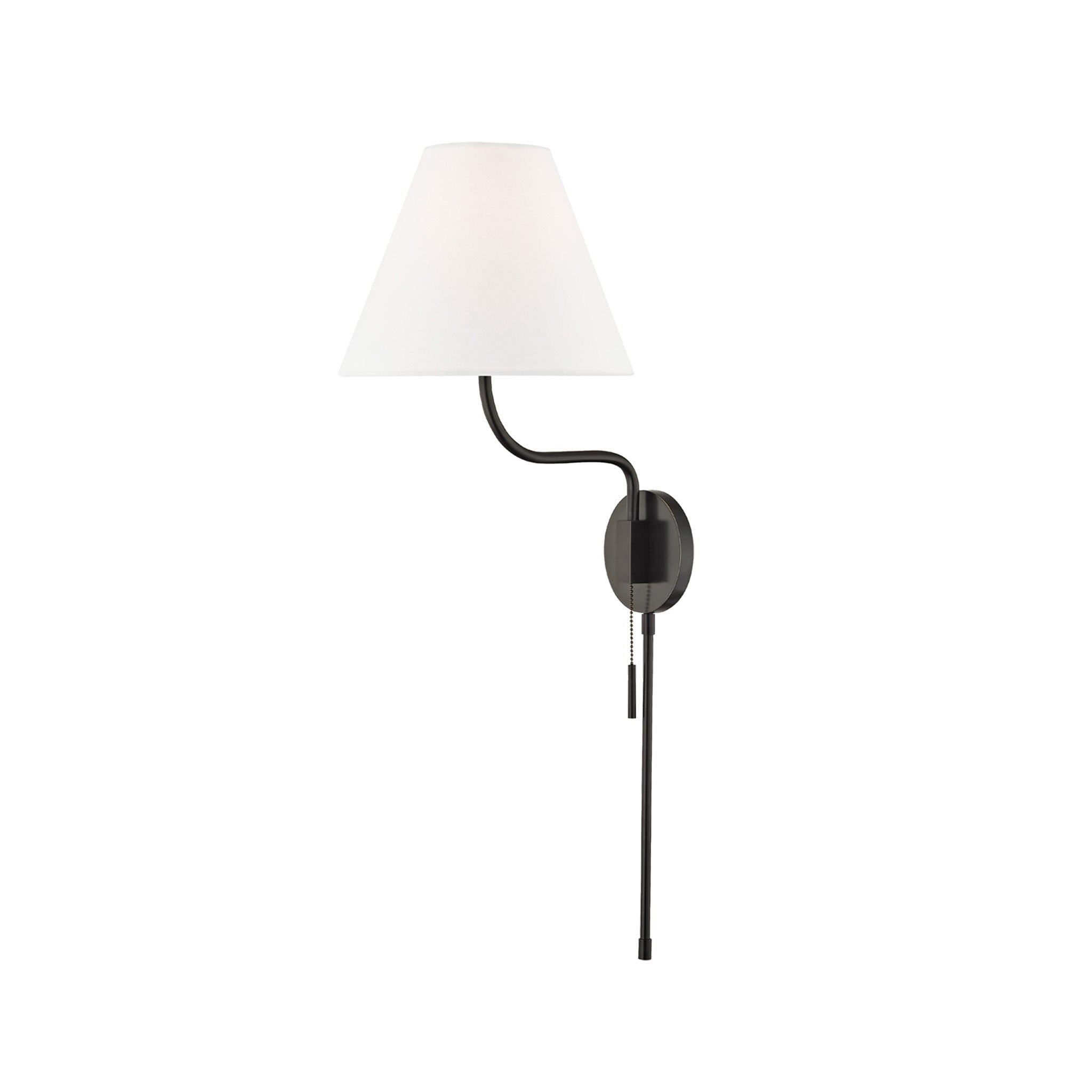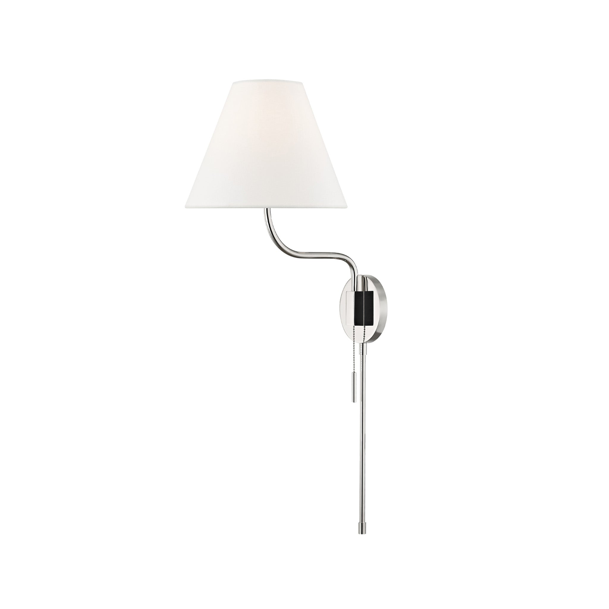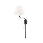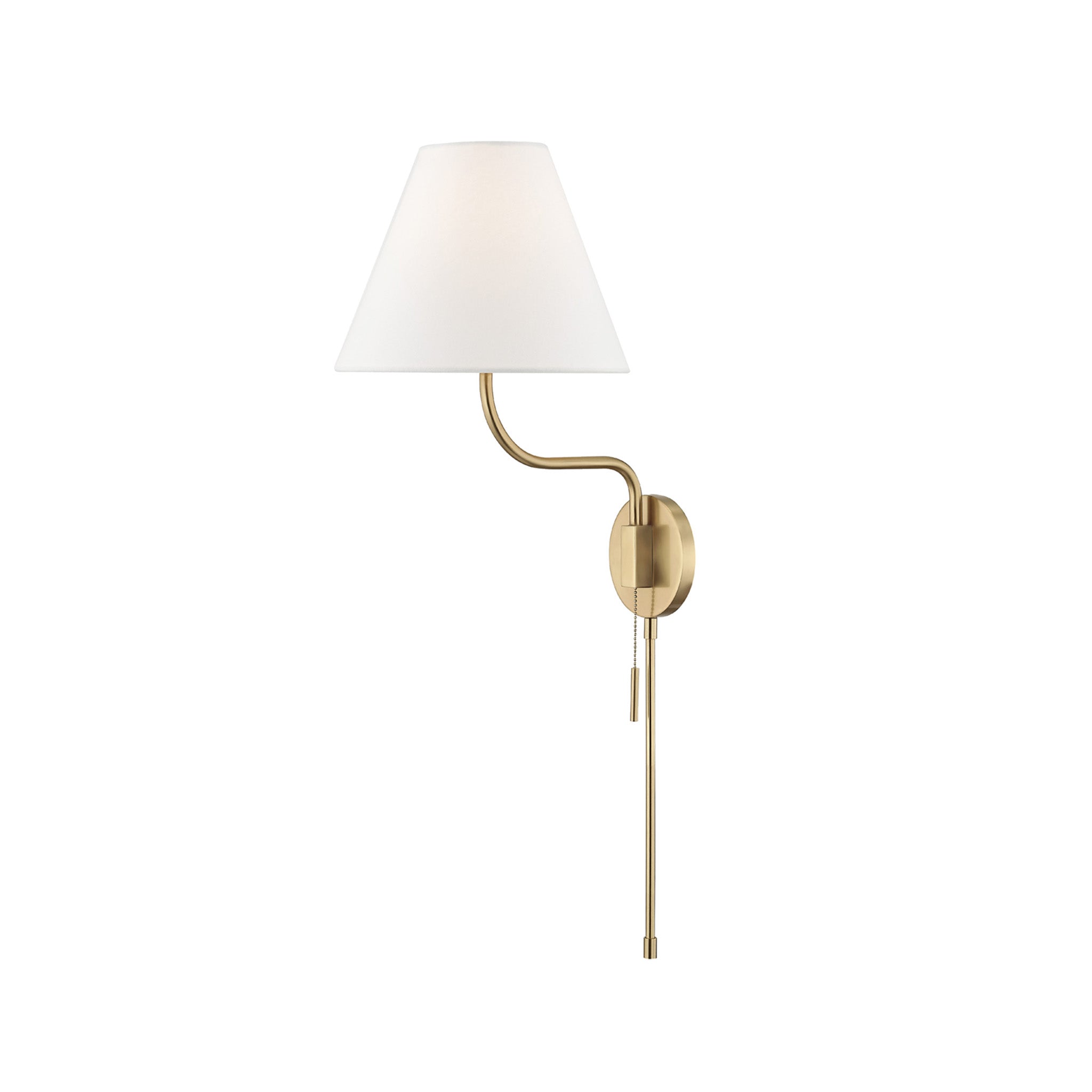 The Patti Plug-In wall sconce adds both style and functionality to your home decor. The off-white linen shade and curved arm combine to create a modern spin on a traditional style. Our Patti wall sconce is available in three finishes: aged brass, old bronze, and polished nickel.