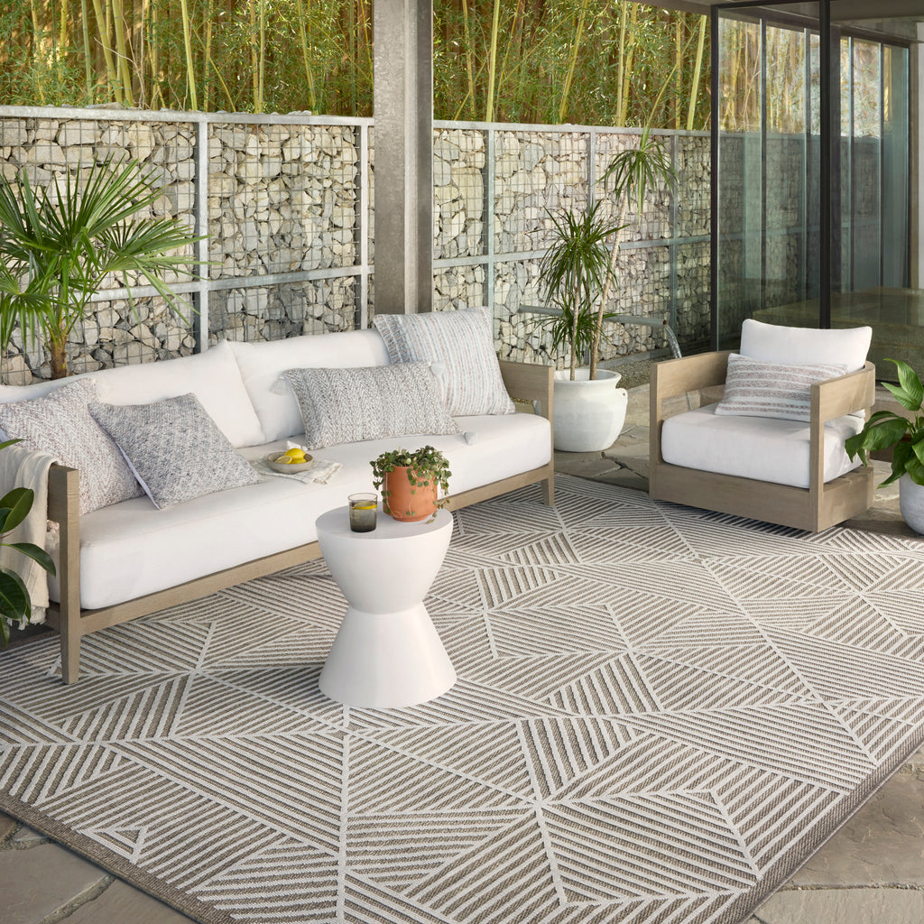 Power-loomed of 100% polypropylene pile in Egypt, the Rainier Collection features neutral hues and contemporary patterns. Rainier is an indoor/outdoor collection, specially treated to withstand rain, sunshine, and other outdoor elements.