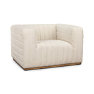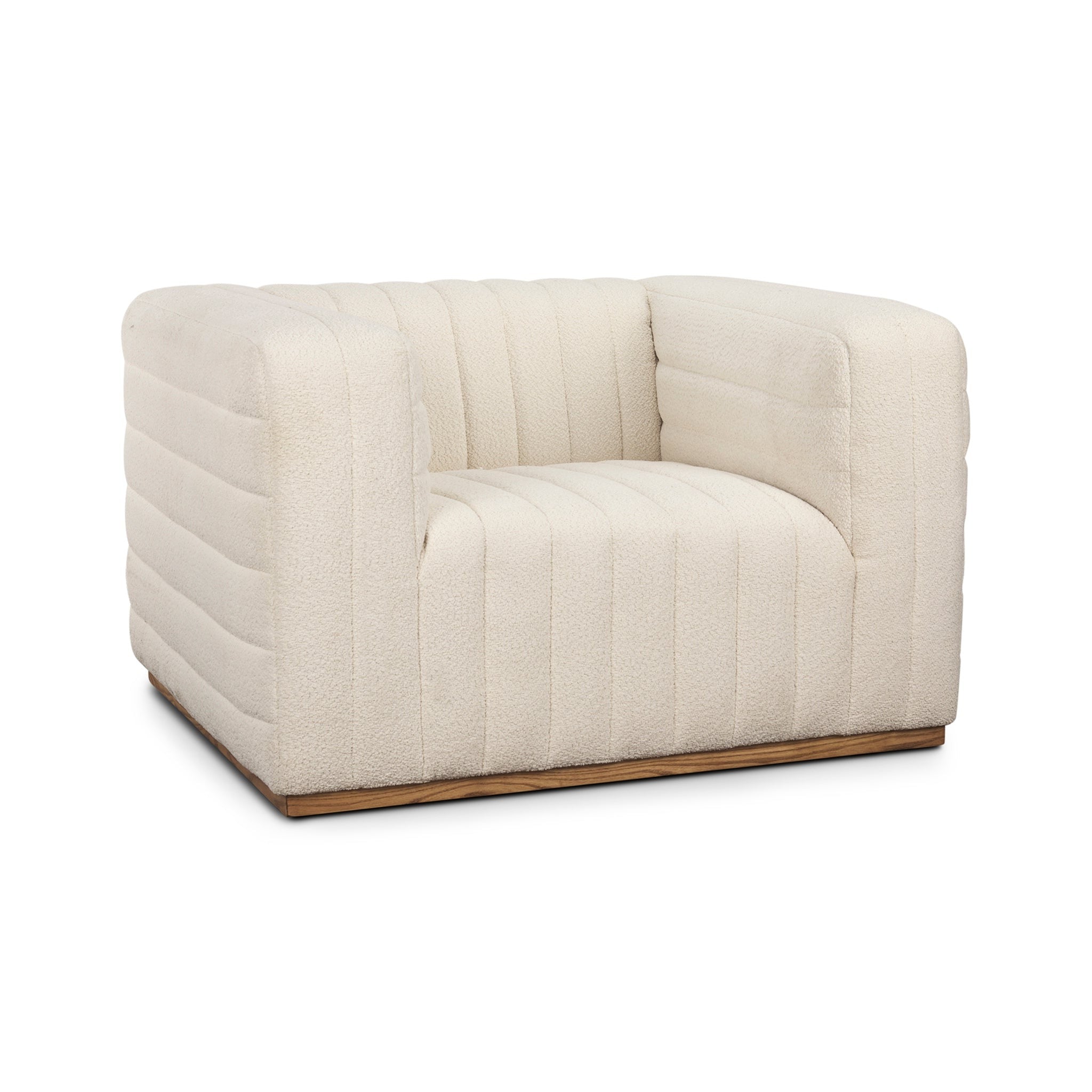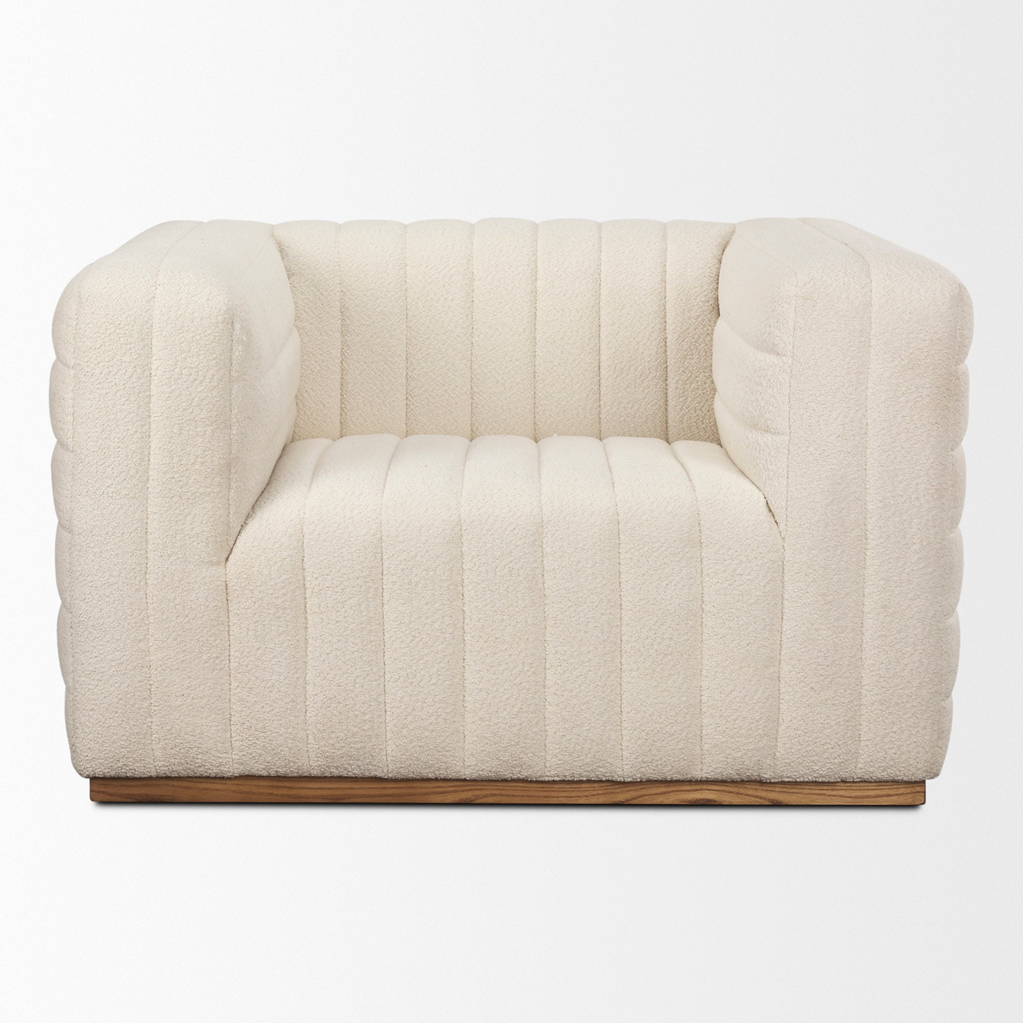 Why sacrifice style for comfort when you can have it all with our elegant Randolph Arm Chair? This arm chair features a stunning cream bouclé fabric with textured channels that grace the entire chair, adding depth and warmth to your living space. Its slim square wooden feet complete the modern, sophisticated look and make it a perfect addition for any cozy corner of your home. Our chair is designed to make a statement, yet with its neutral palette, it won't overwhelm your decor, so treat yourself to a timeless refresh for your room with the must-have Randolph chair.