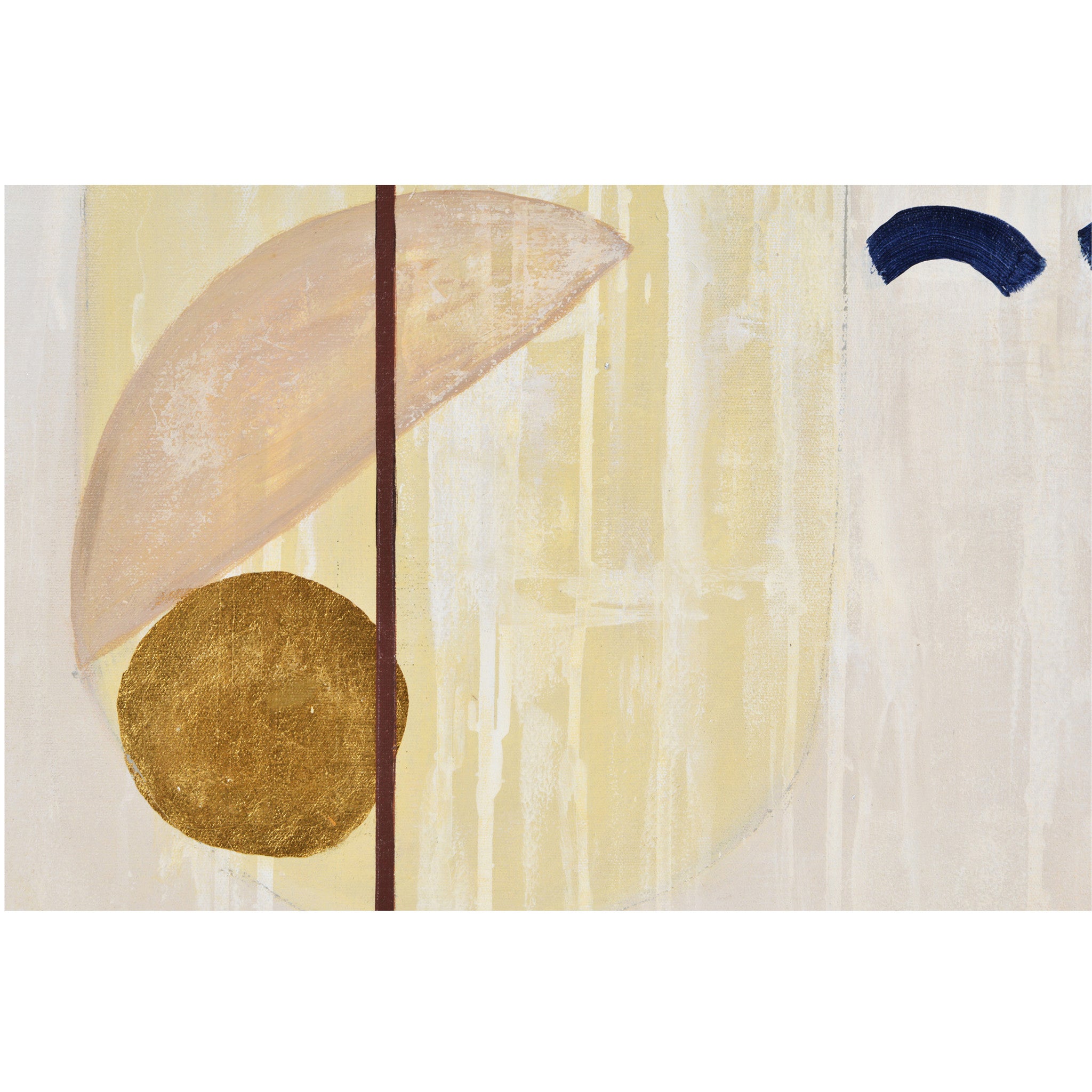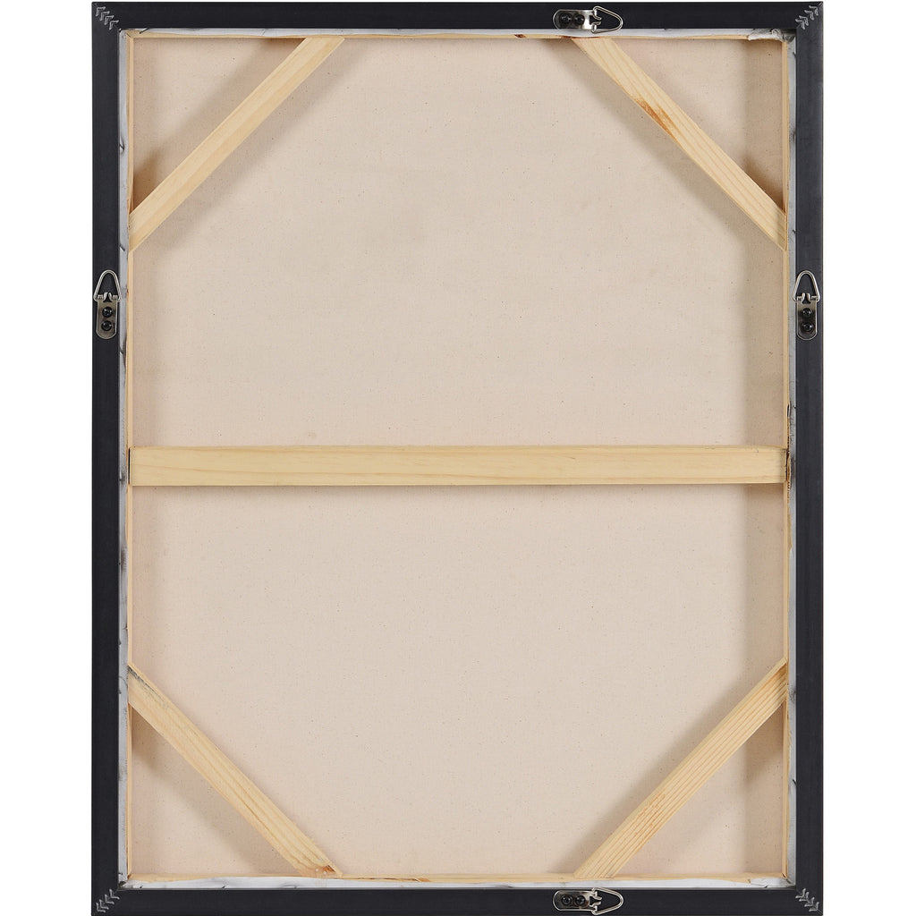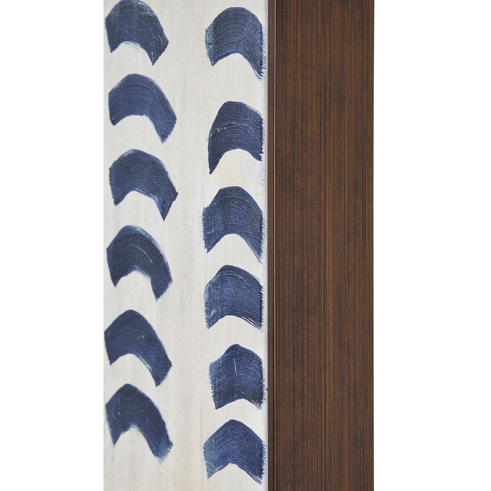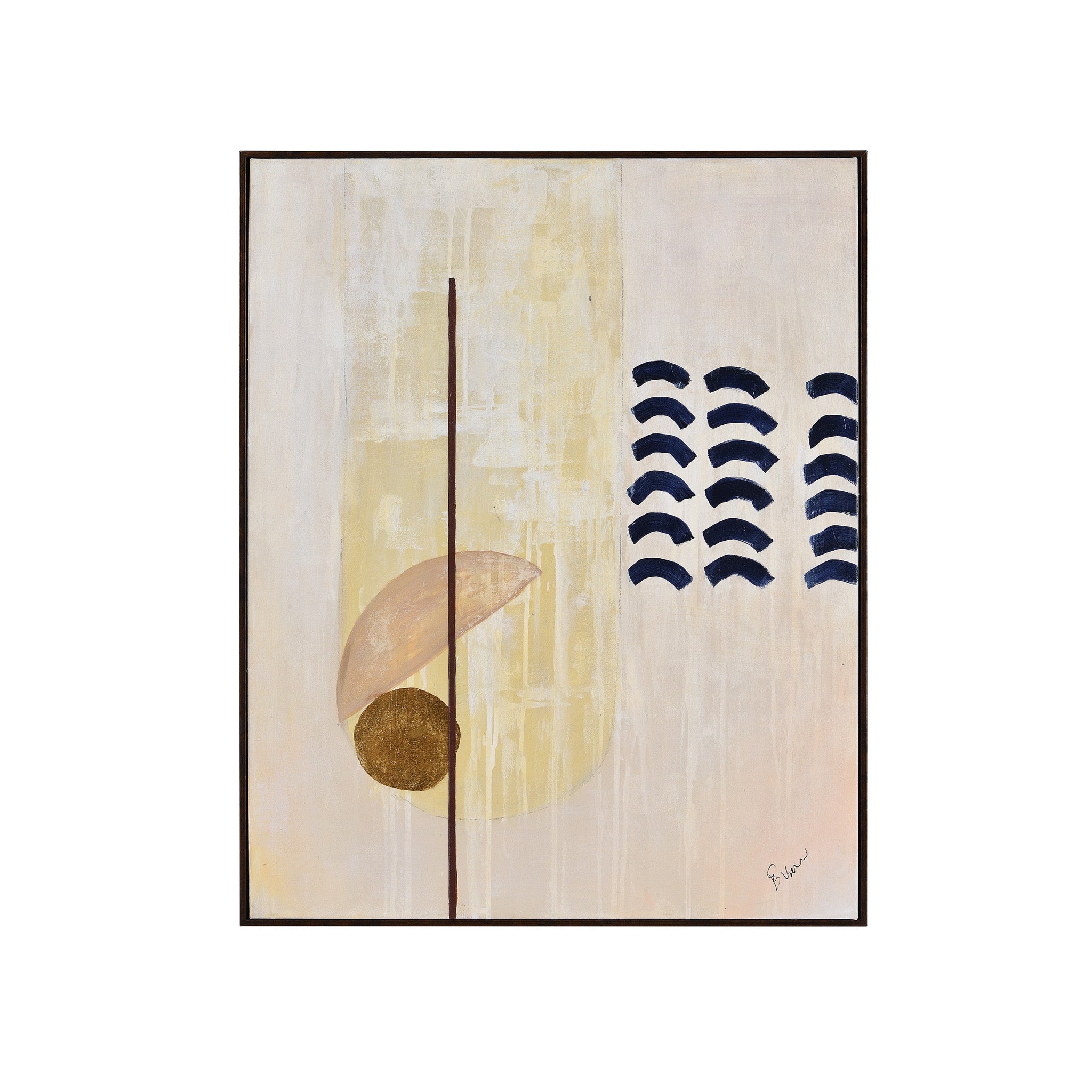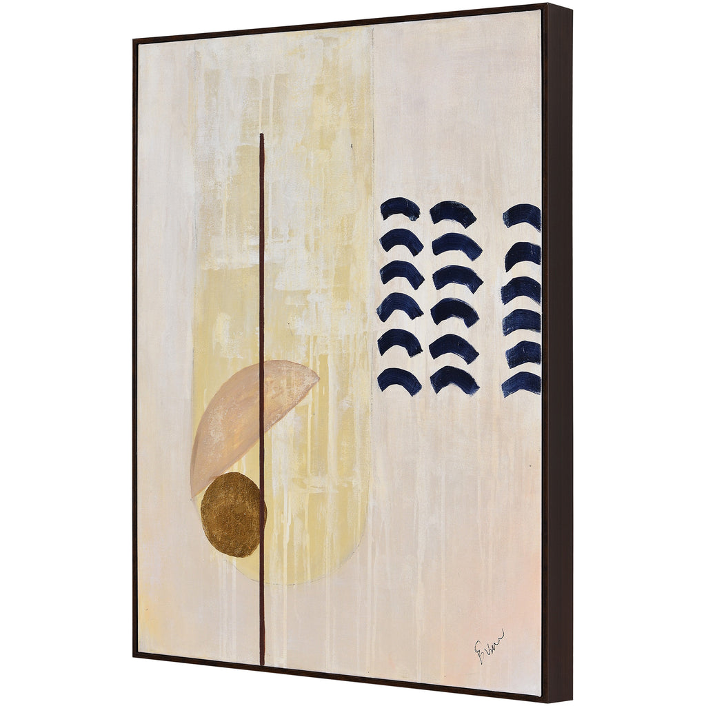 The Nancy Canvas features gold foil embellishment and hand-painted textured painting make for a perfect pair of striking and serene designs. The dark brown flush frame has a warmth that balances out the abstract details of navy blue and gold set on the canvas.