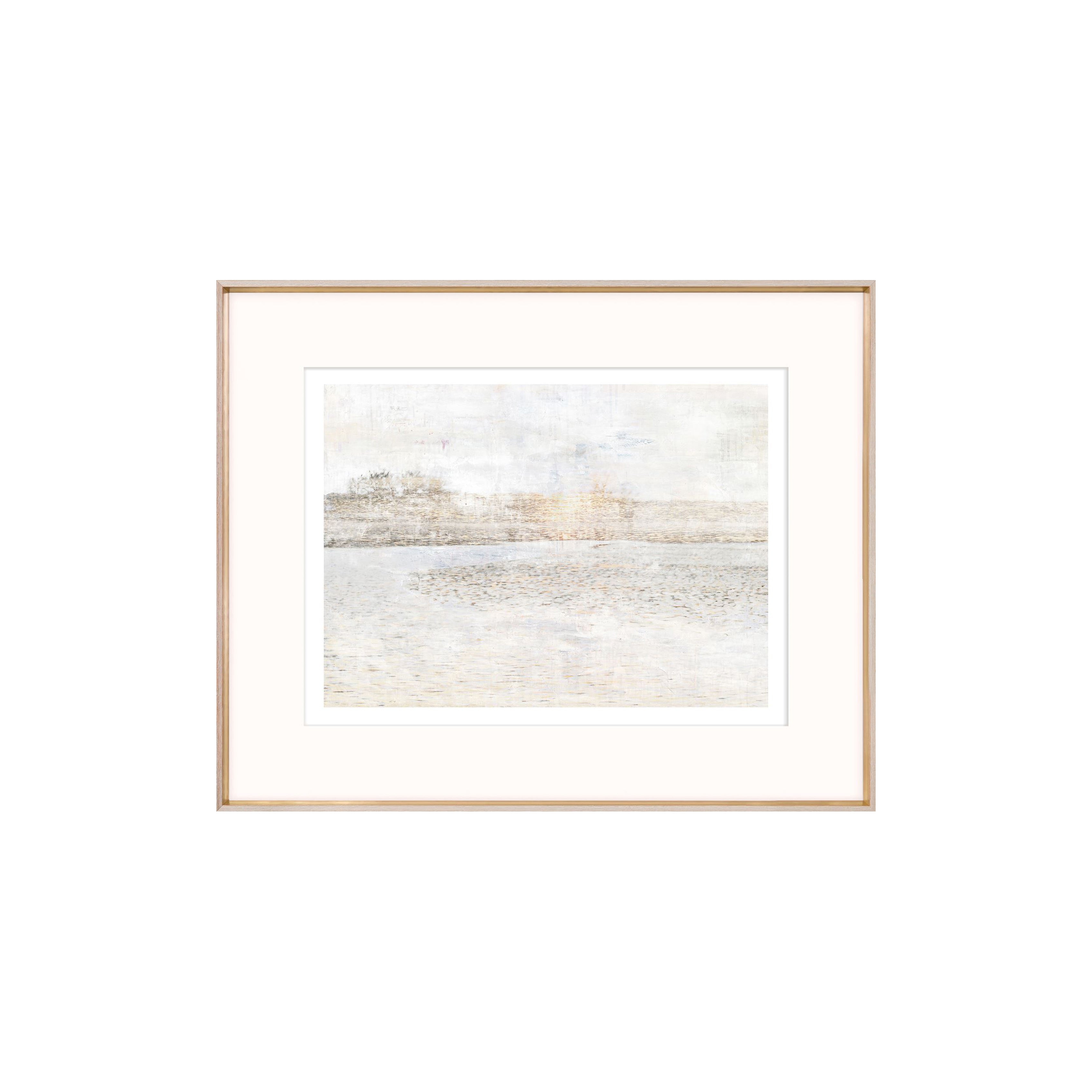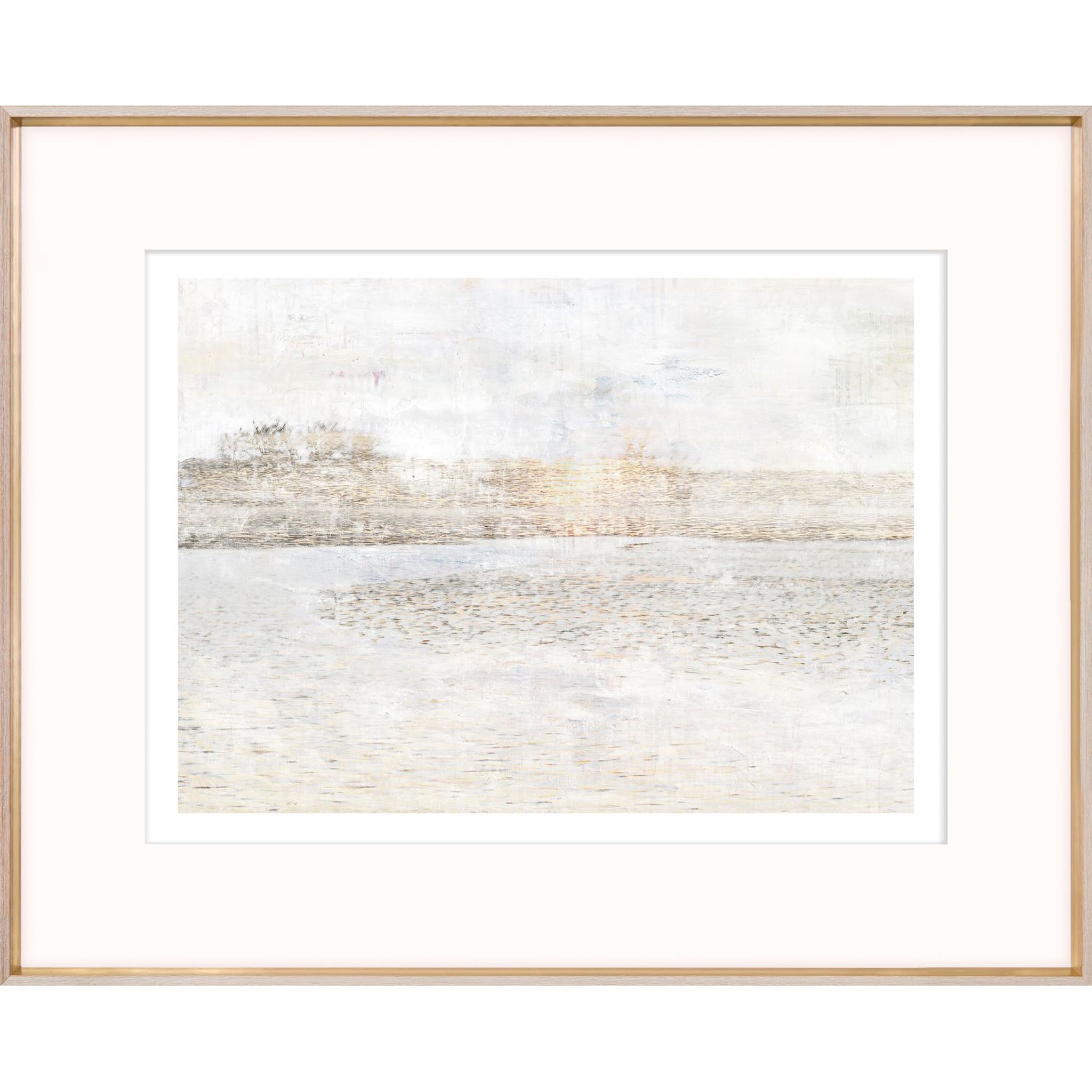 Sun dappled water overlaid with subtle textures brings a contemporary coastal vibe to 'Sunlit Waters'. Featuring soft gold light peaking through grey neutral tones, this piece would make a harmonious addition to any space.