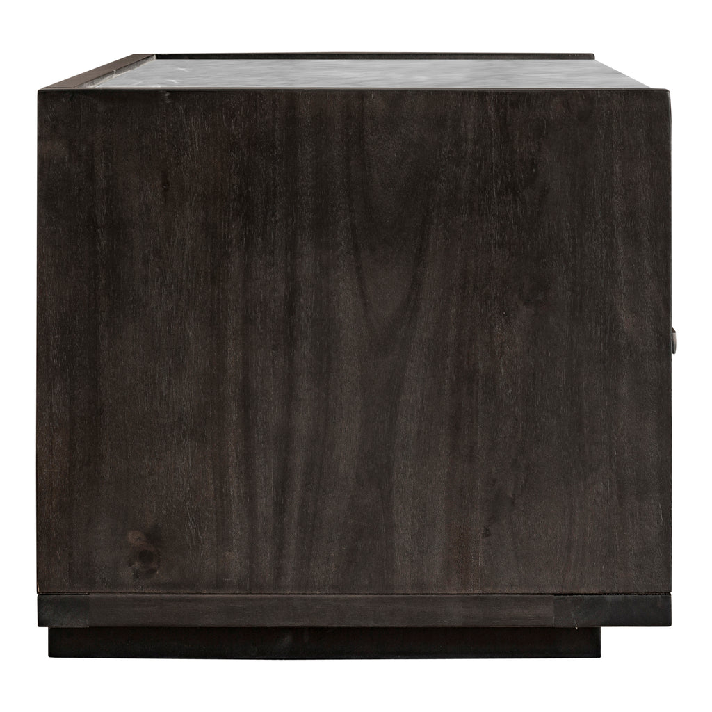 A white marble tabletop lies firmly over acacia veneer based drawers. Its two soft-close compartments provide ample space for your bedside needs. It looks best paired with the Loire bed to get that sophisticated aesthetic.